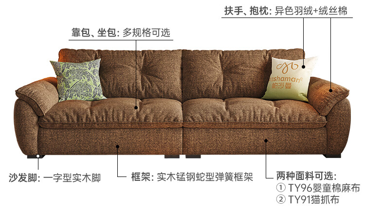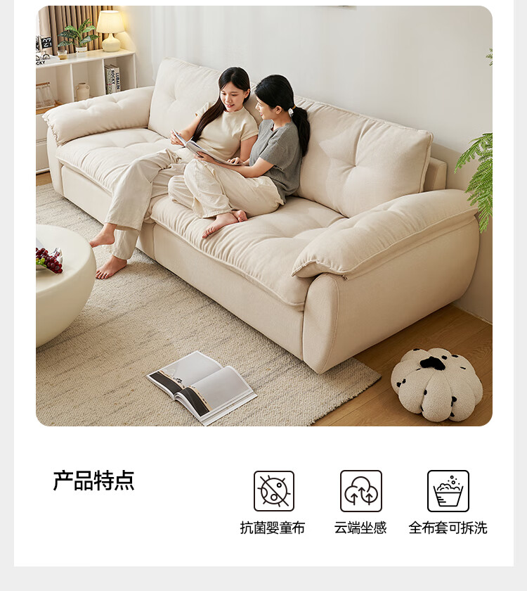 帕沙曼云朵布艺沙发小户型客厅新款可拆洗直排沙发现代简约宽坐深2867ZF 2.7米多人位【全拆洗设计 清洁无忧】 抗菌婴童布TY96【旗舰版】 羽绒+记忆棉颗粒+绒丝棉