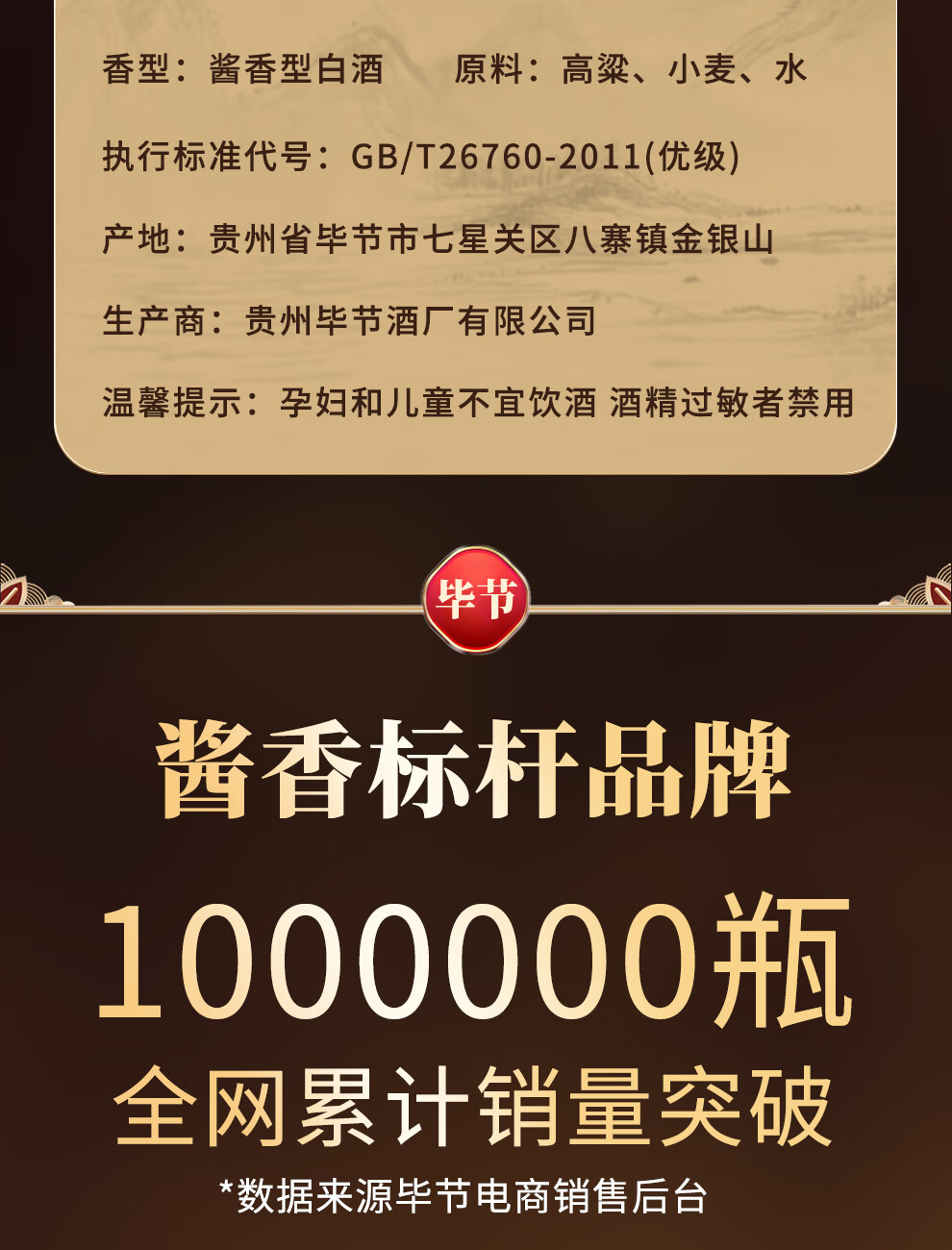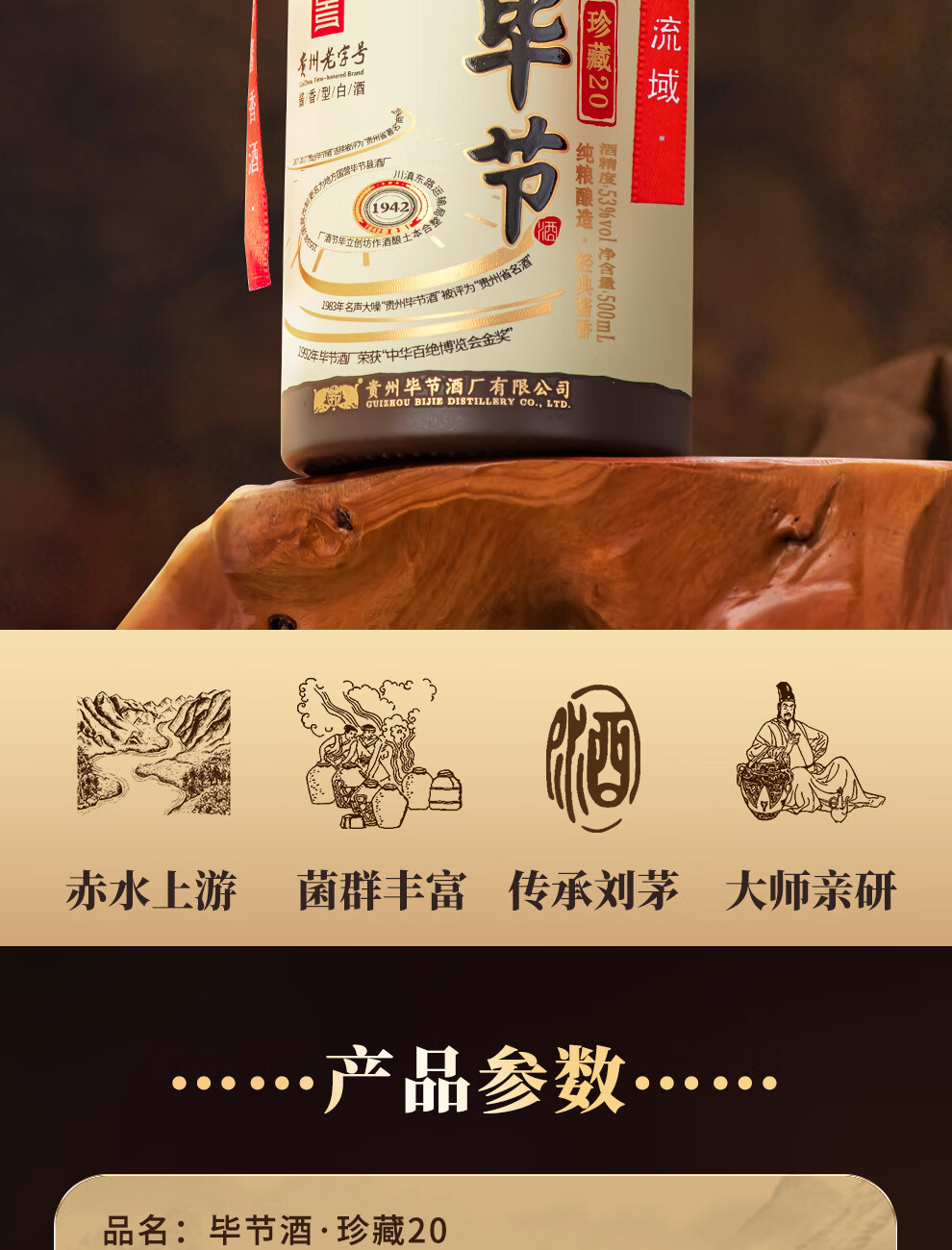 毕节珍藏20 贵州老字号 纯粮酱香型白酒 起源1942年国营酒厂 53%vol 500mL 1瓶 满2瓶赠礼袋