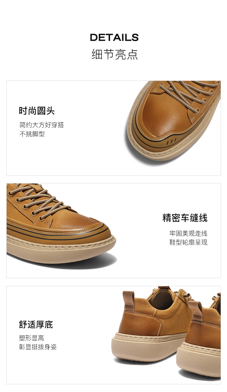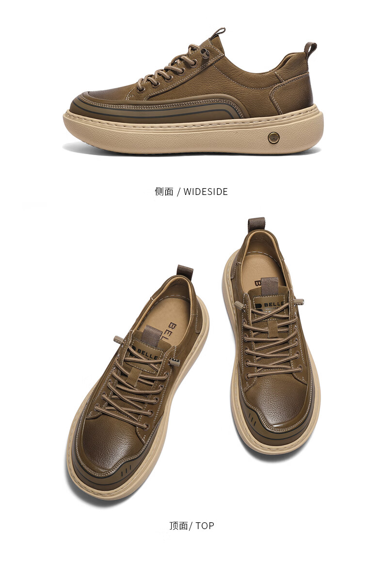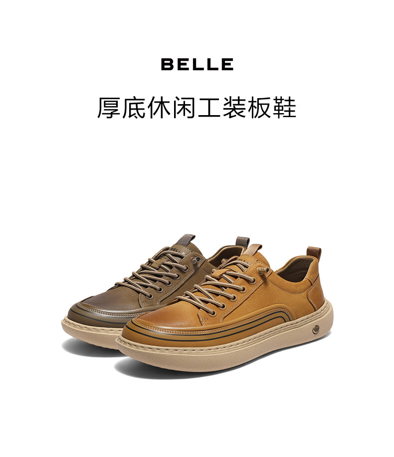 百丽厚底增高休闲板鞋男2025新款冬商场同款一脚蹬工装鞋8WP01DM5 黄色 40 (250mm)