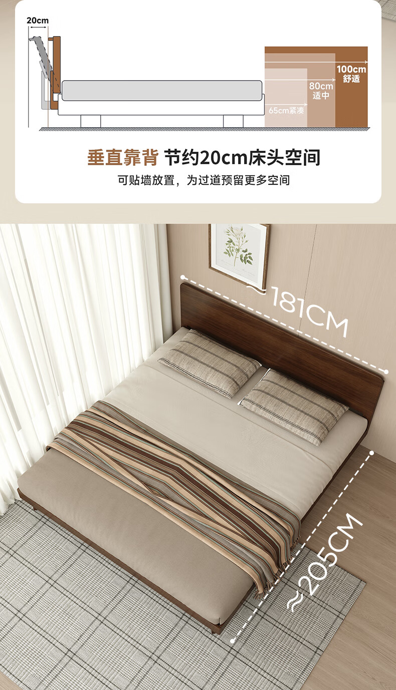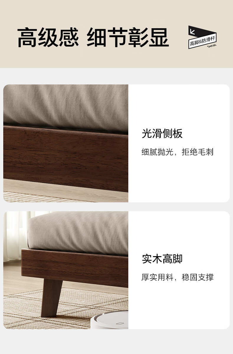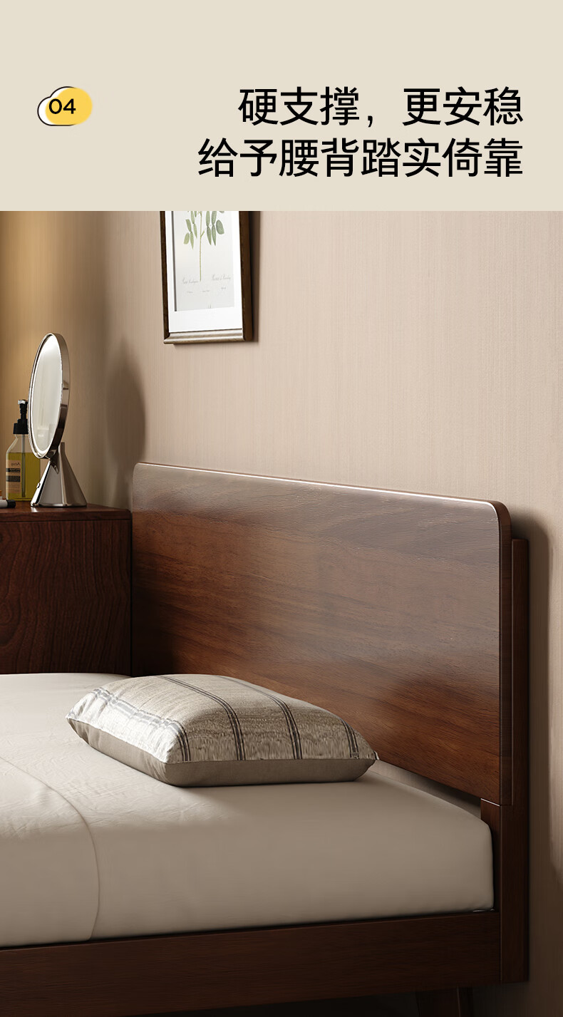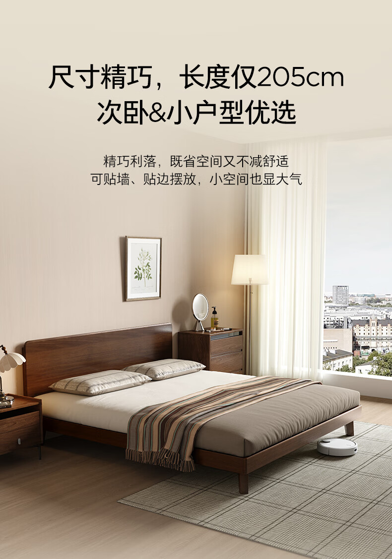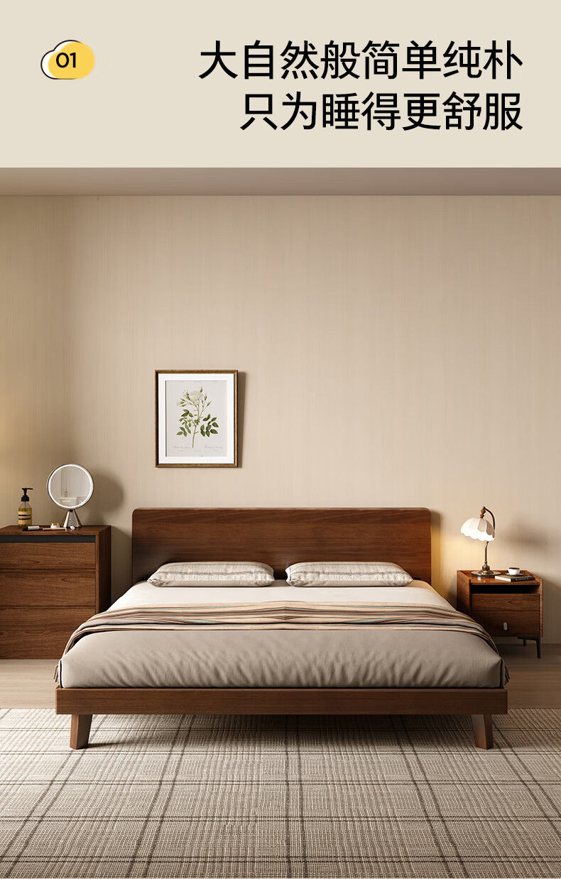 顾家家居(KUKA)中古风实木高脚板木床齐边小尺寸卧室床加密排骨架DS9275B 【胡桃木色】至尊·中古全实木高脚1.8米