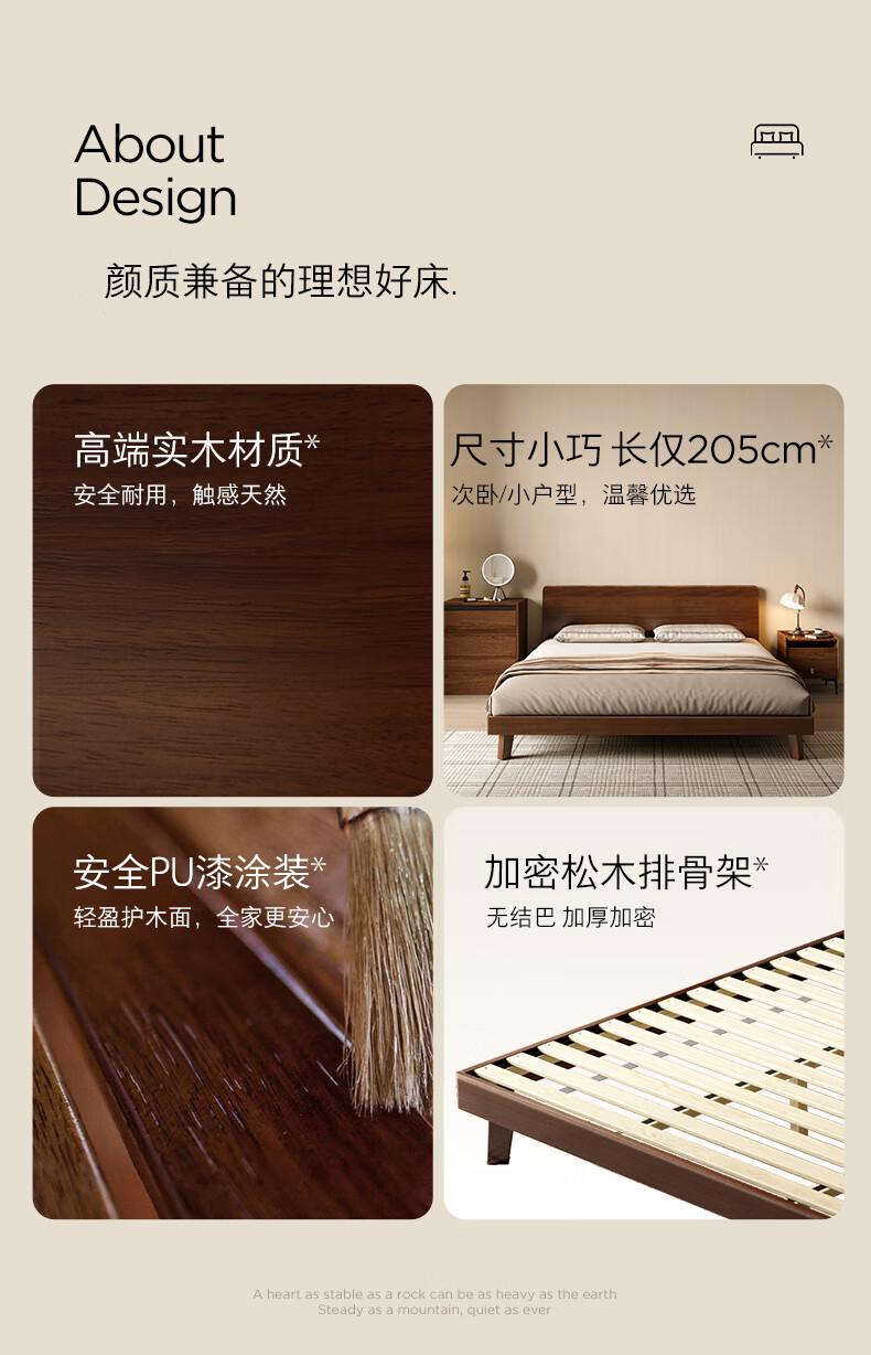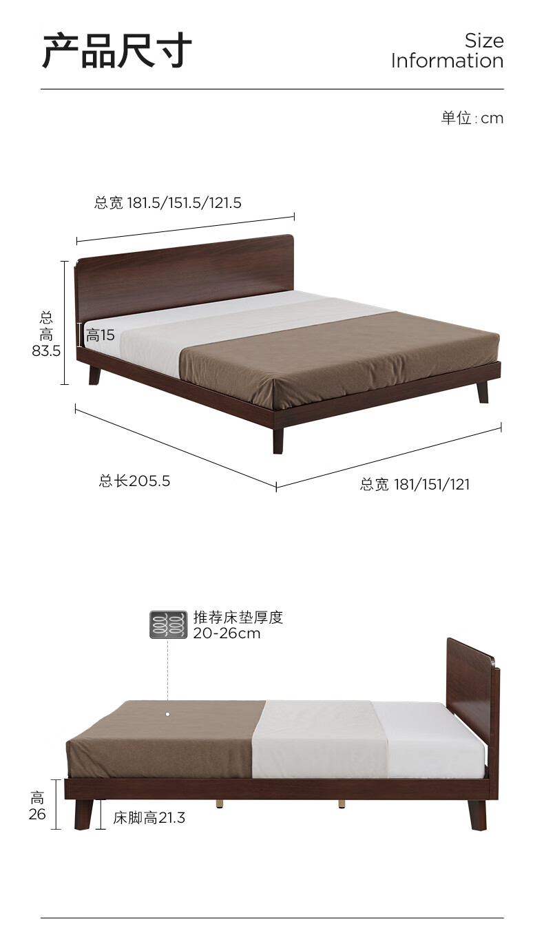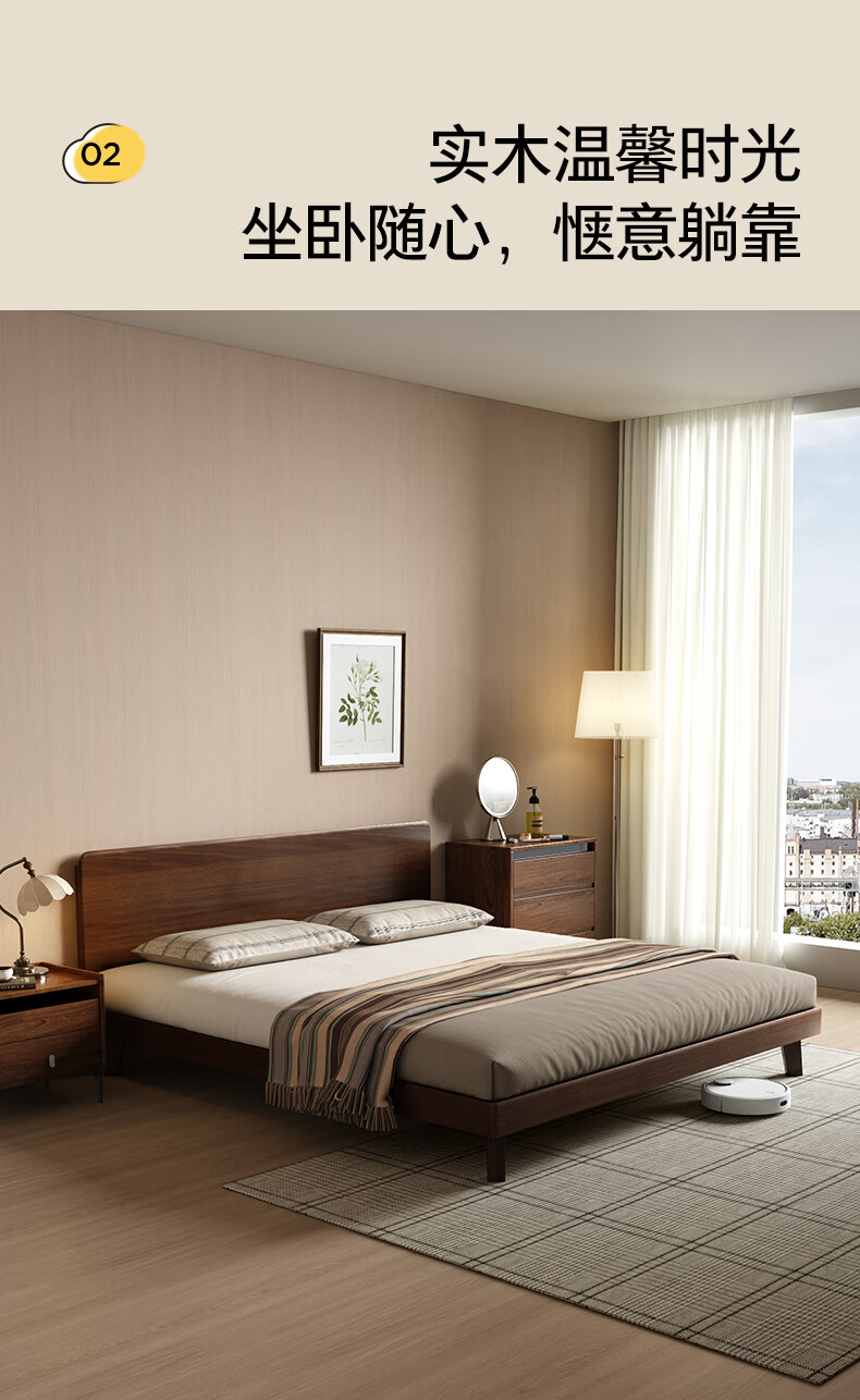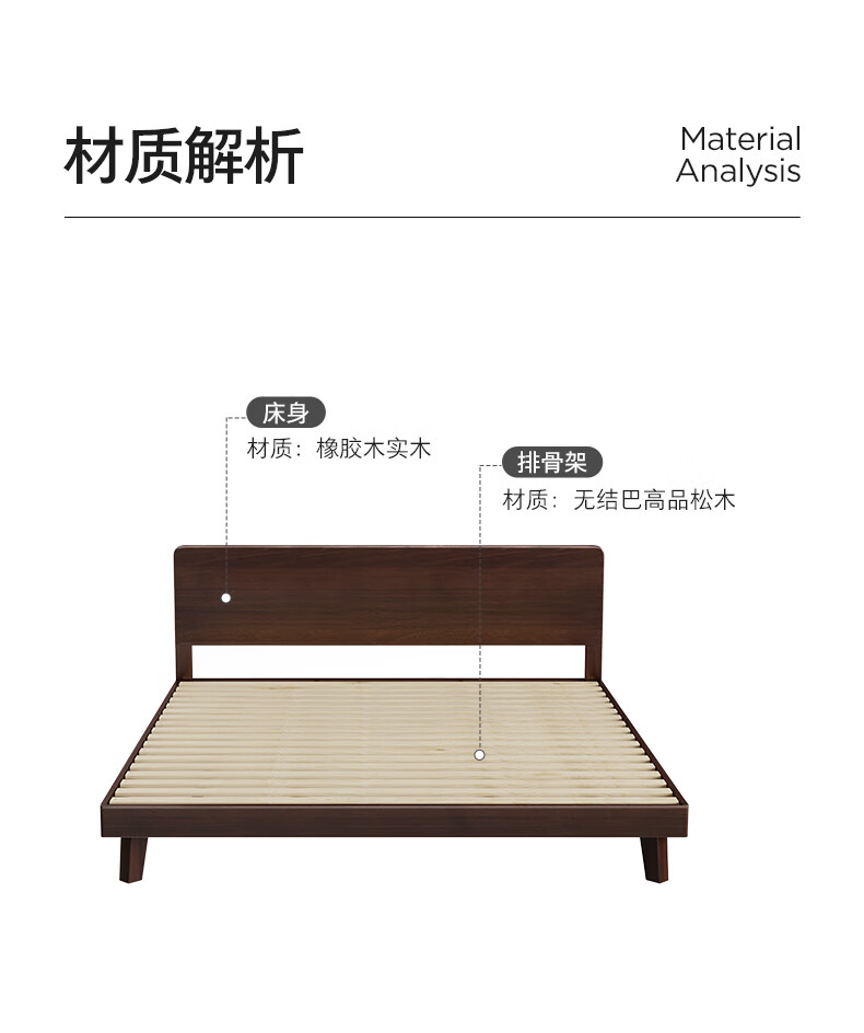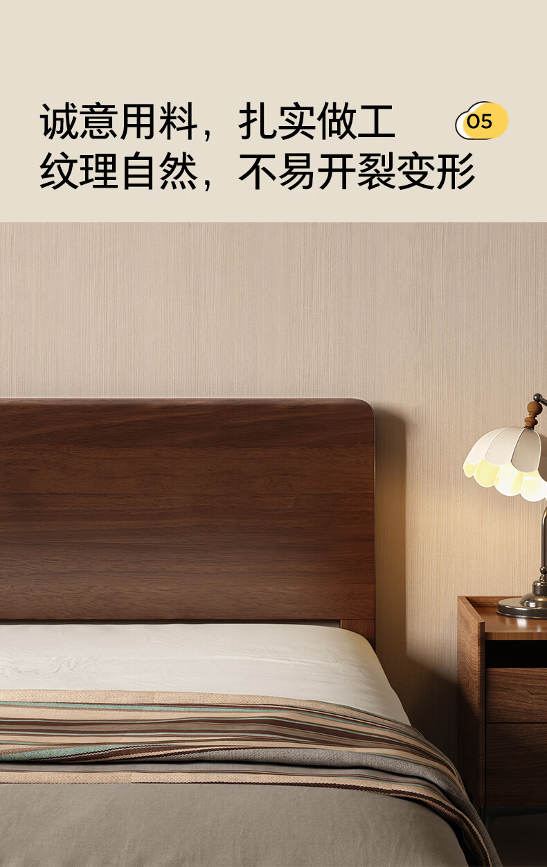 顾家家居(KUKA)中古风实木高脚板木床齐边小尺寸卧室床加密排骨架DS9275B 【胡桃木色】至尊·中古全实木高脚1.8米