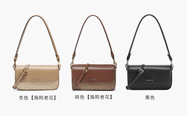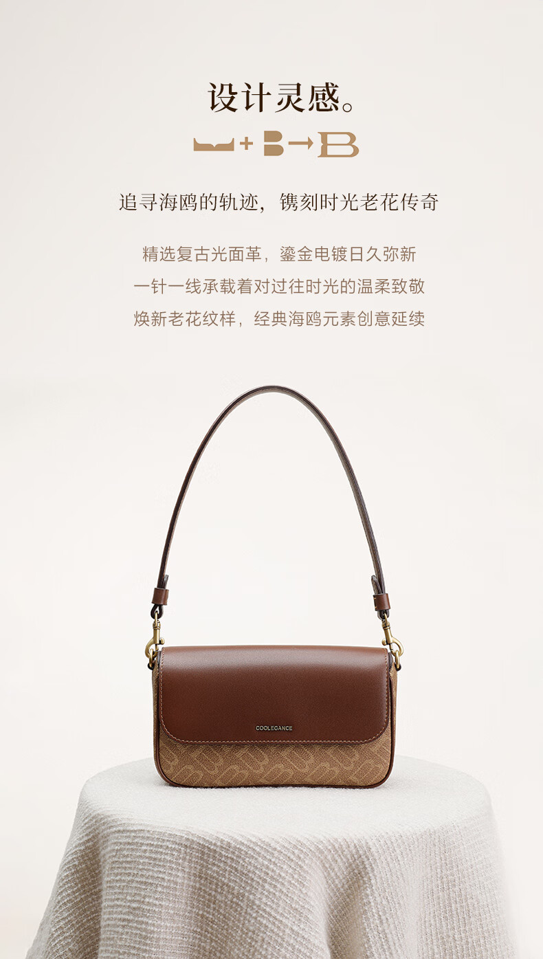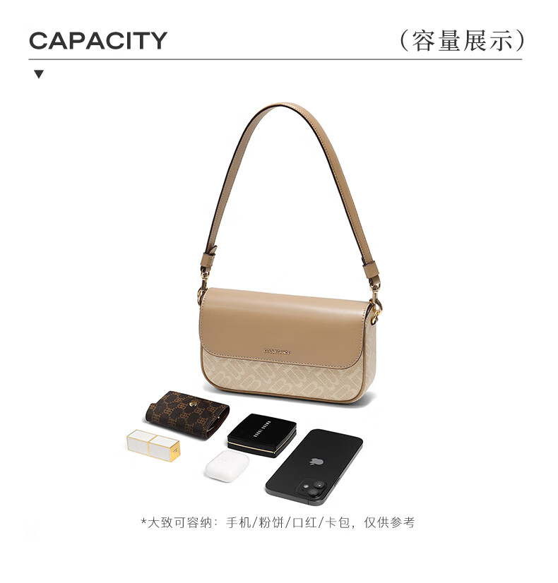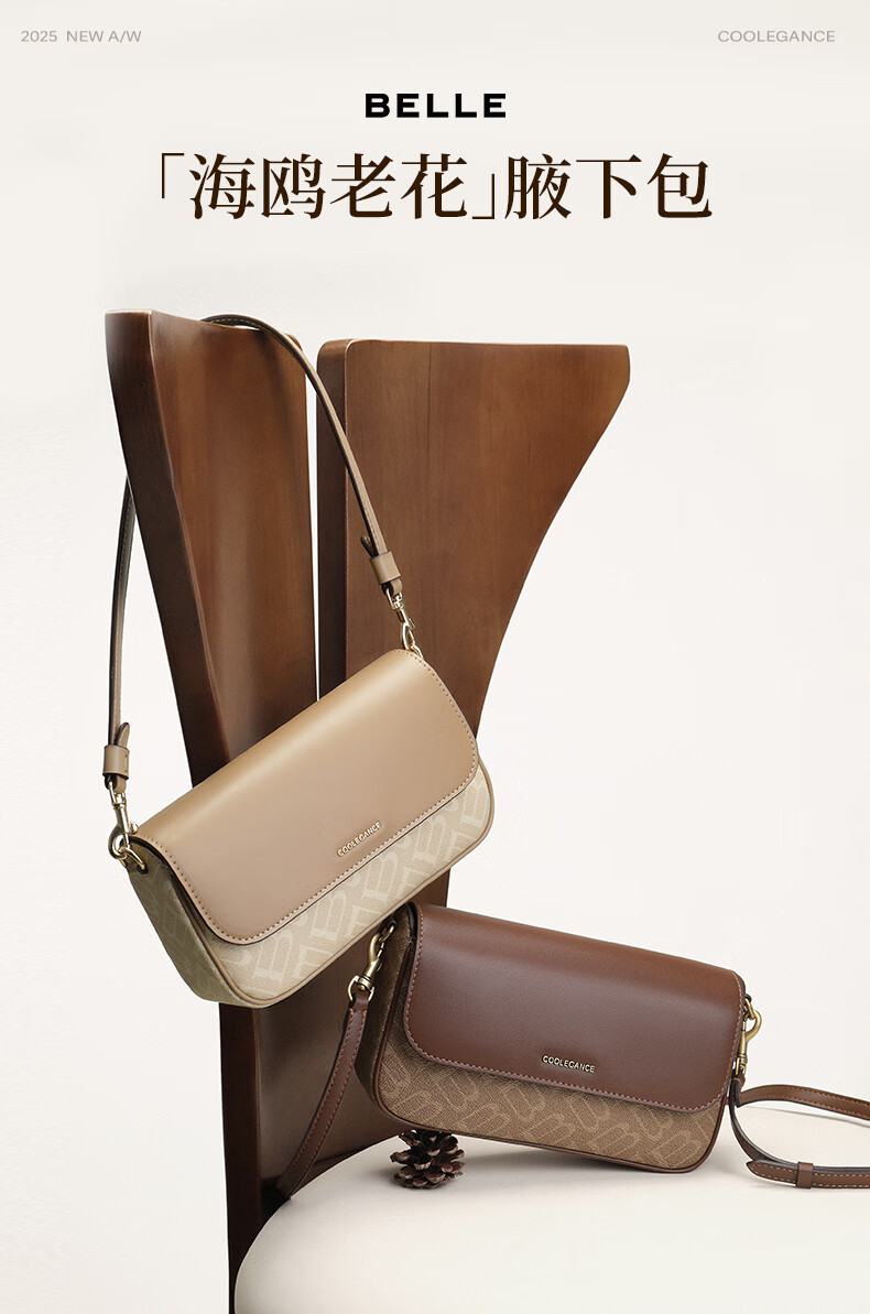 百丽包女25冬新款海鸥老花系列通勤法棍包单肩斜挎腋下包X7413DX5预售 杏色【海鸥老花】 F