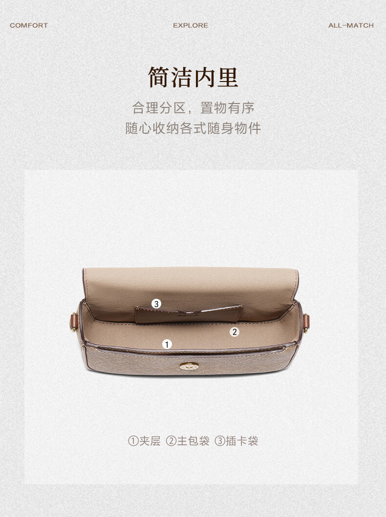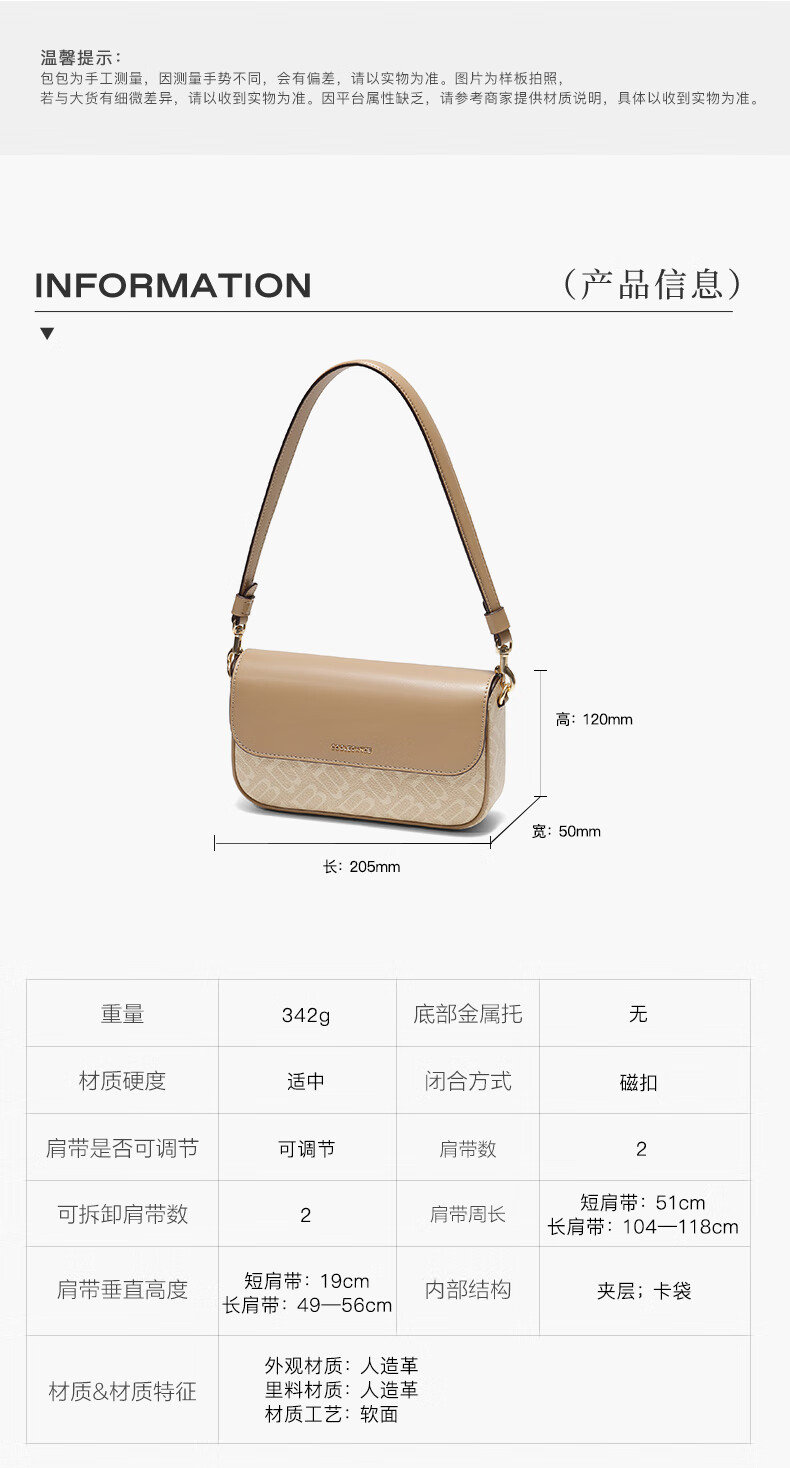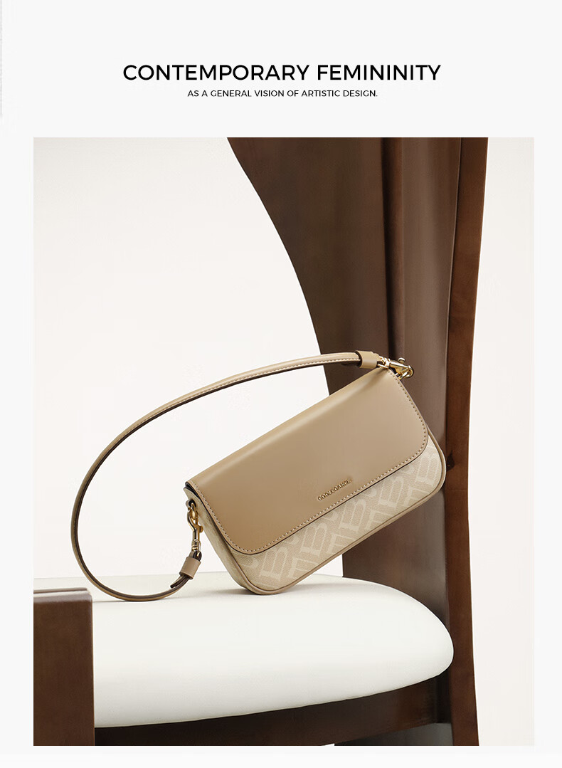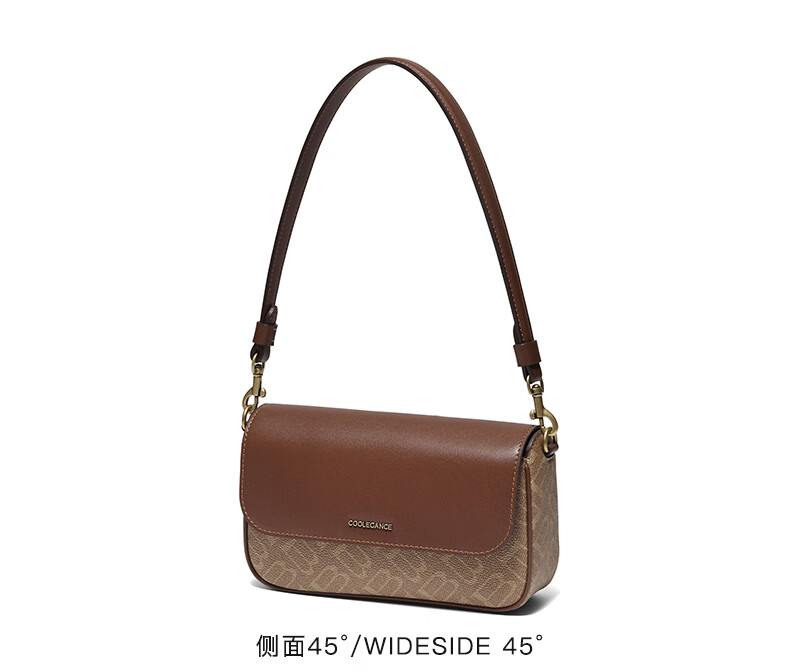 百丽包女25冬新款海鸥老花系列通勤法棍包单肩斜挎腋下包X7413DX5预售 杏色【海鸥老花】 F