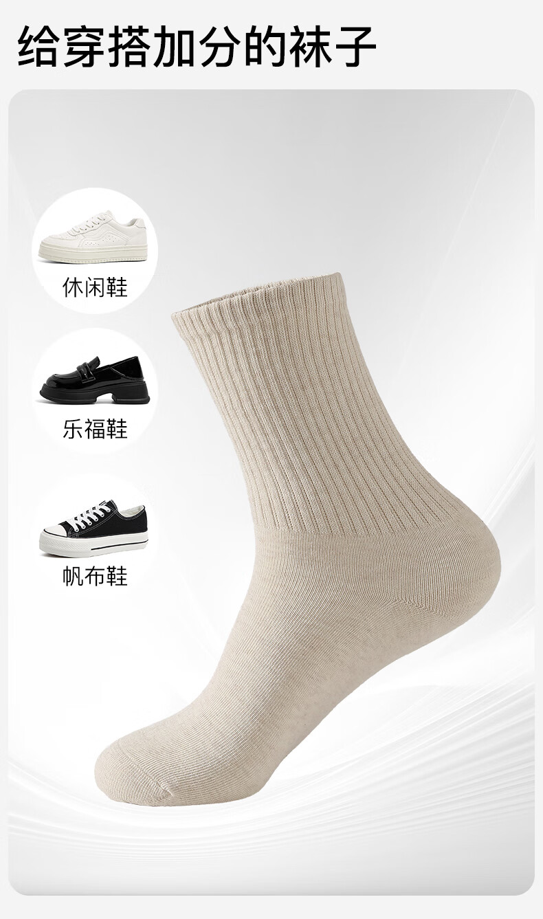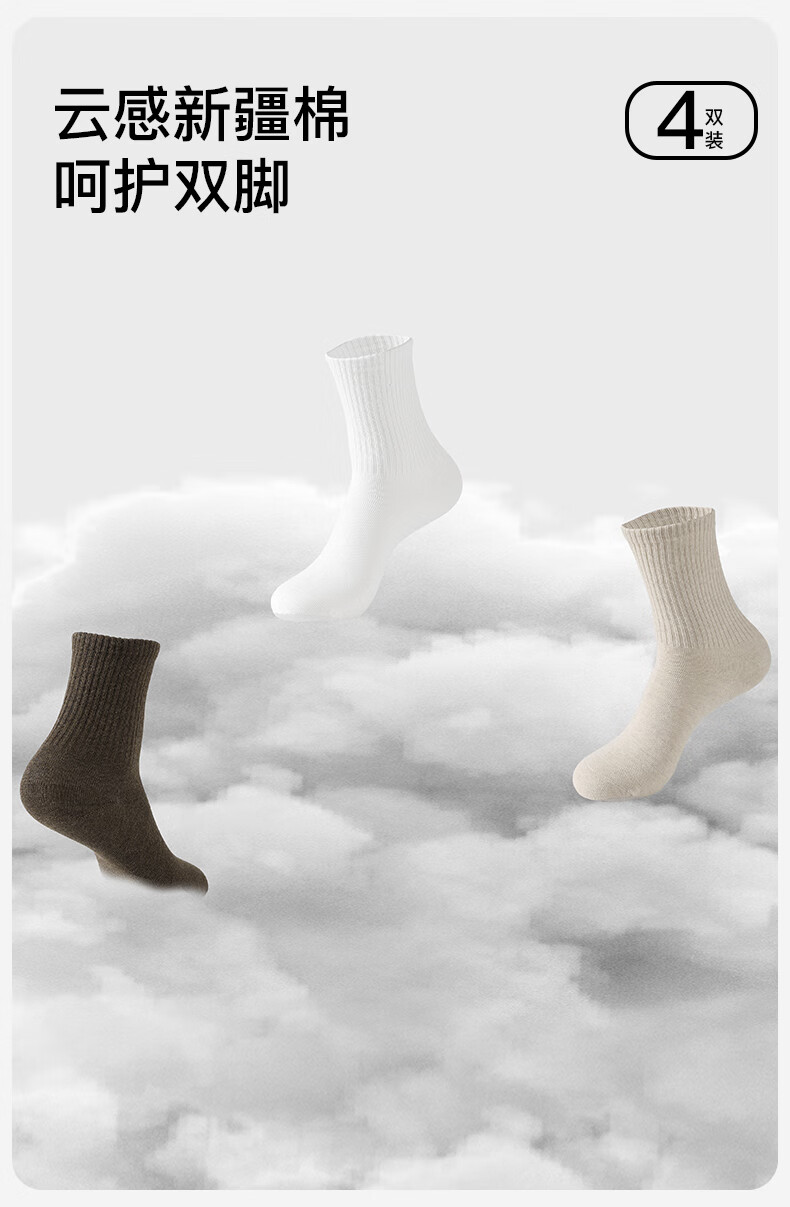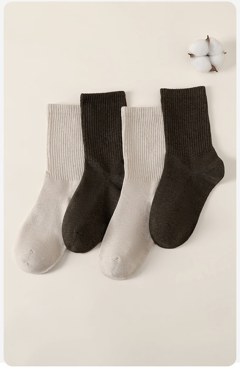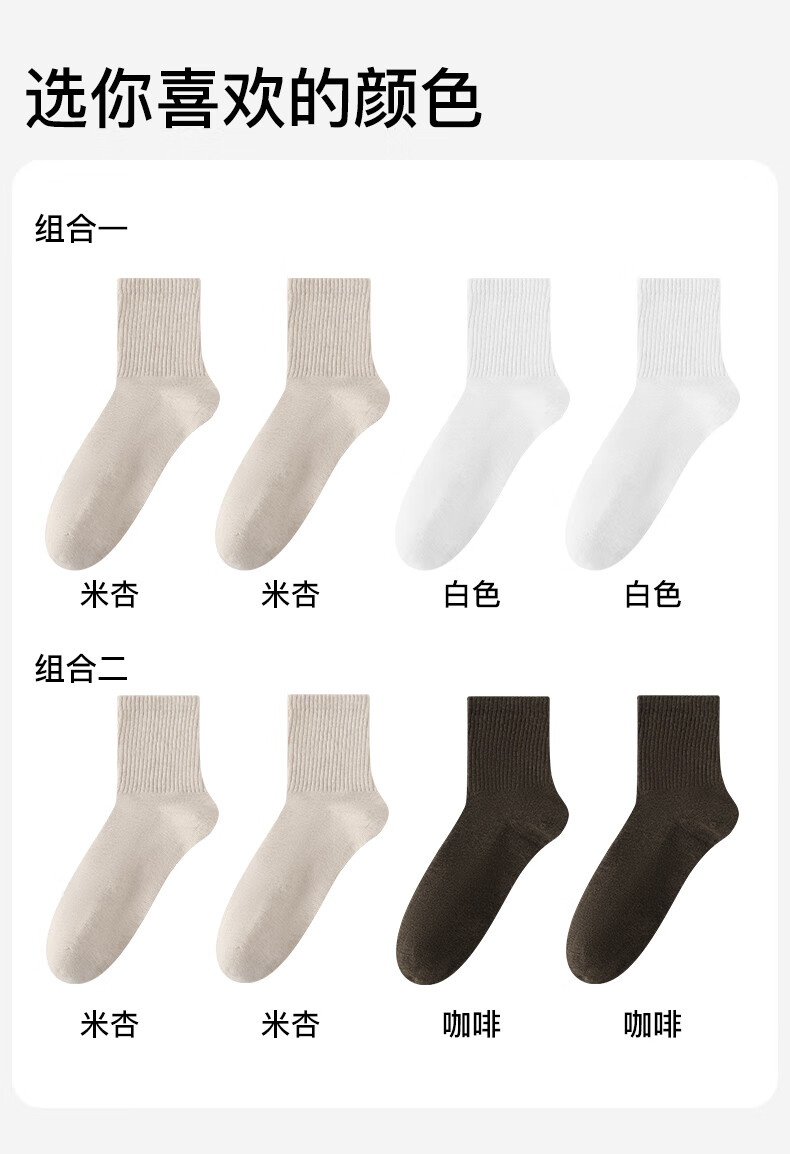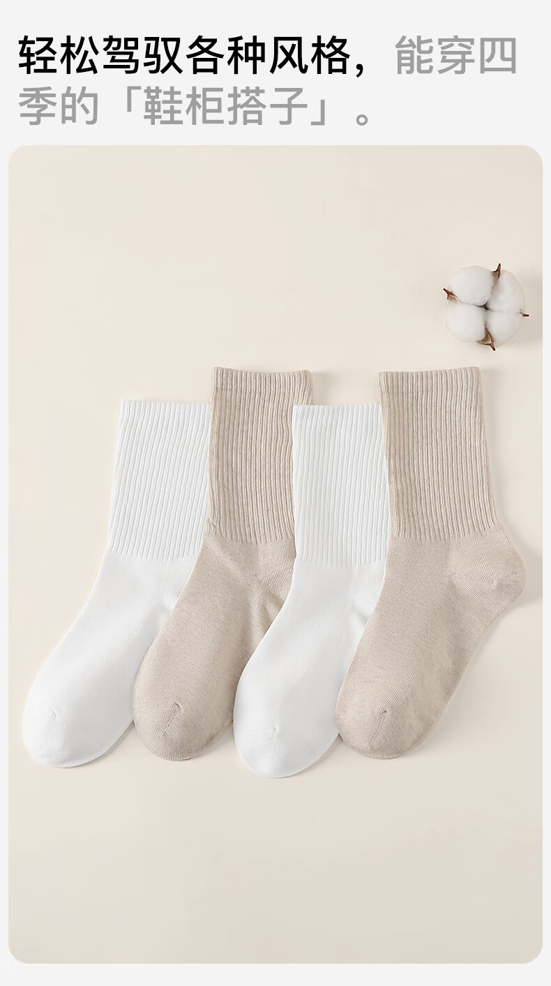 芬腾袜子女2025【云感新疆棉】4双装女士纯色中筒袜无骨女袜百搭透气 白色/白色/米杏/米杏 4双 均码