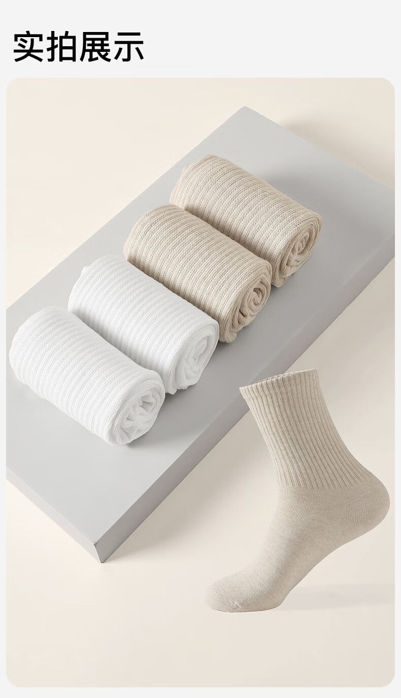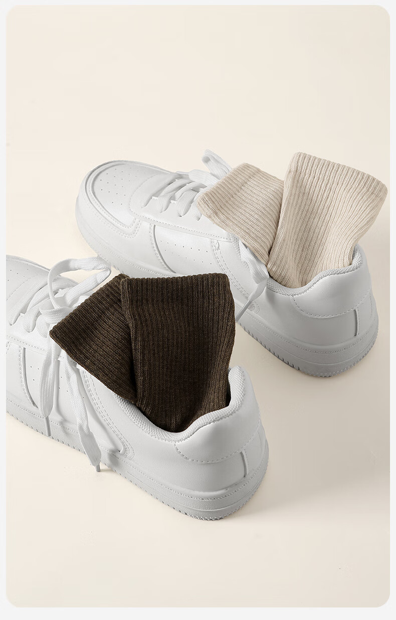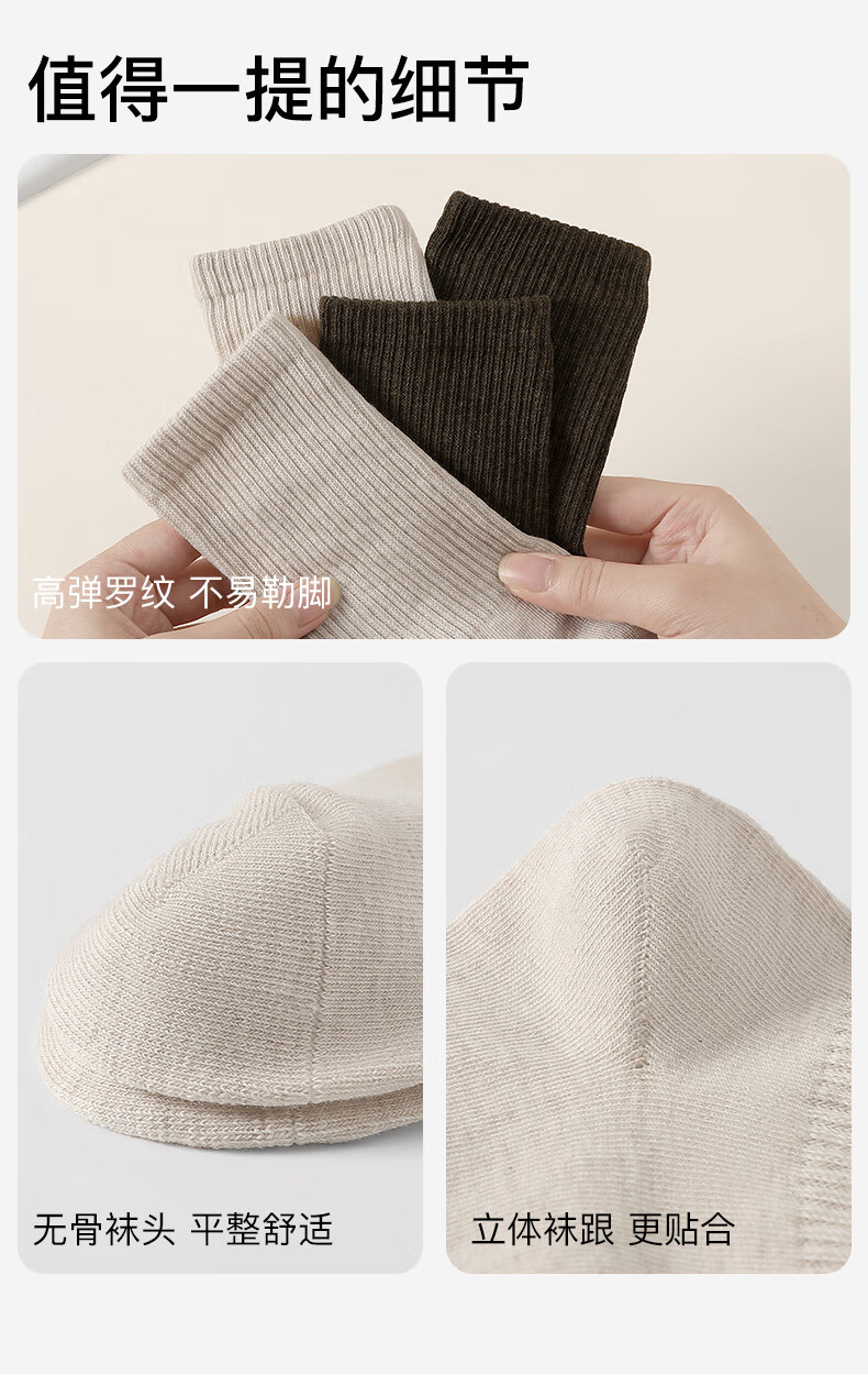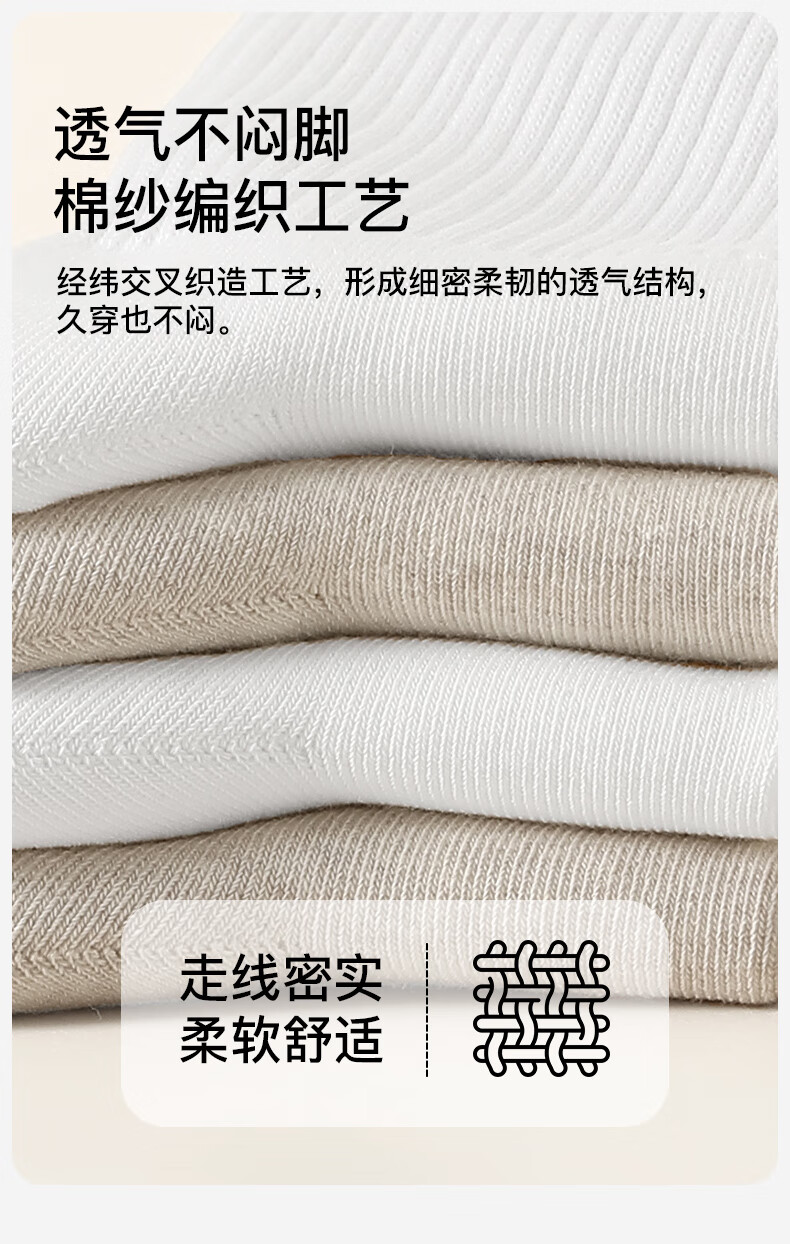 芬腾袜子女2025【云感新疆棉】4双装女士纯色中筒袜无骨女袜百搭透气 白色/白色/米杏/米杏 4双 均码