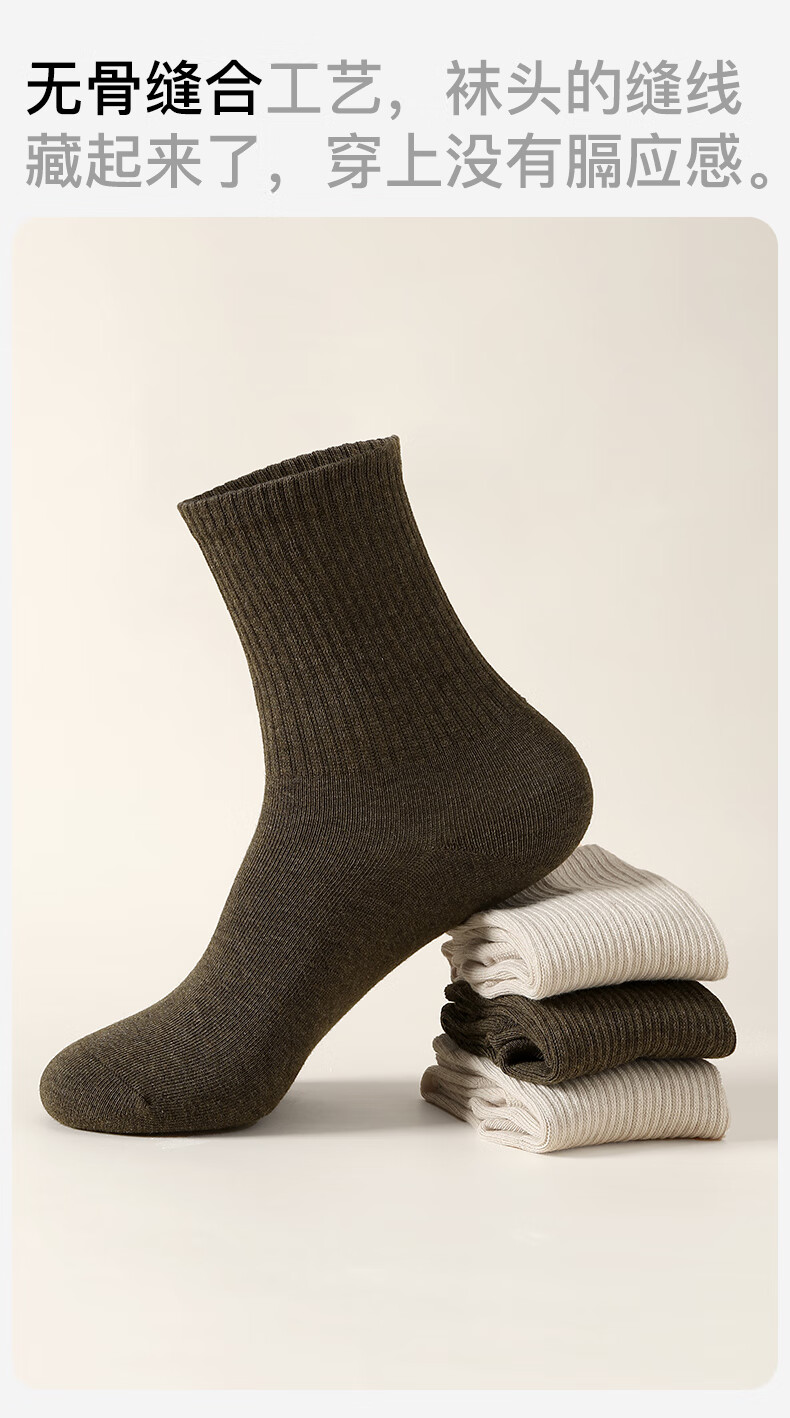 米大爷袜子男中筒袜春秋季吸汗透气休闲百搭三杠提耳款潮流男袜 中筒提耳三杠 10双 均码