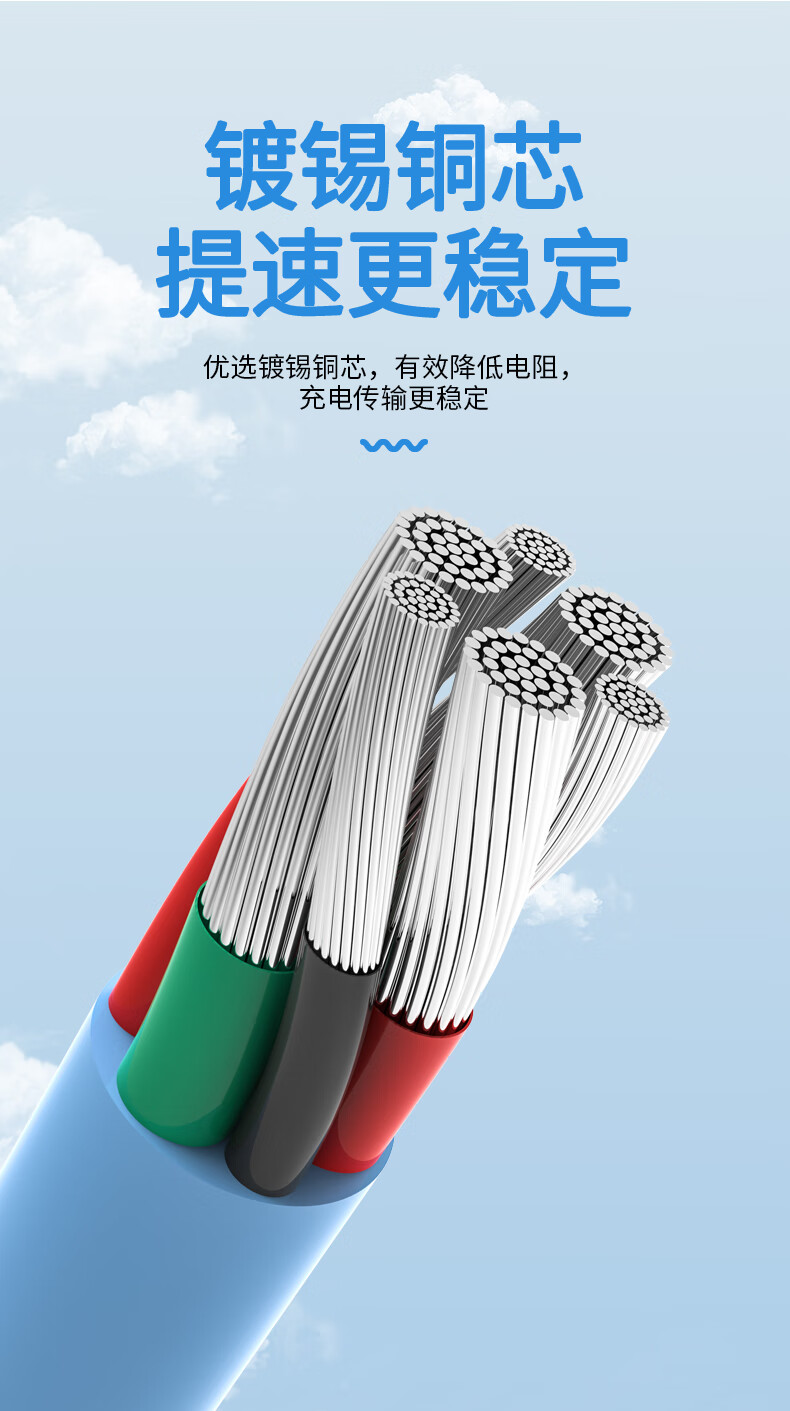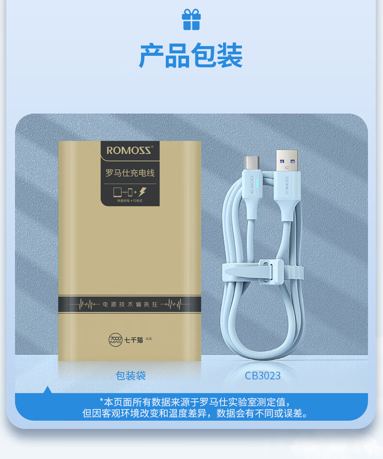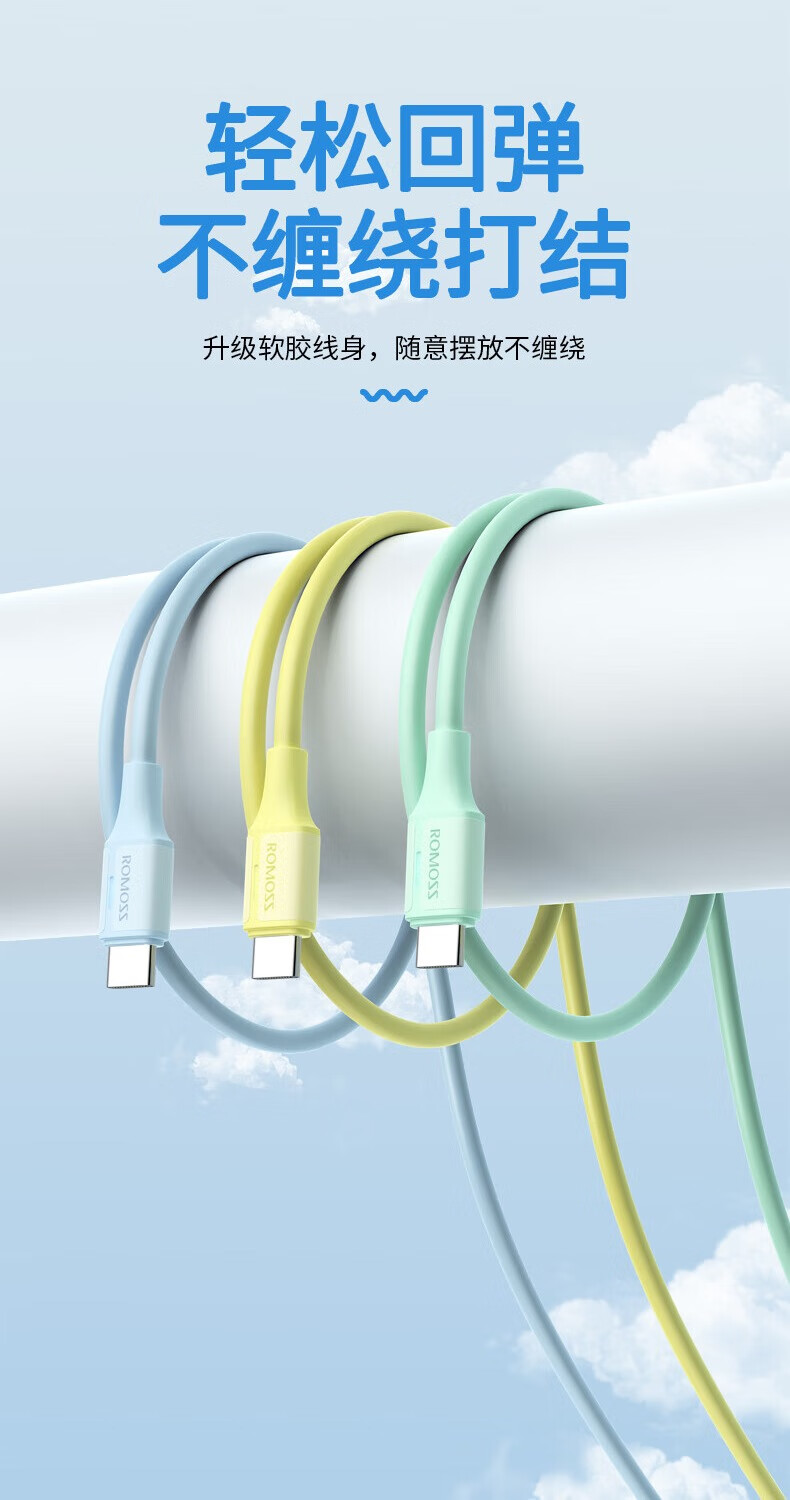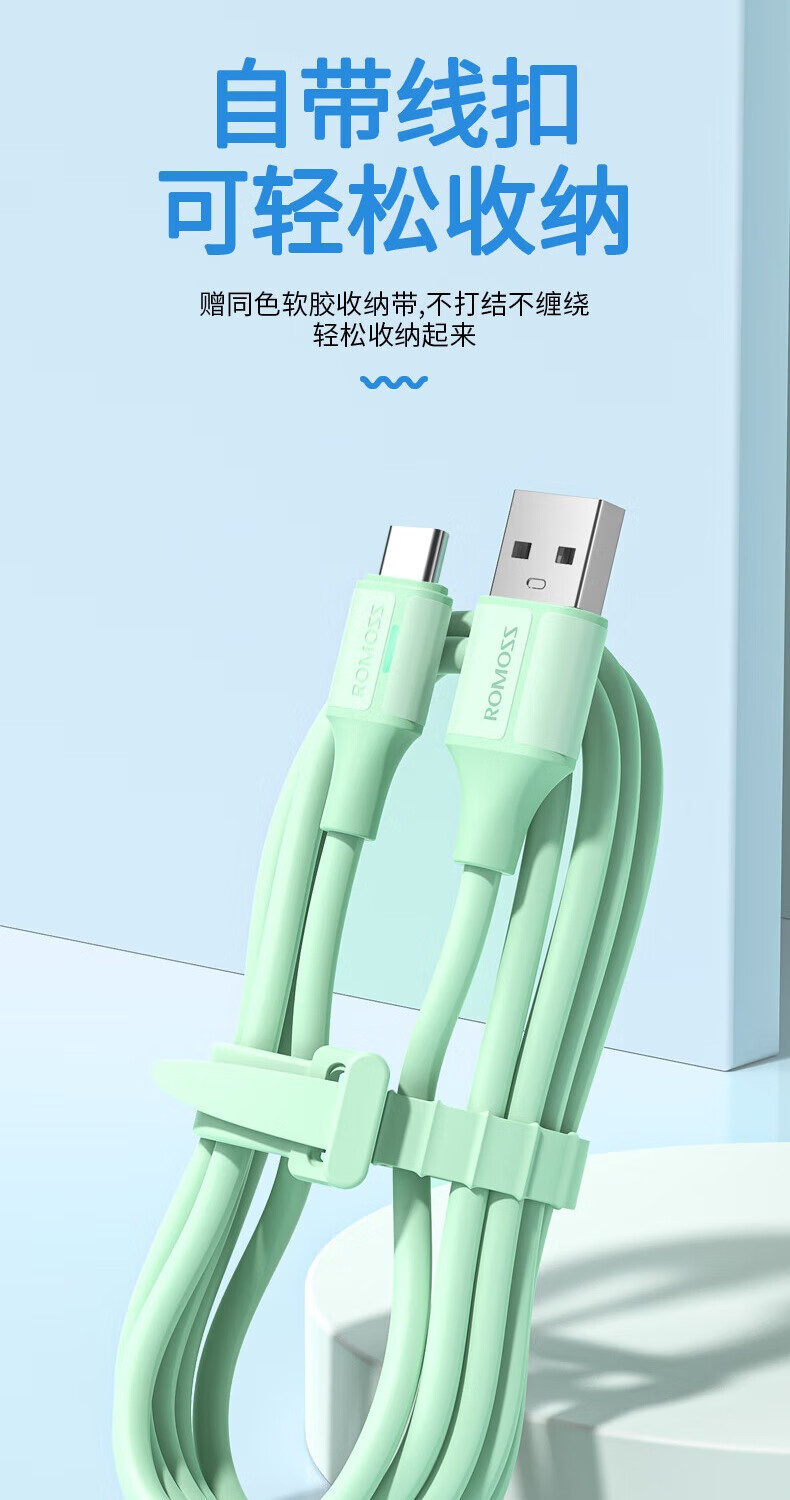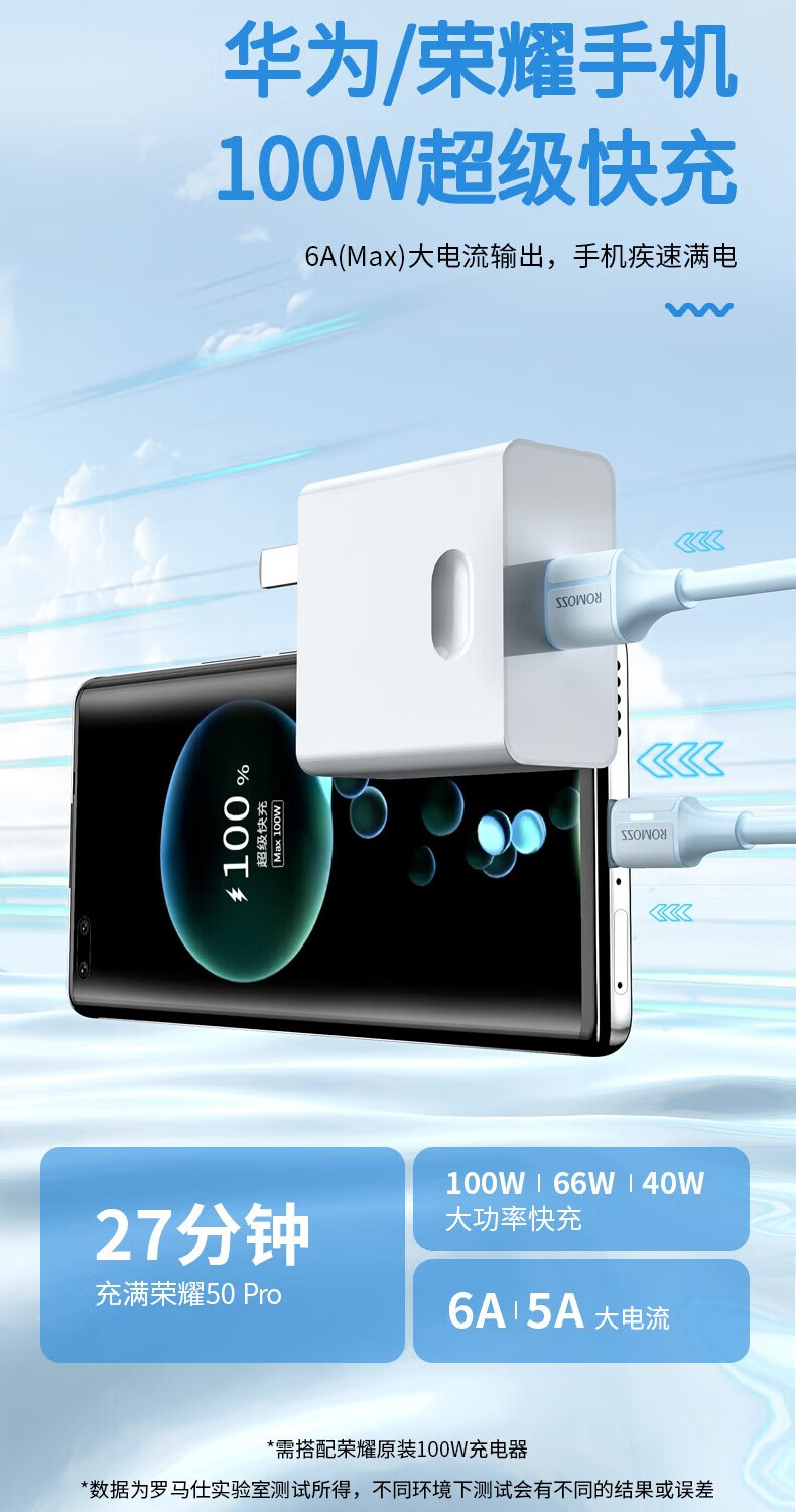 罗马仕Type-C数据线6A超级快充100W充电线带彩色LED指示灯适用华为Mate60小米荣耀平板安卓手机车载线充 淡蓝色【100W快充】1m