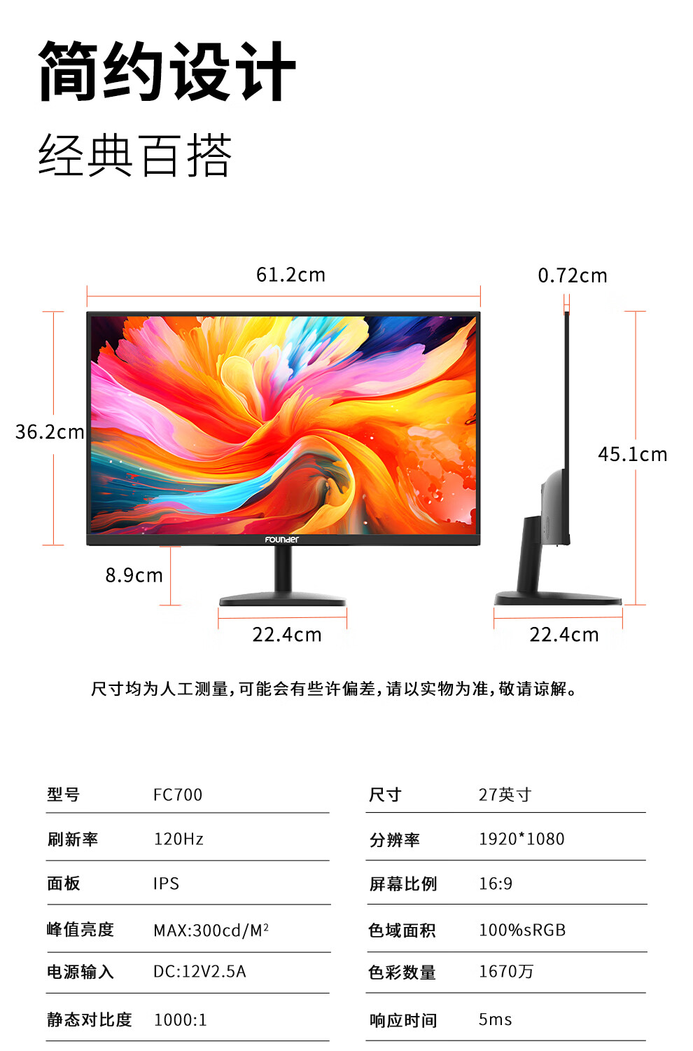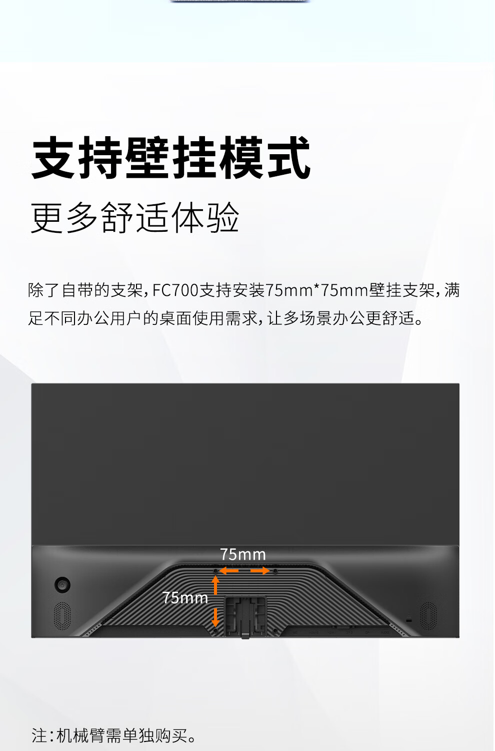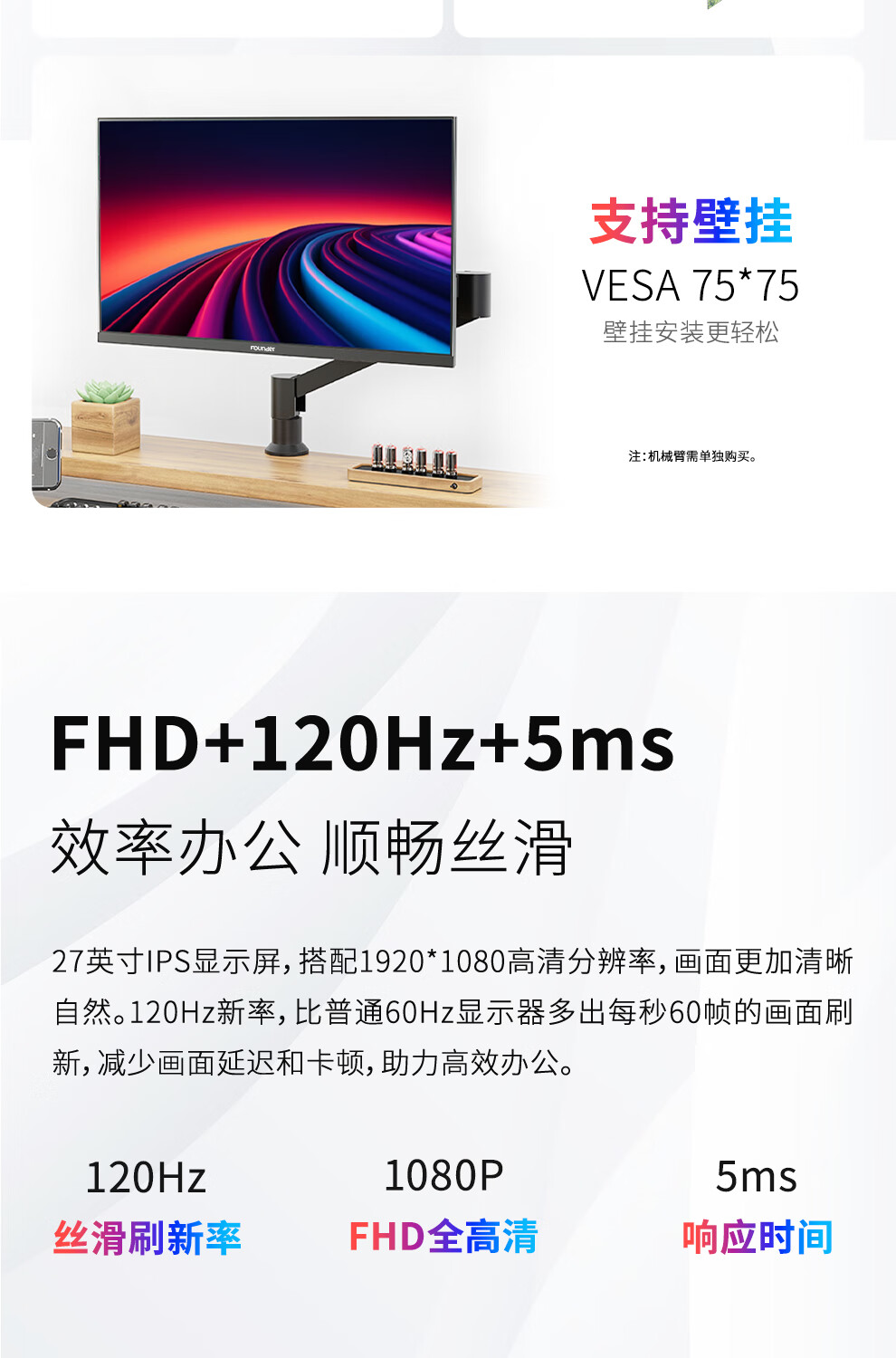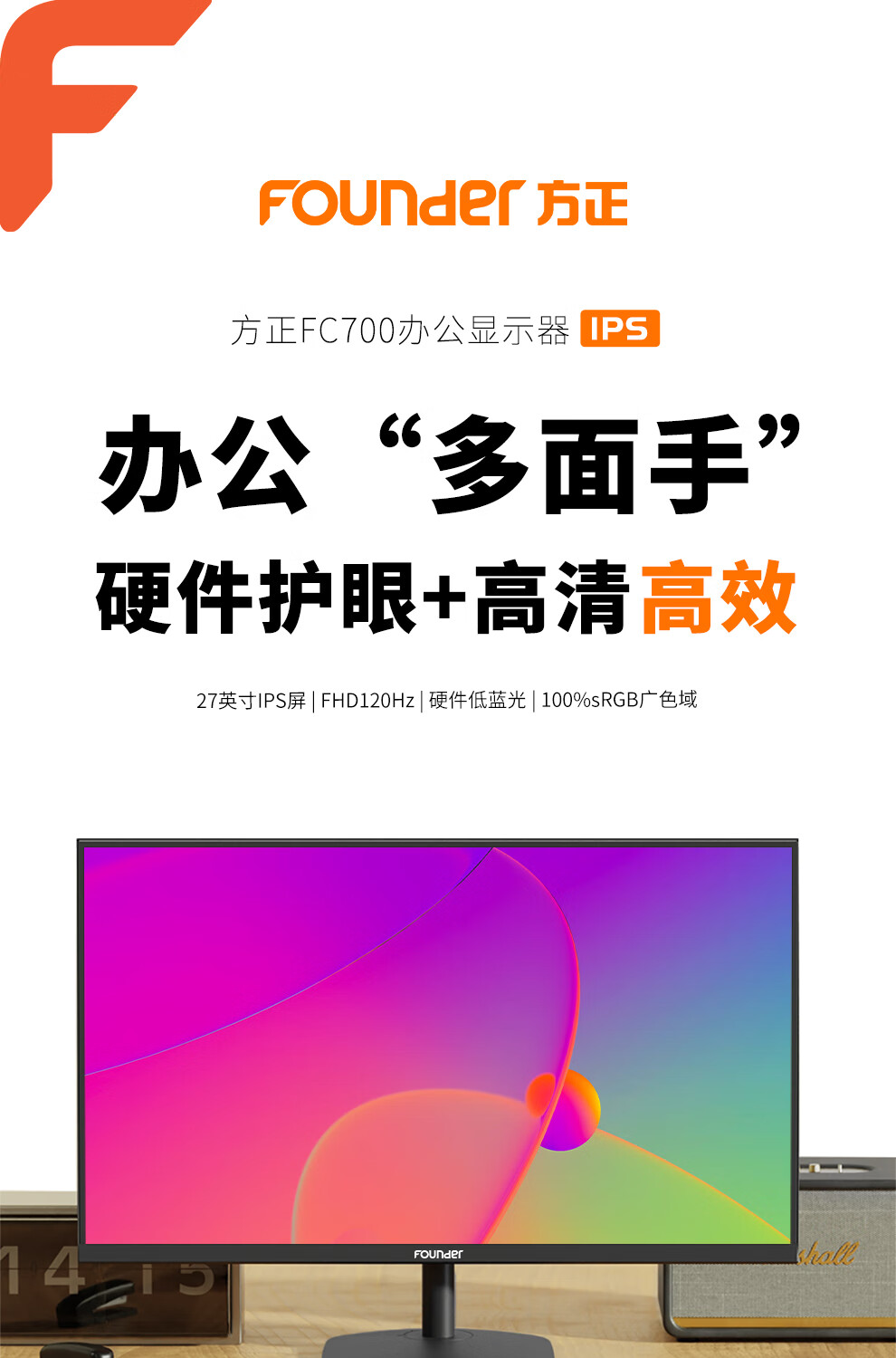 方正(Founder)27英寸120HZ更流畅专业办公显示器 高清IPS屏 硬件低蓝光 可壁挂电竞电脑屏幕FC700