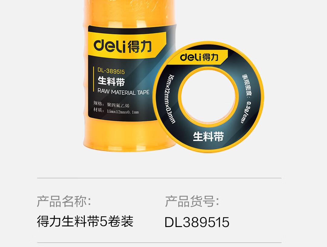 得力(deli)生料带加宽加长型聚乙烯密封胶带强密封耐老化强韧性5卷
