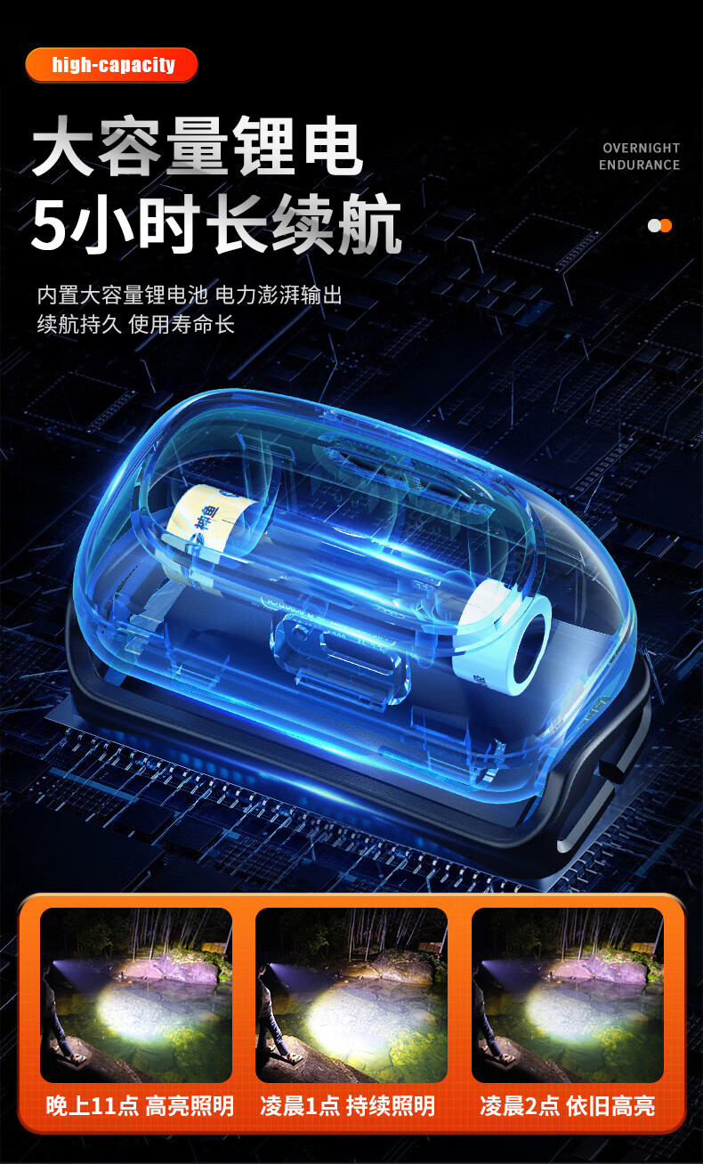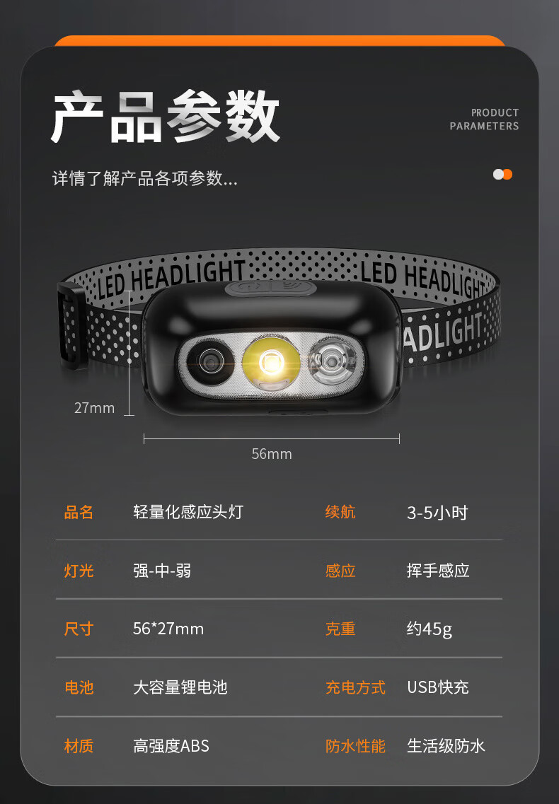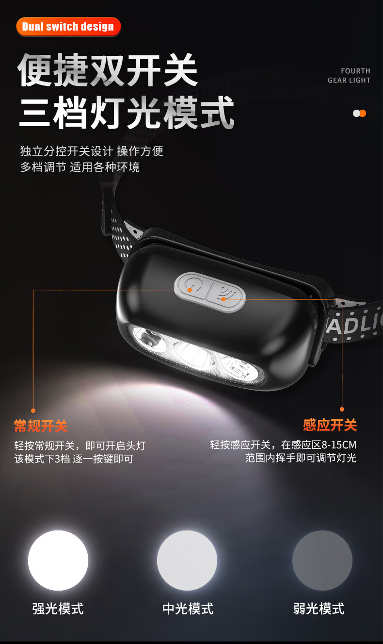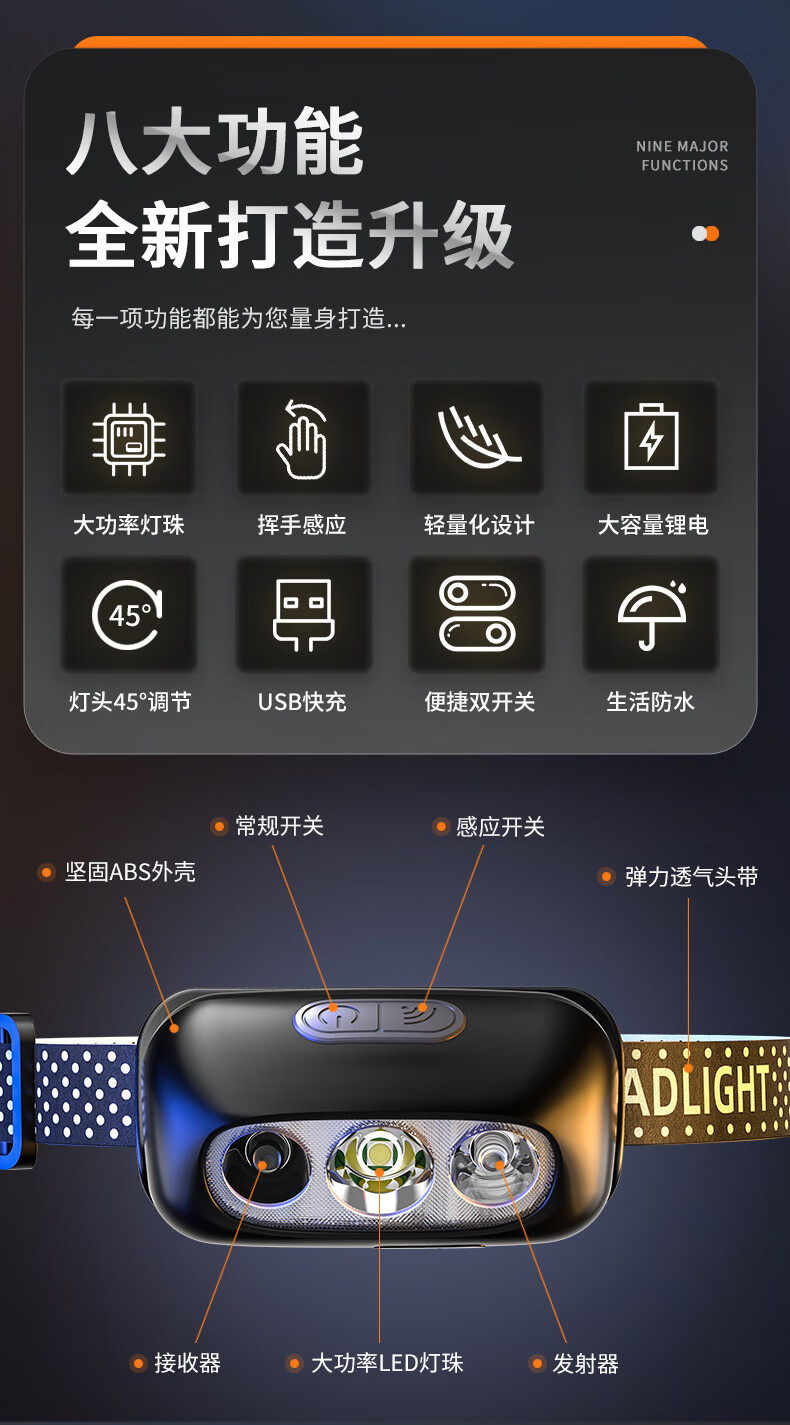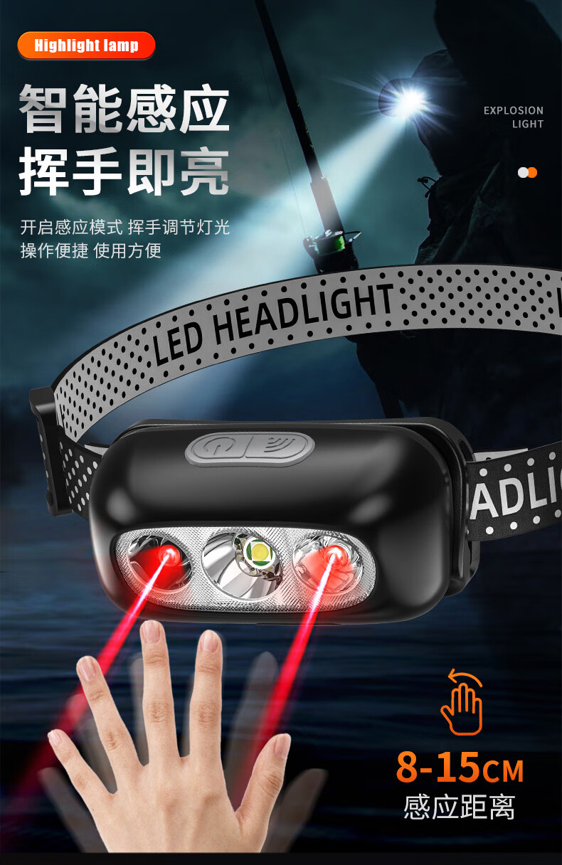 神鱼(SHENYU)强光LED头灯超亮感应夜钓专用超长续航可充电头戴户外登山 挥手感应-三档调节