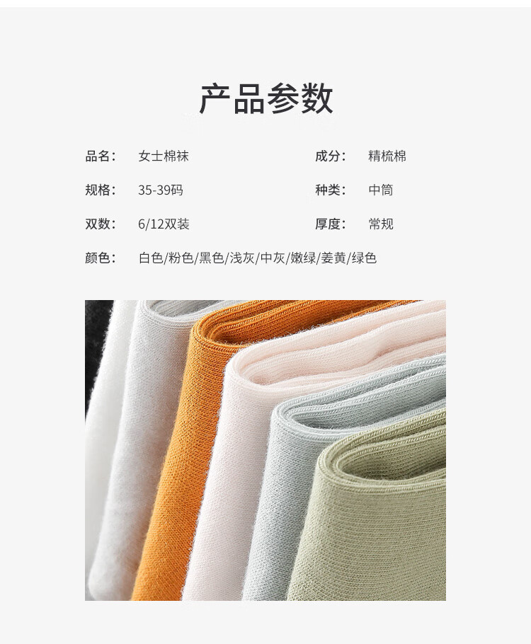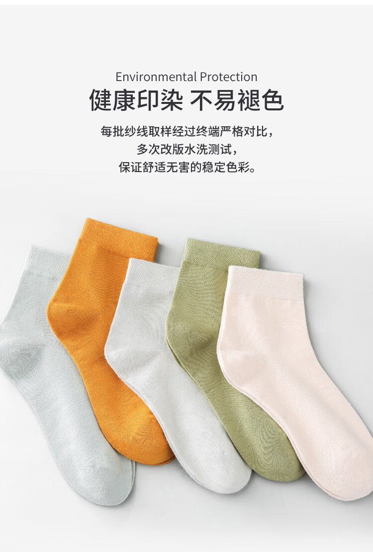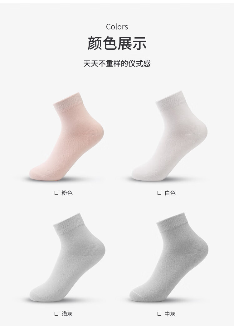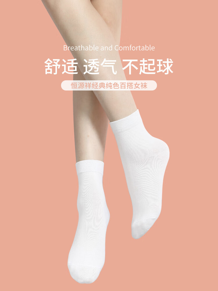 恒源祥袜子女生防臭中筒袜春夏季透气白色百搭休闲袜松口纯色 【中筒棉袜】6白色