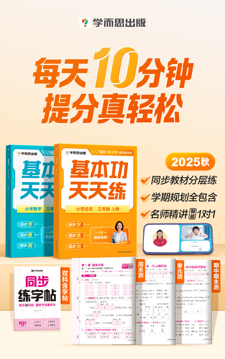 学而思 2025新版语文数学基本功天天练小学 一-六年级上册 智能批改 每天10分钟练透基本功 语文 二年级上册