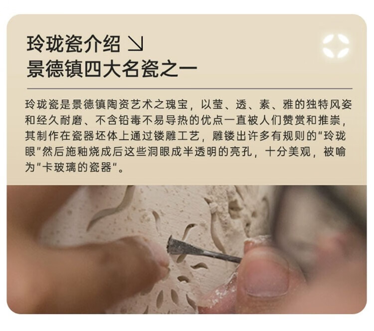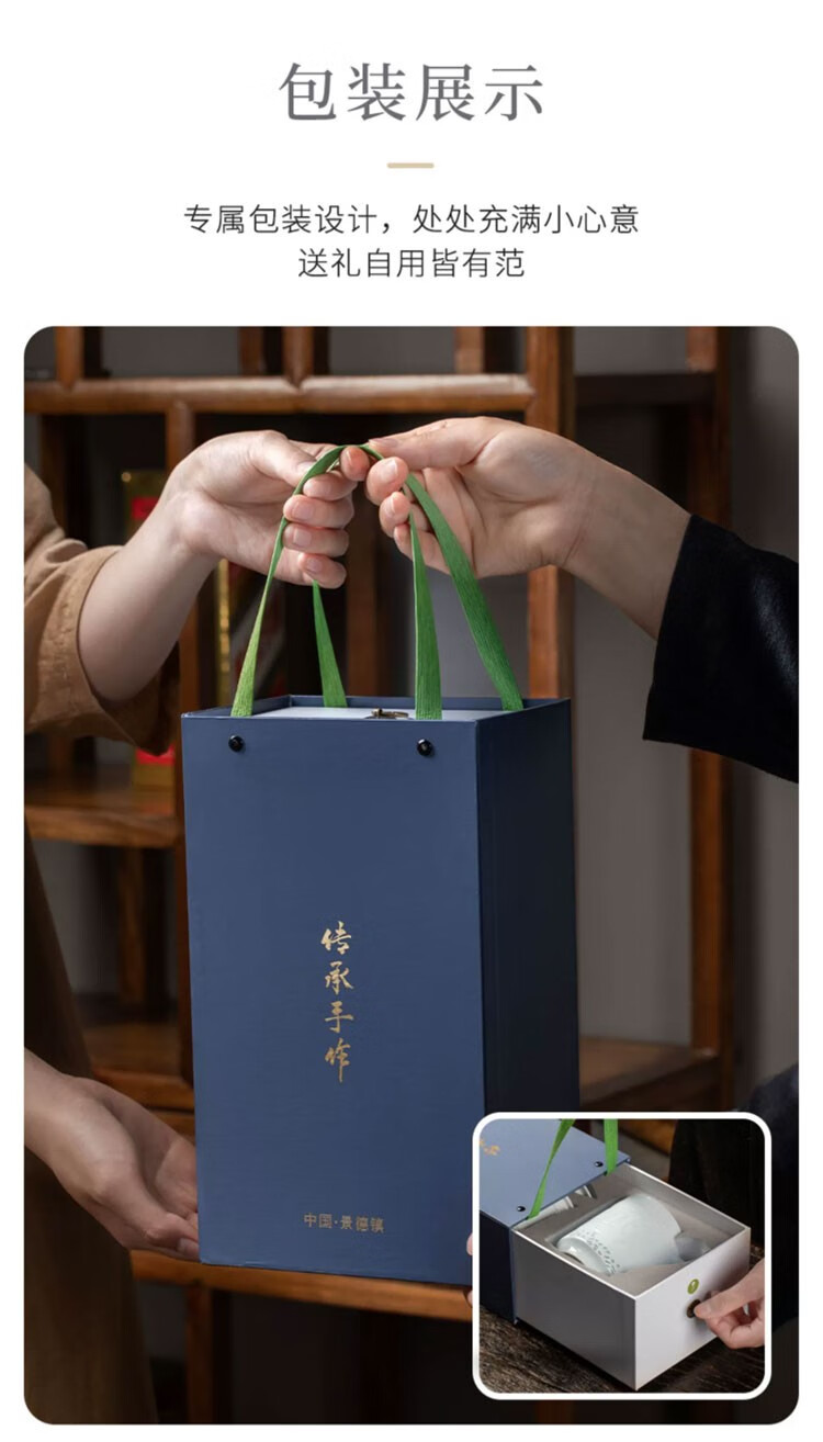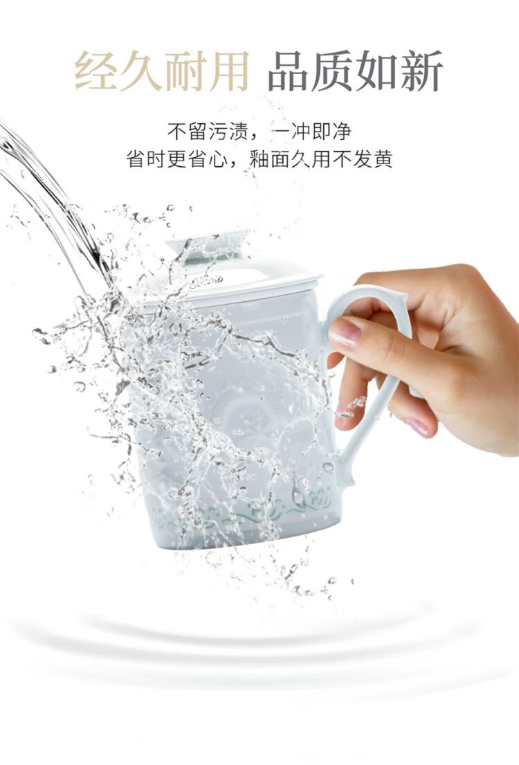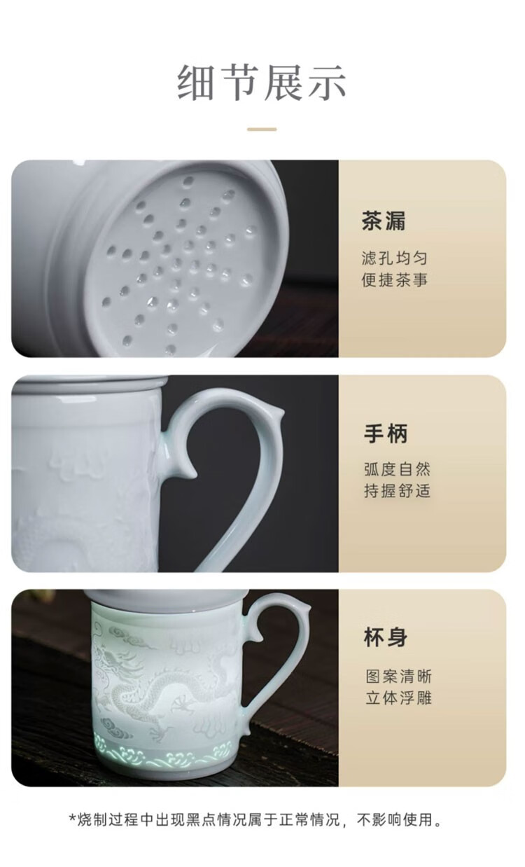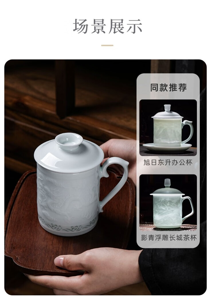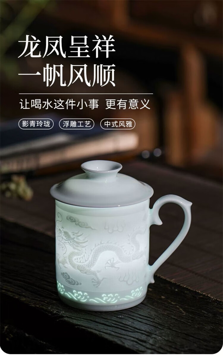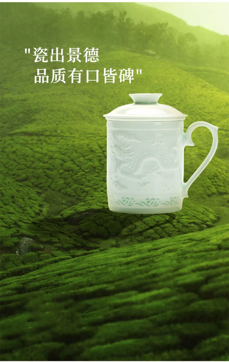 零峰景德镇影青陶瓷雕刻玲珑茶杯办公杯家用茶水分离泡茶杯伴手礼物 松鹤延年茶杯普通包装420ml1只 一组