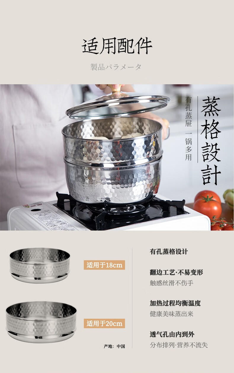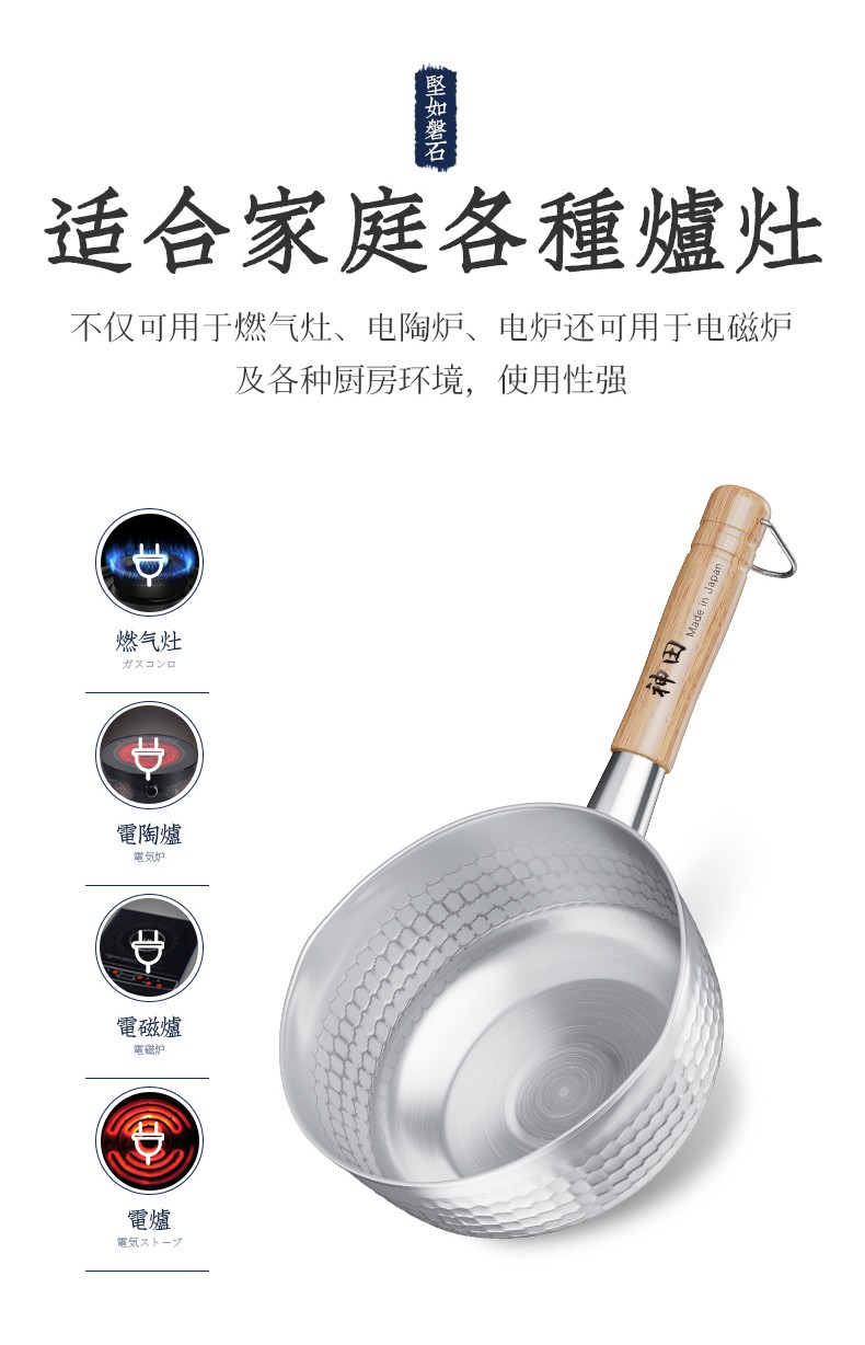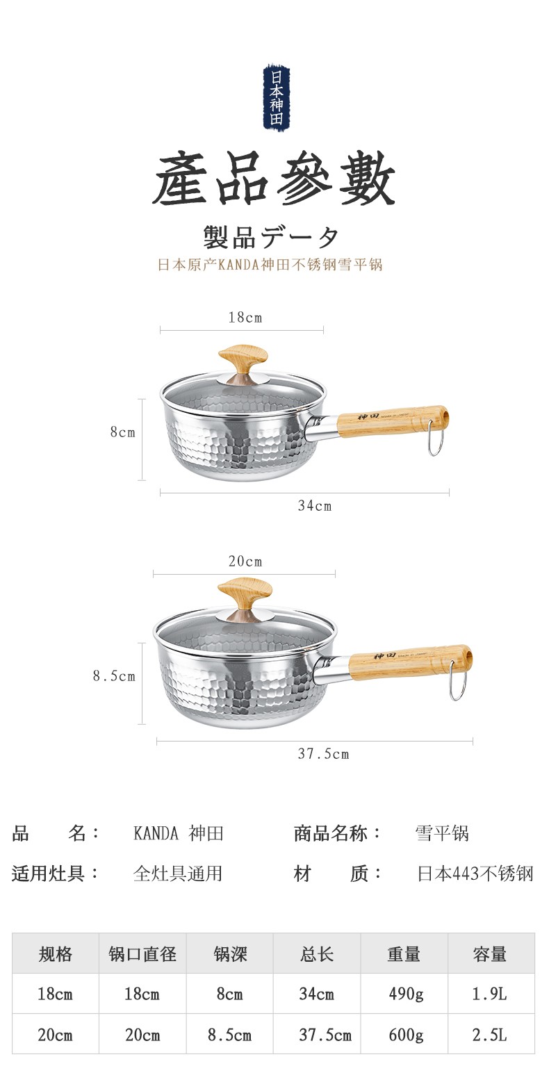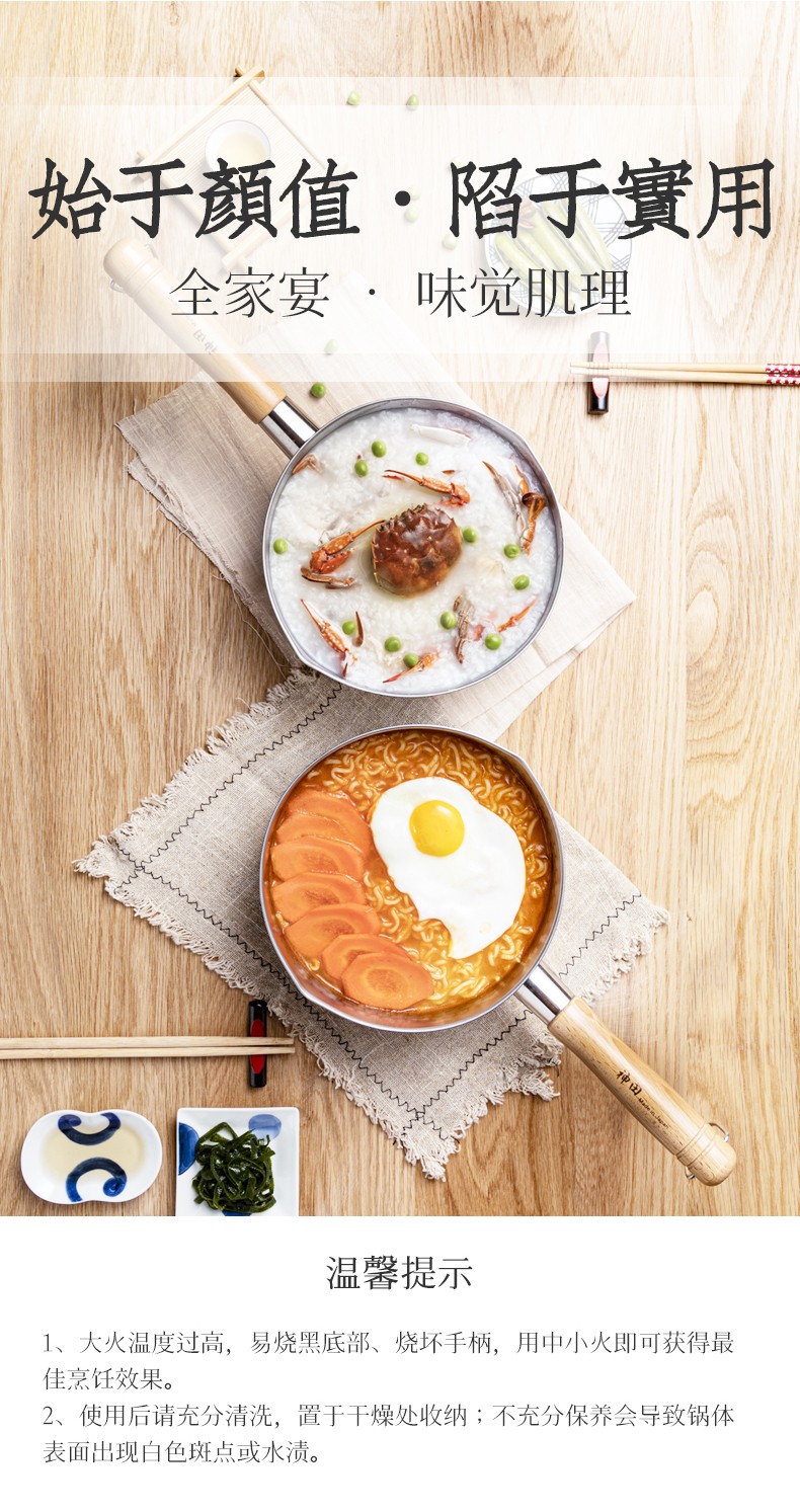神田雪平锅日式不锈钢汤锅雪平锅牛奶锅辅食锅煮面锅无涂层锅 单锅(玻璃盖) 18cm