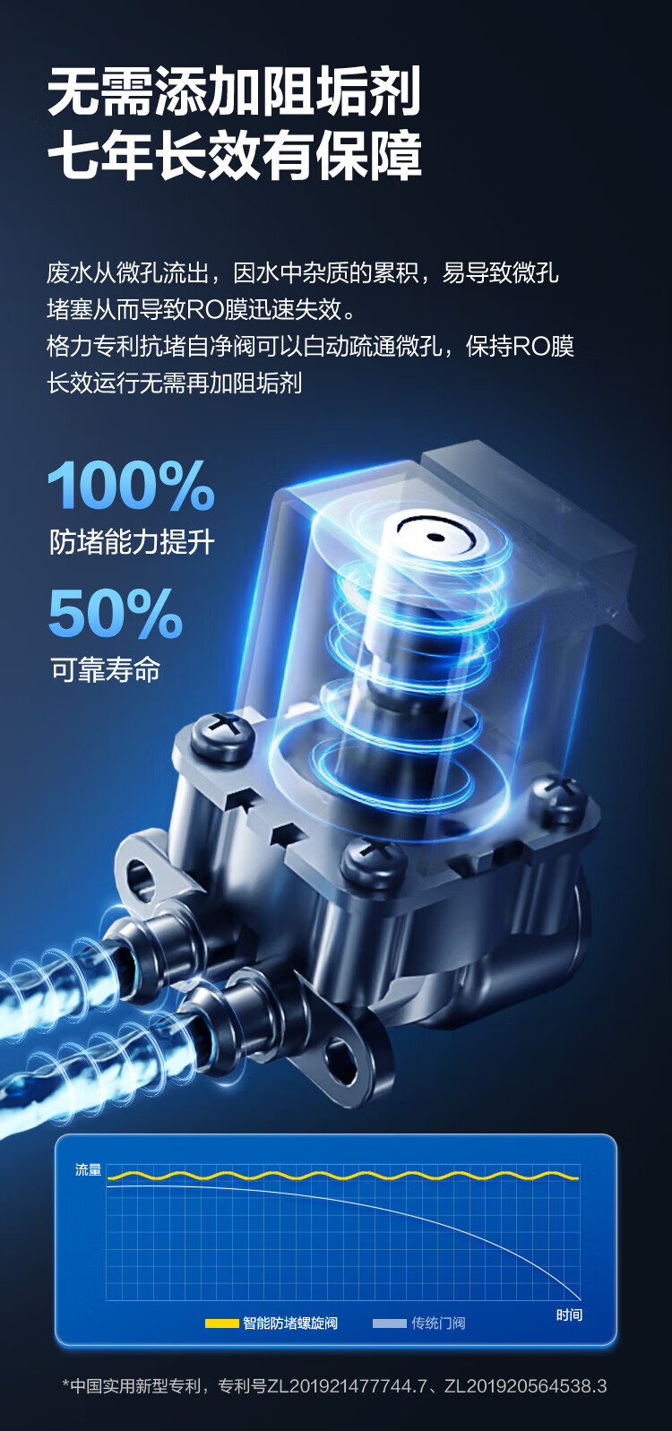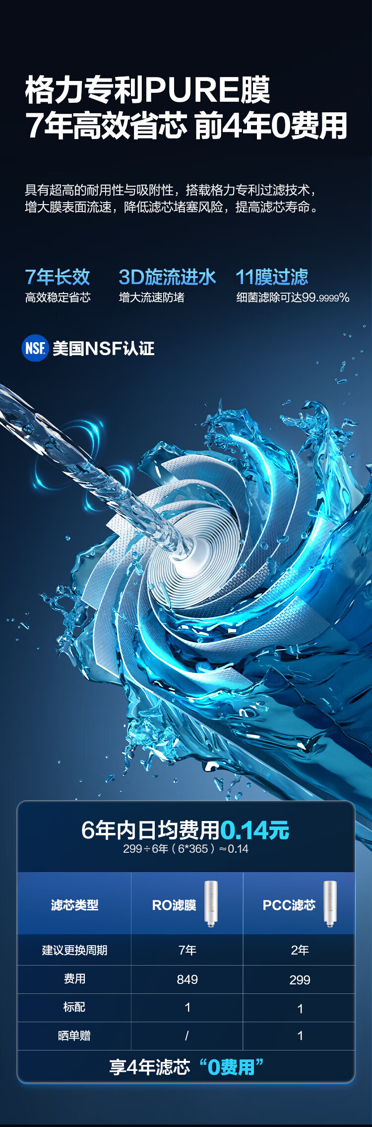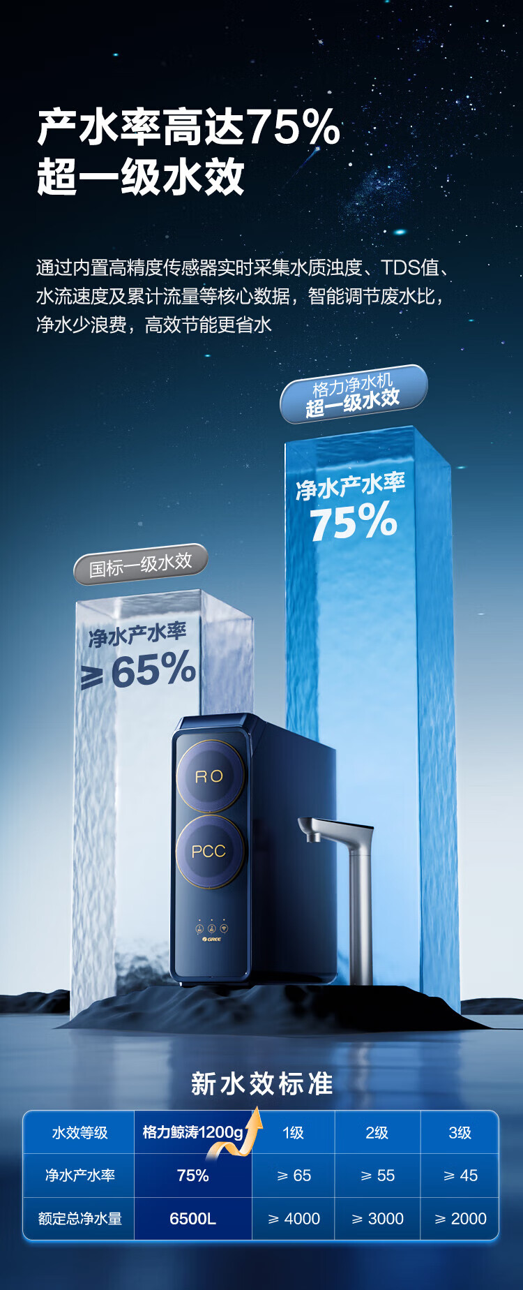 格力(GREE)家用净水机鲸涛1200G PRO 7年长效RO膜 0阻垢剂反渗透直饮净水器厨下式净饮机 鲜活零陈水