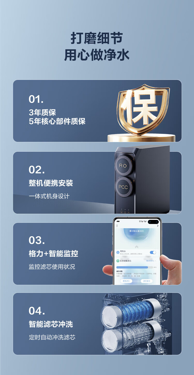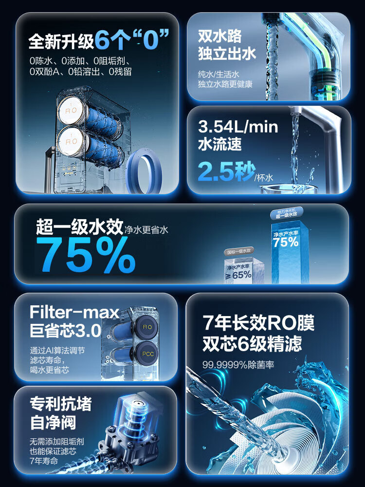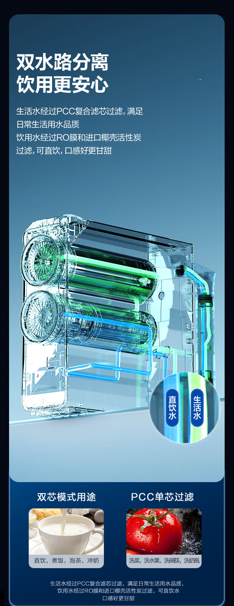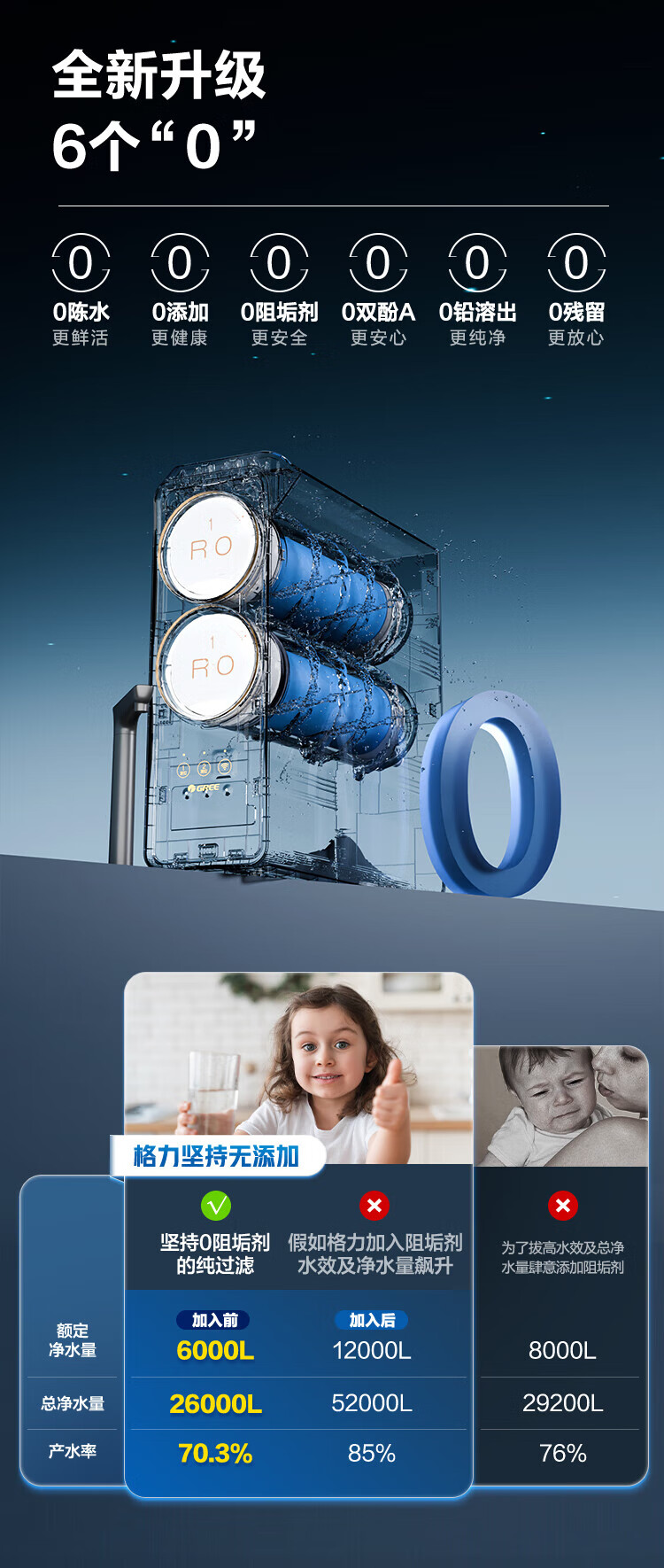 格力(GREE)家用净水机鲸涛1200G PRO 7年长效RO膜 0阻垢剂反渗透直饮净水器厨下式净饮机 鲜活零陈水