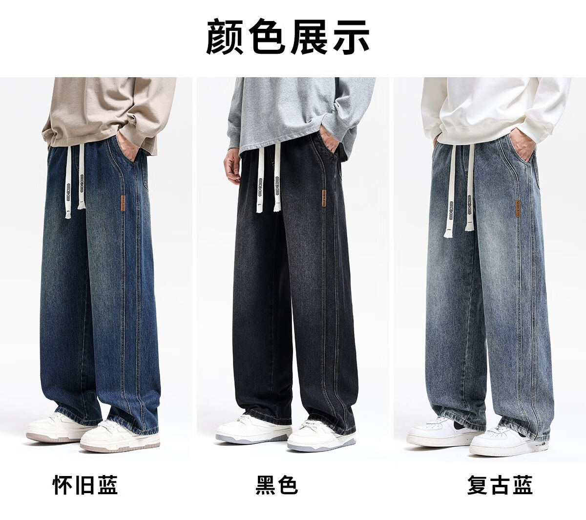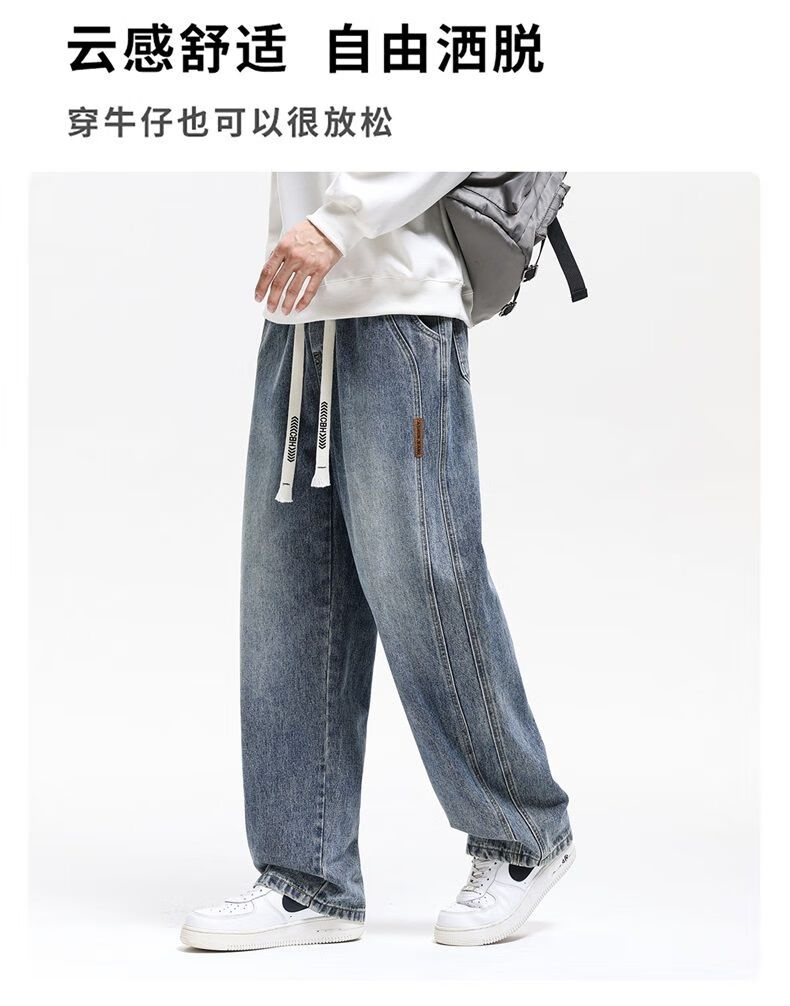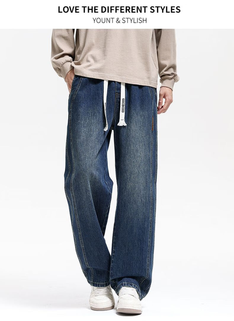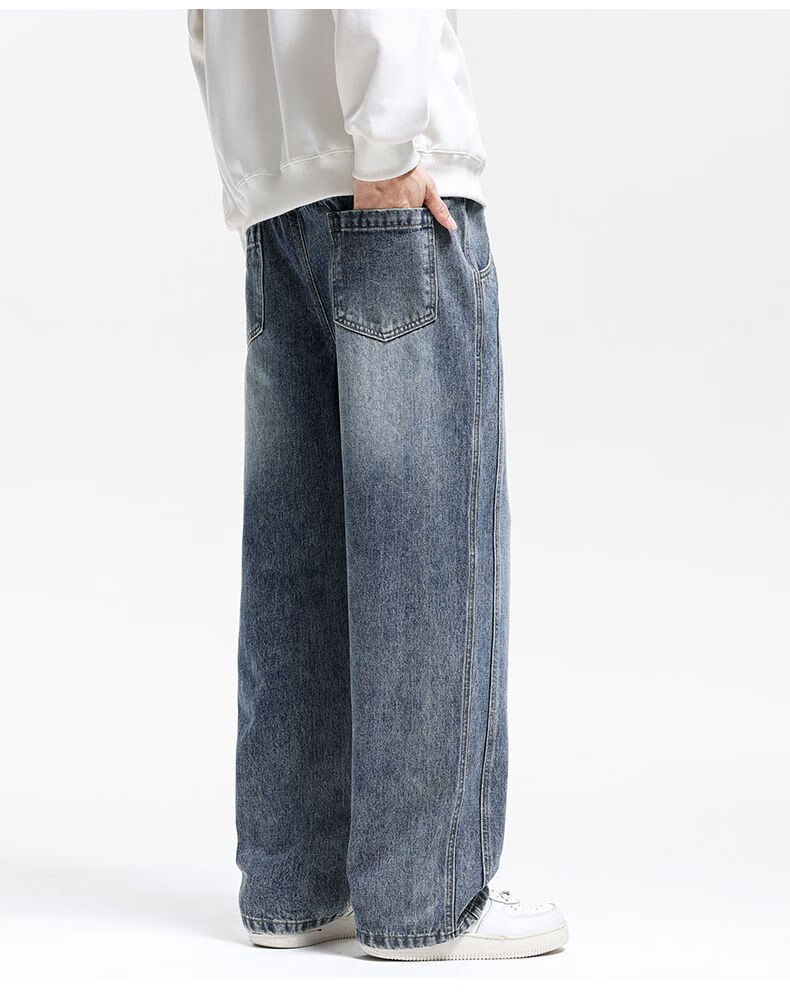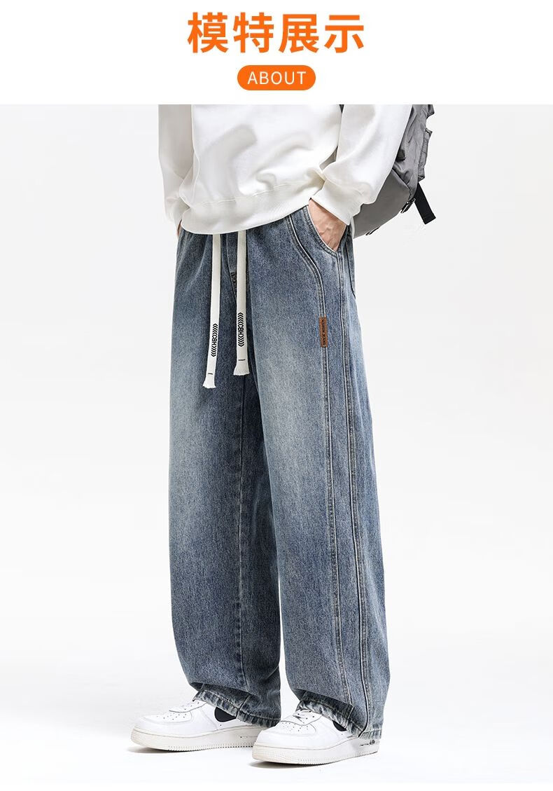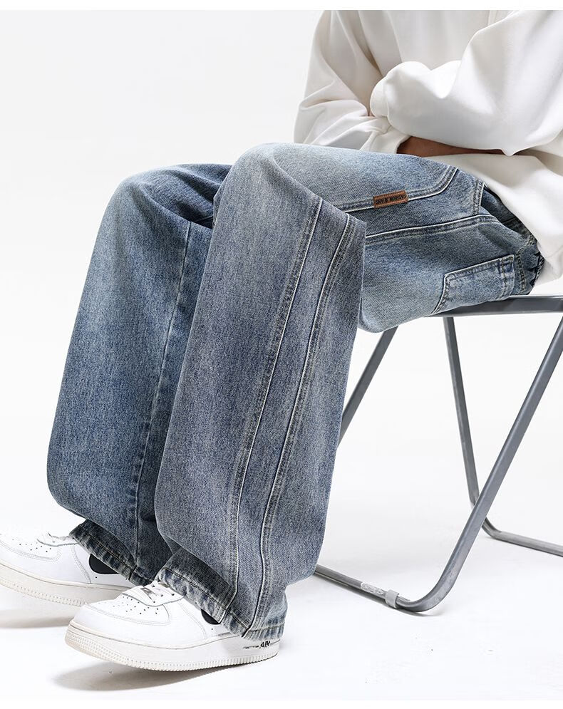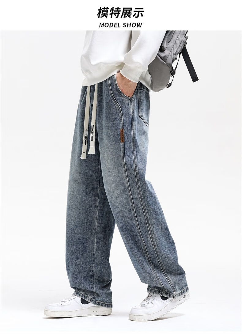 AEMAPE美国苹果高端牛仔裤男士2025新款水洗高街薄款复古宽松直筒阔腿裤 深怀旧 【春秋款】 2XL 建议160-180斤