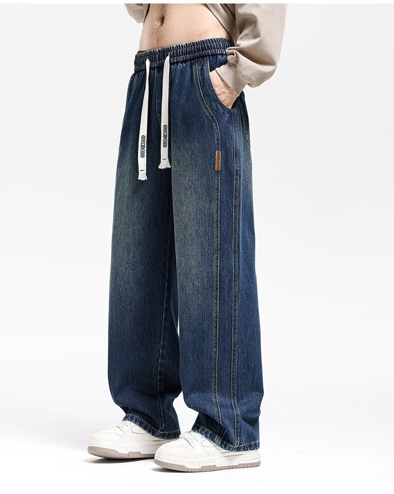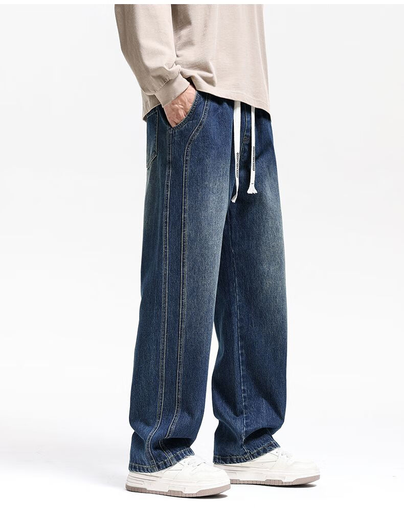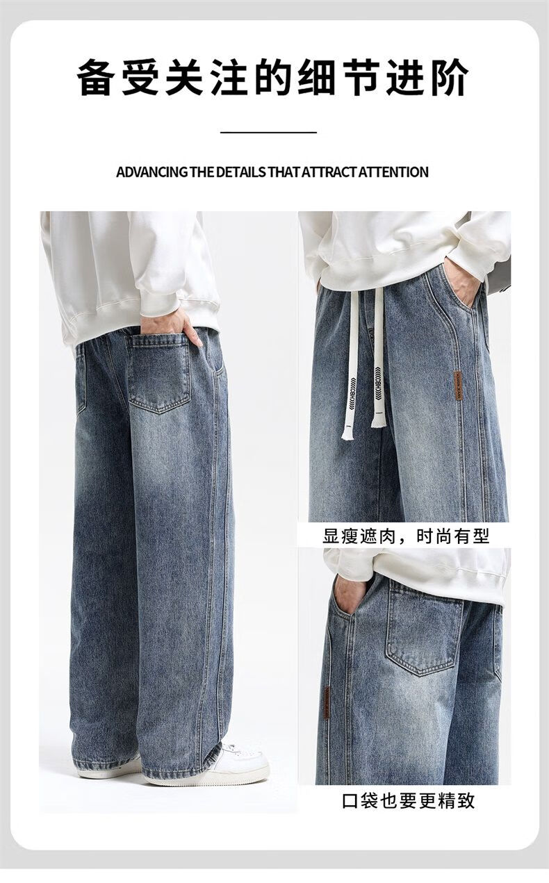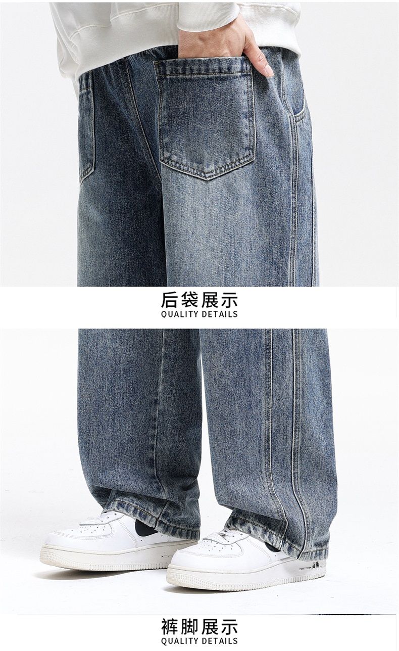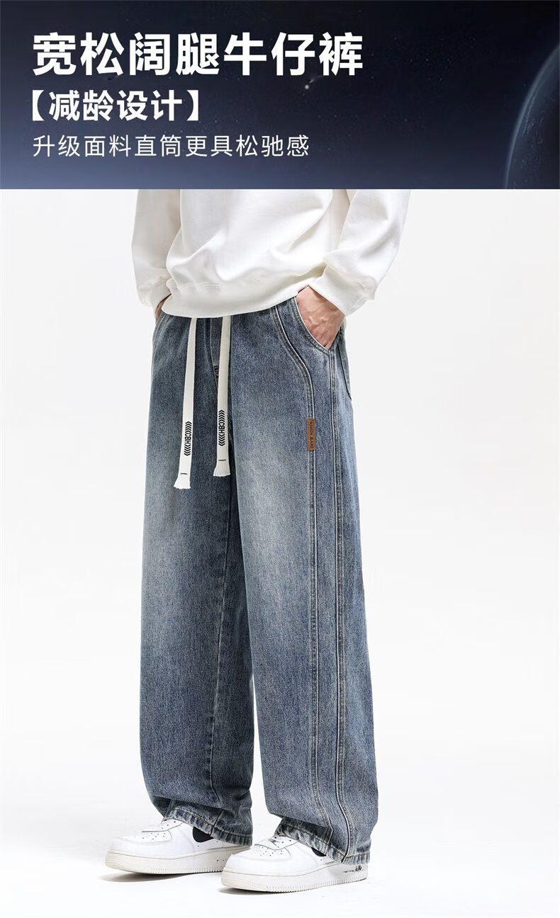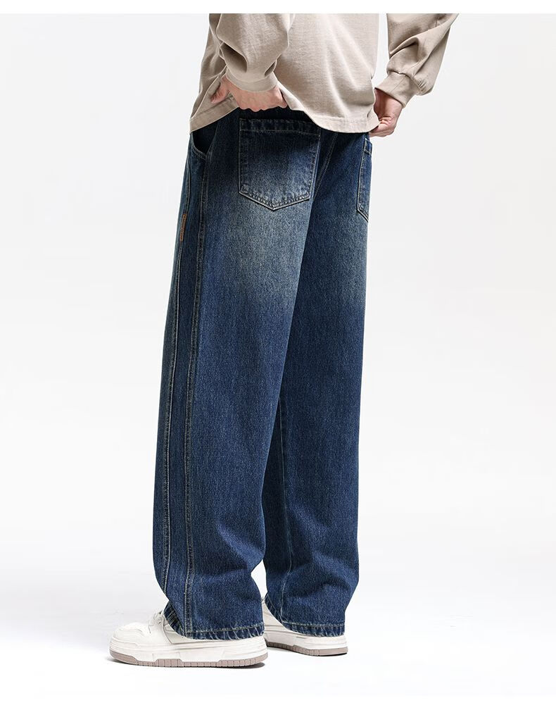 AEMAPE美国苹果高端牛仔裤男士2025新款水洗高街薄款复古宽松直筒阔腿裤 深怀旧 【春秋款】 2XL 建议160-180斤