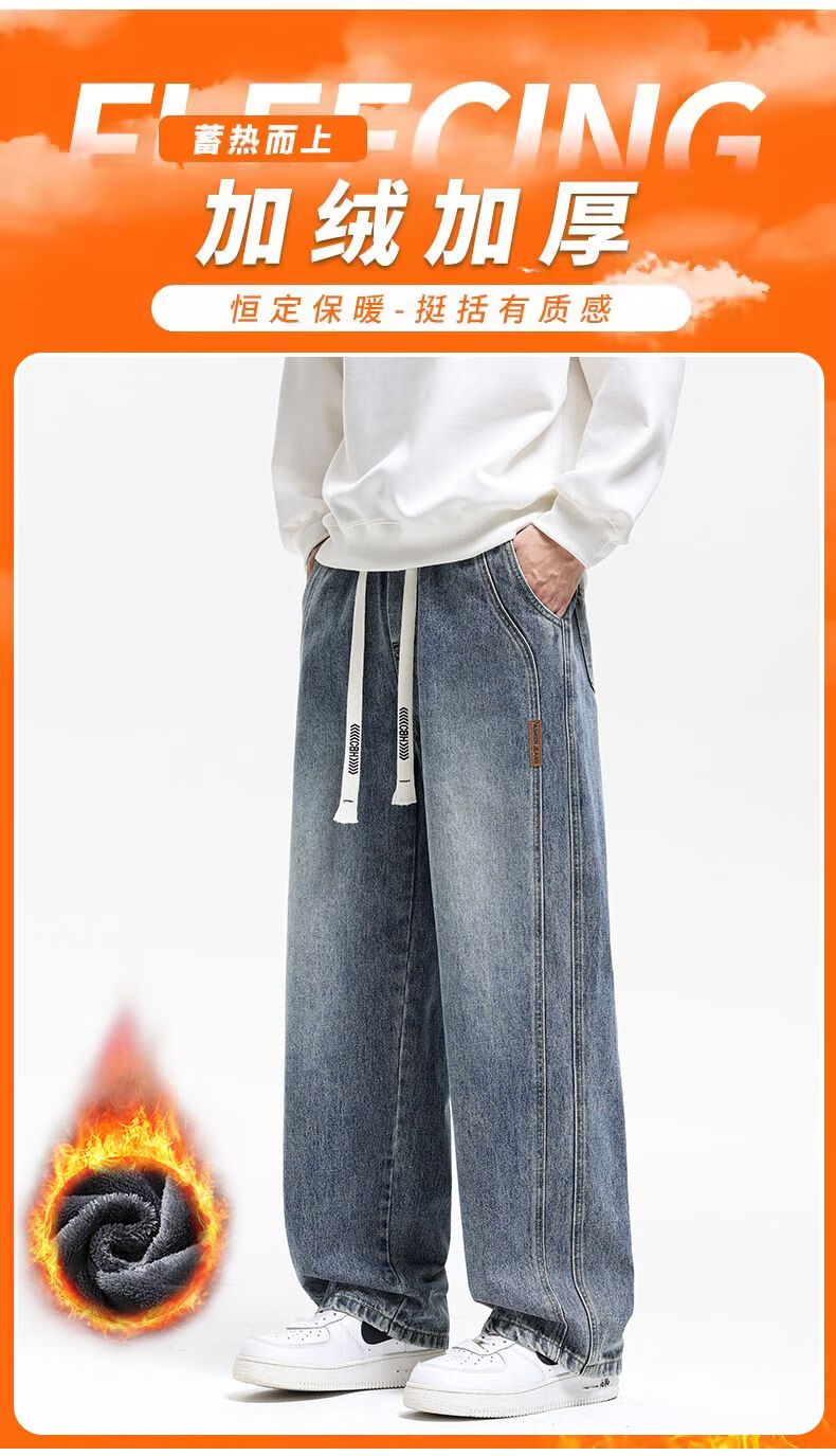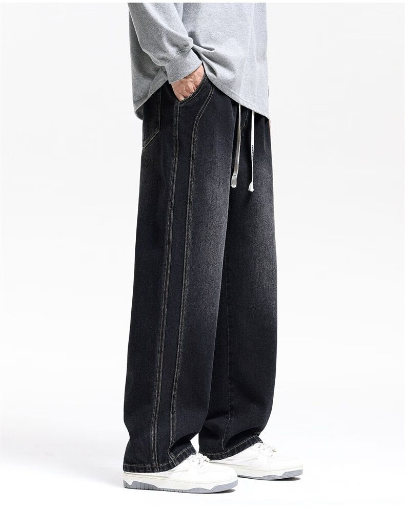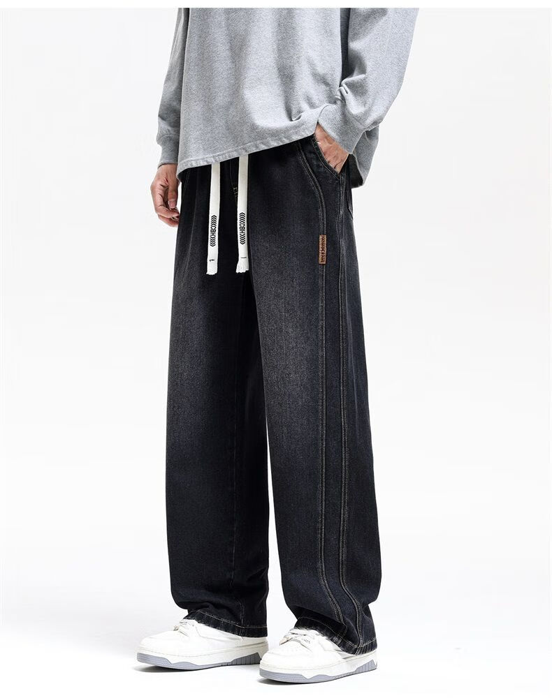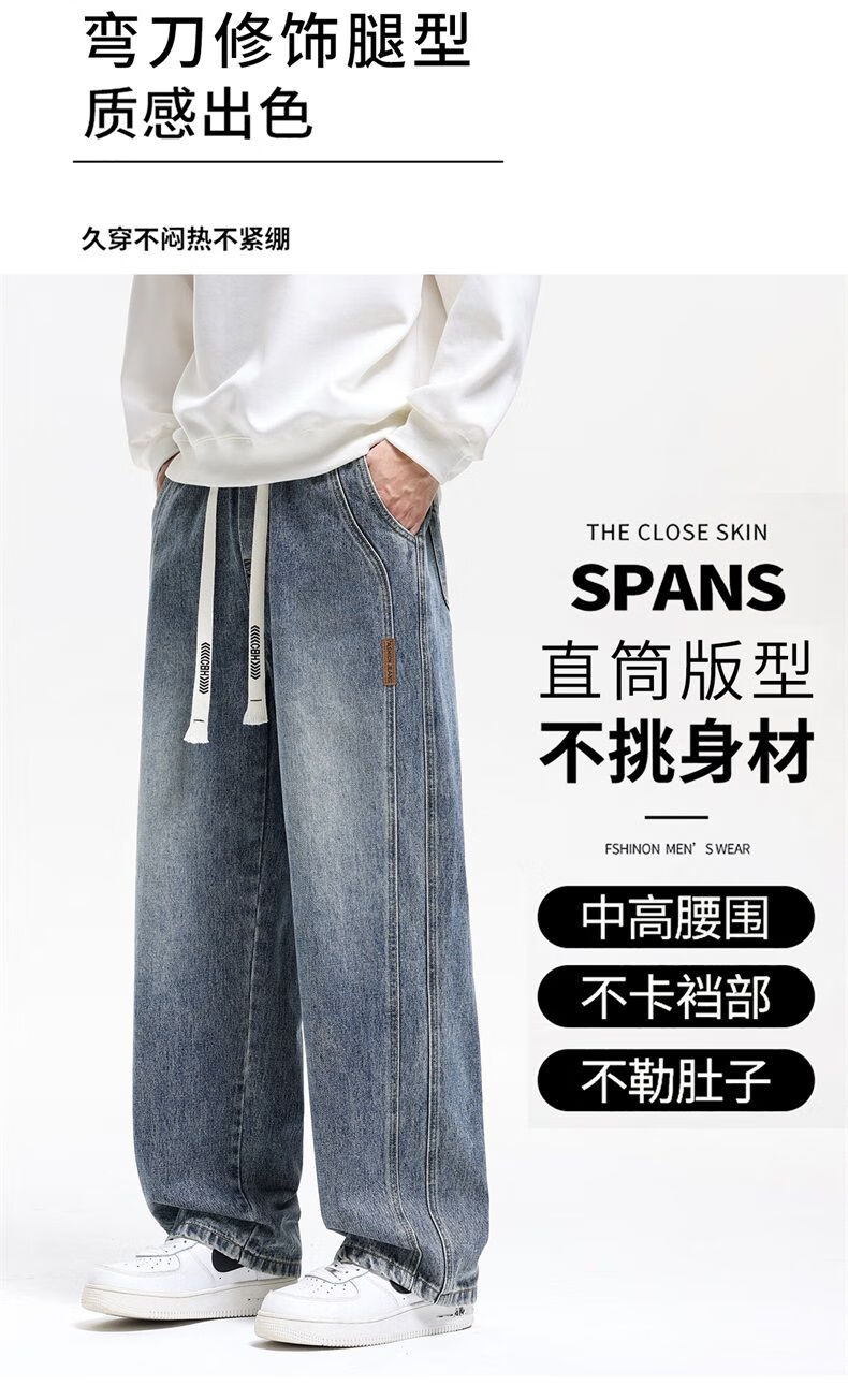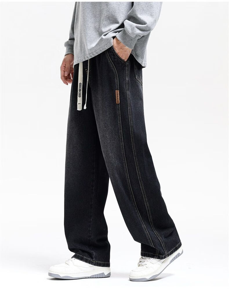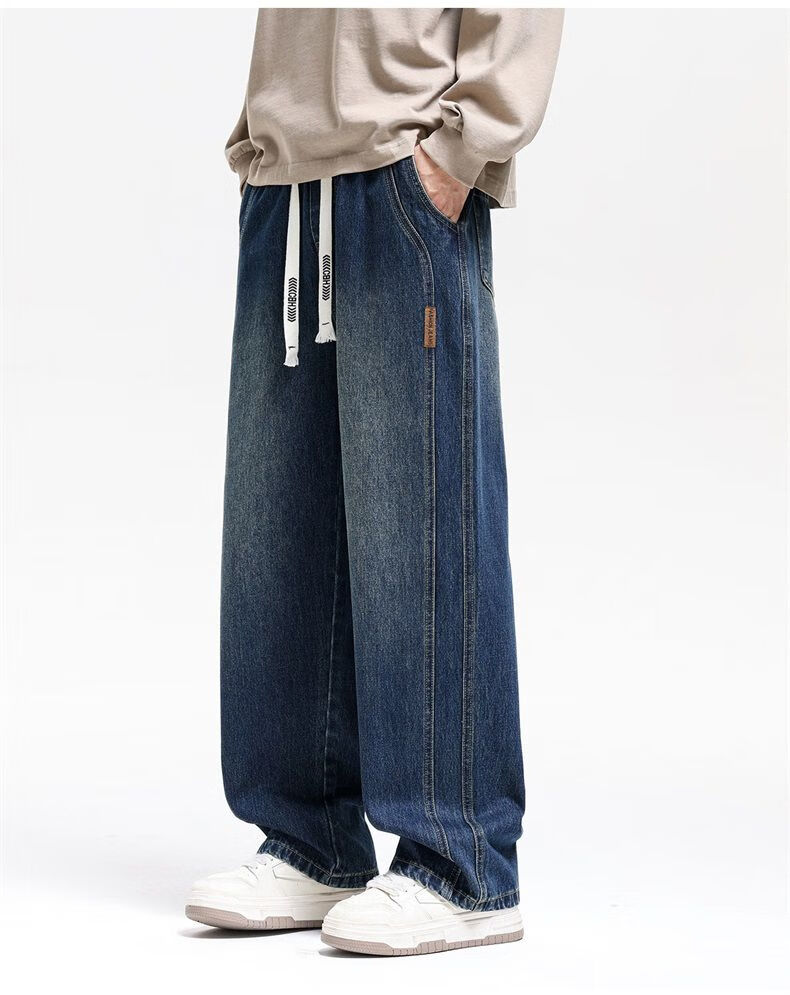 AEMAPE美国苹果高端牛仔裤男士2025新款水洗高街薄款复古宽松直筒阔腿裤 深怀旧 【春秋款】 2XL 建议160-180斤