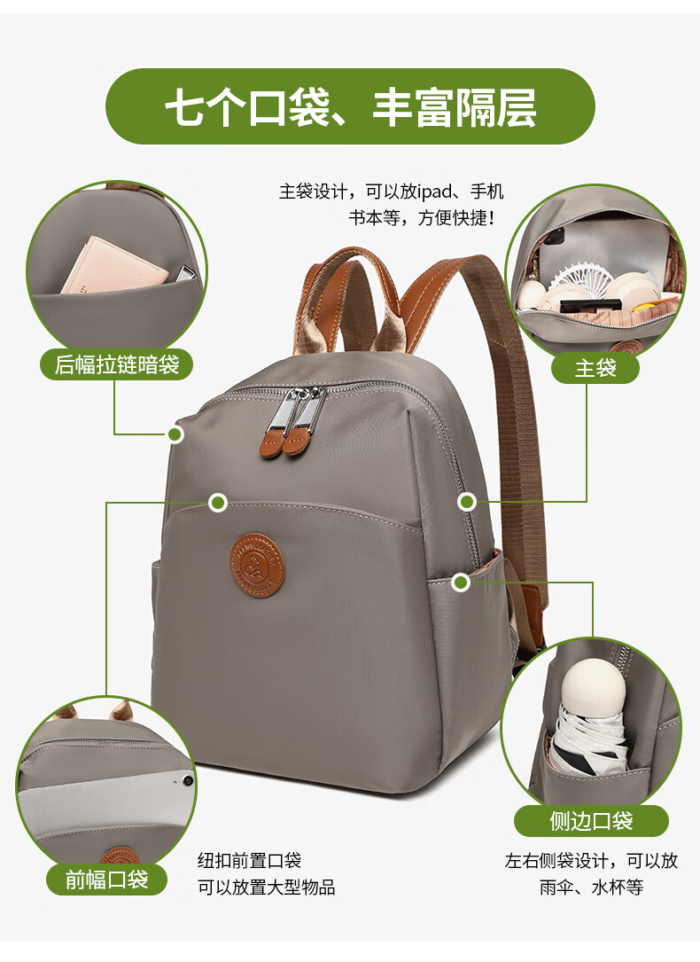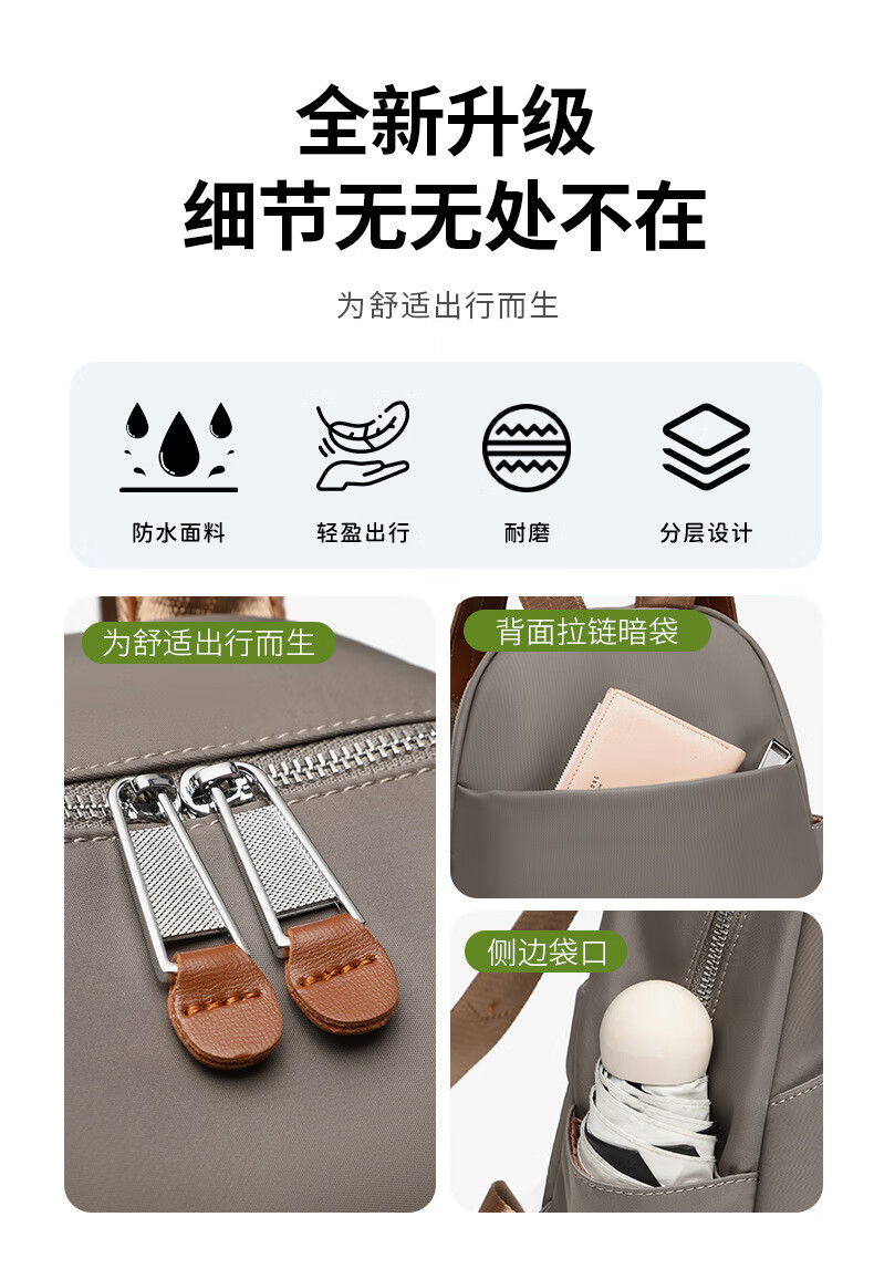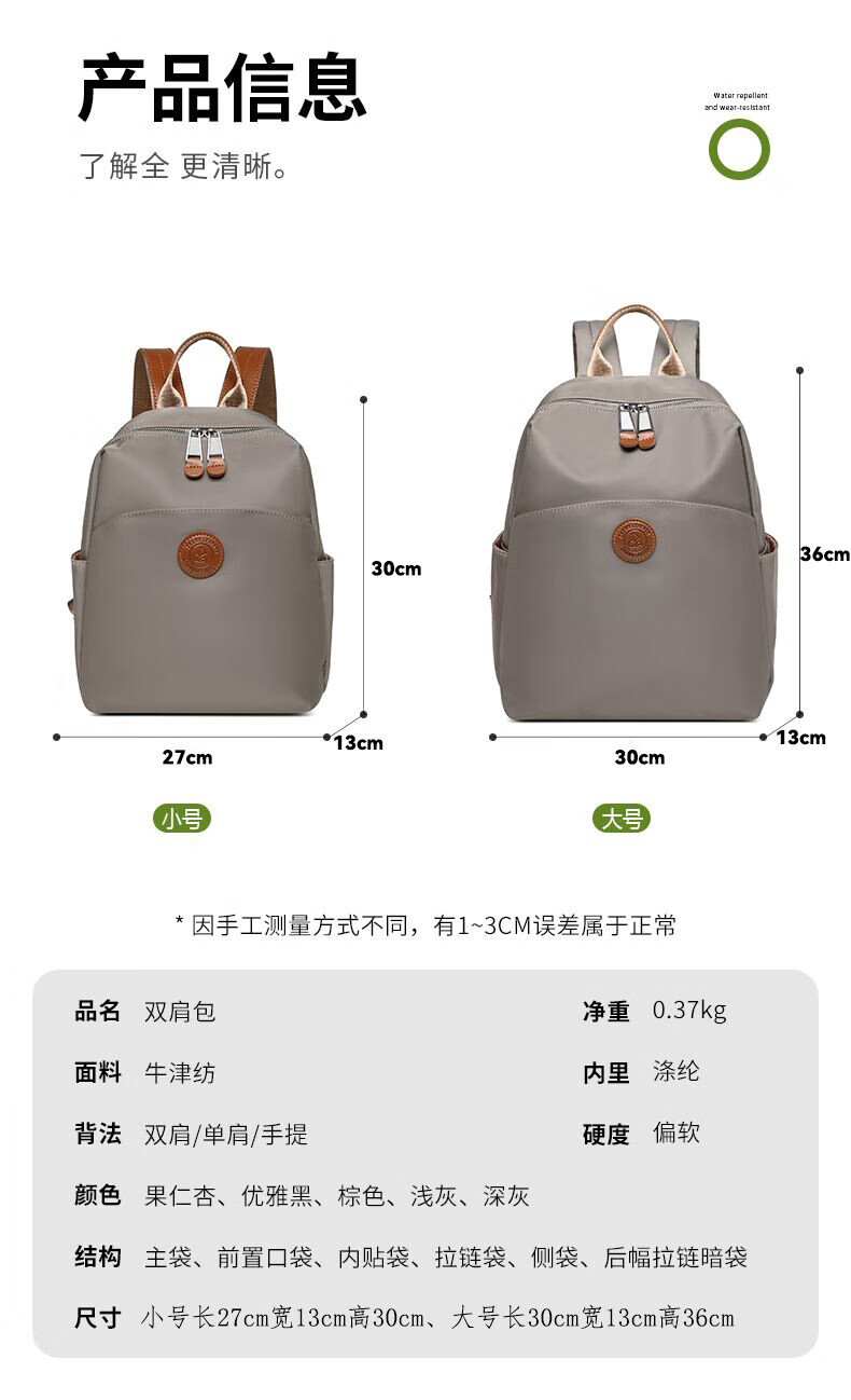 布布猴包包双肩包女2025新款防泼水牛津布背包轻便旅行夏季书包女包包 小号-黑色