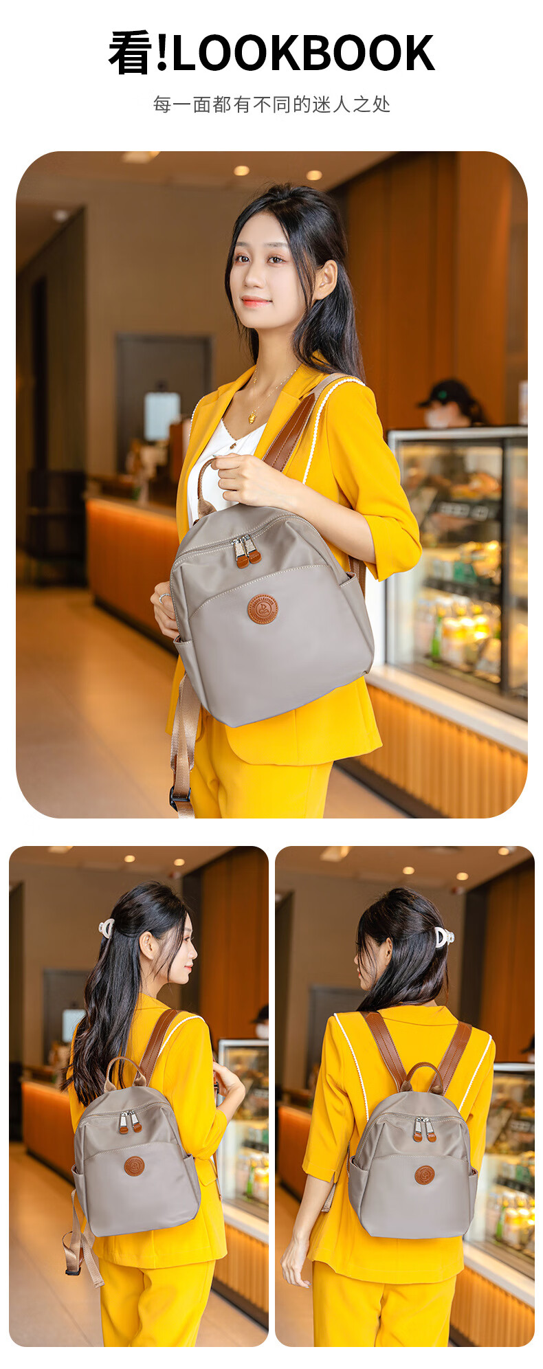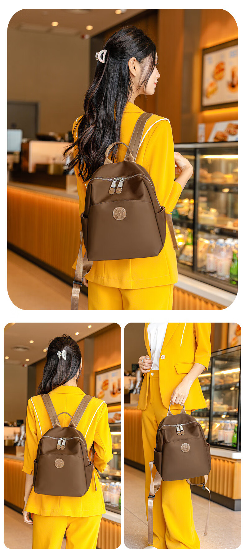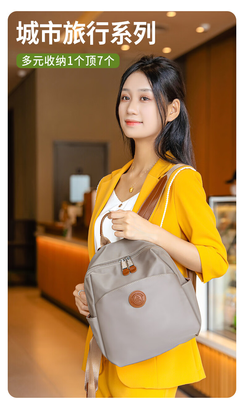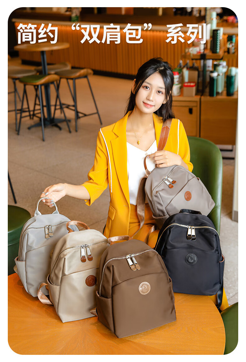 思牧(SIMU)女士多功能大容量双肩包2025新款轻便时尚休闲旅游包 蛋黄流沙