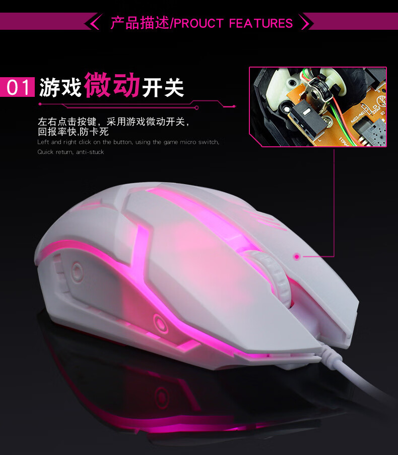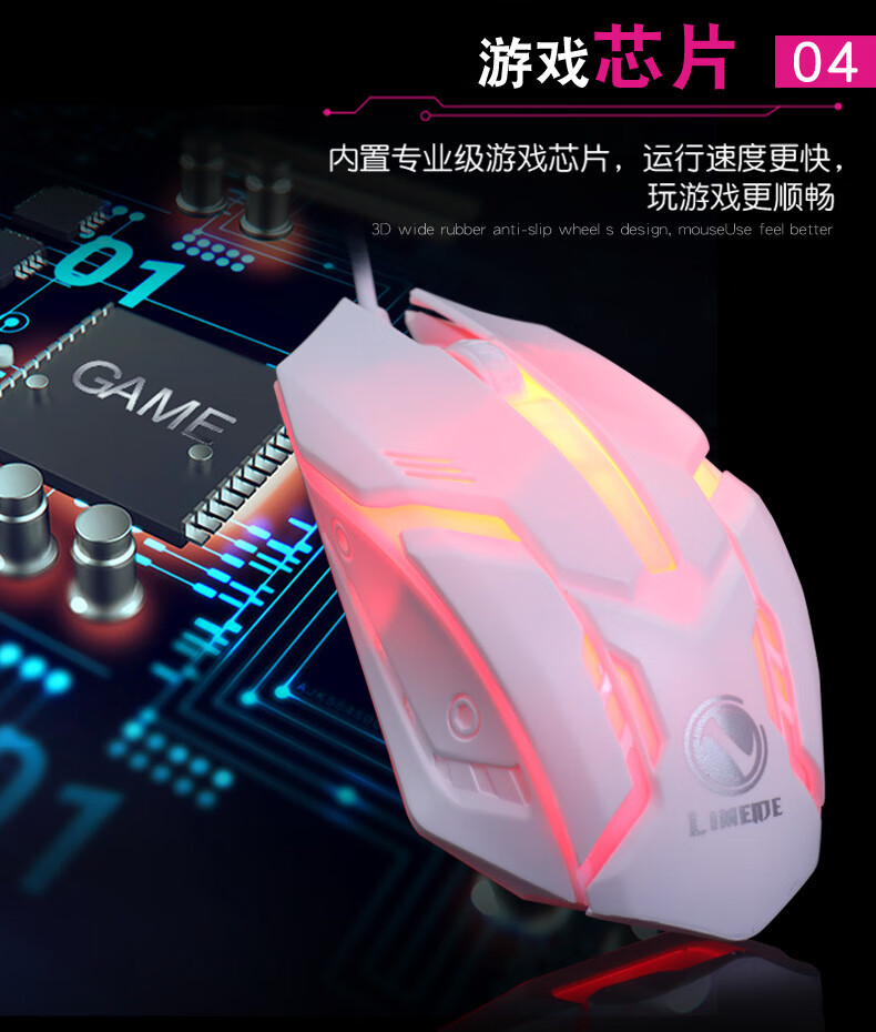 【厂家直供】发光USB办公游戏鼠标有线鼠标游戏鼠标 黑色