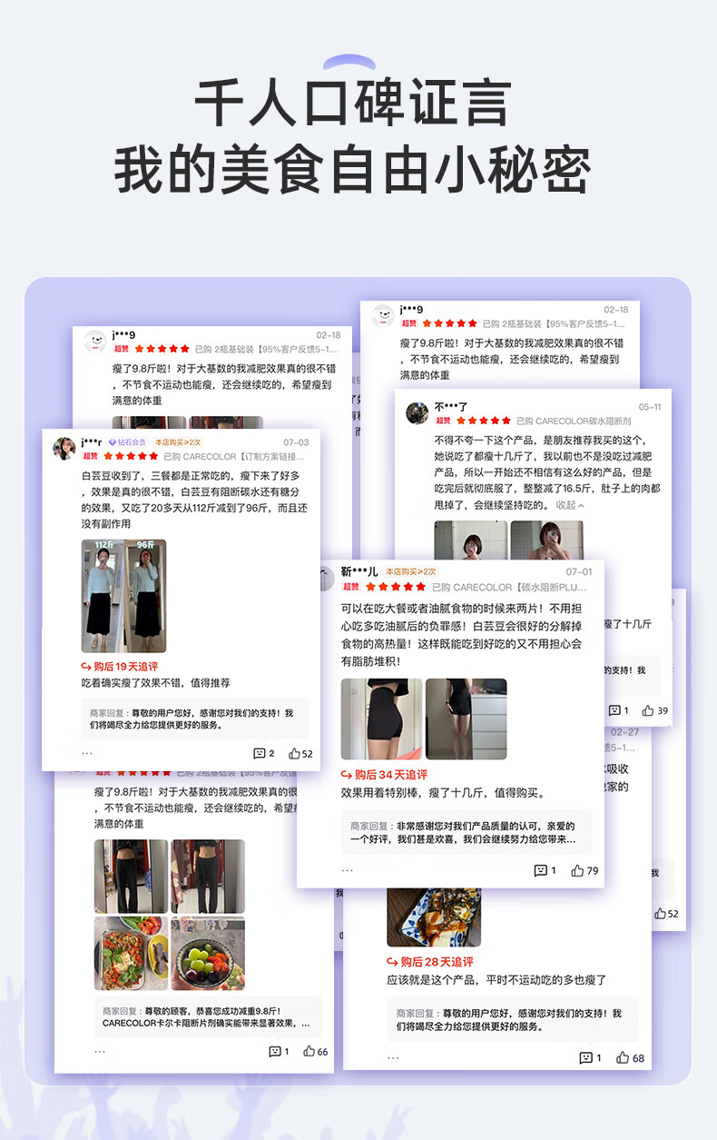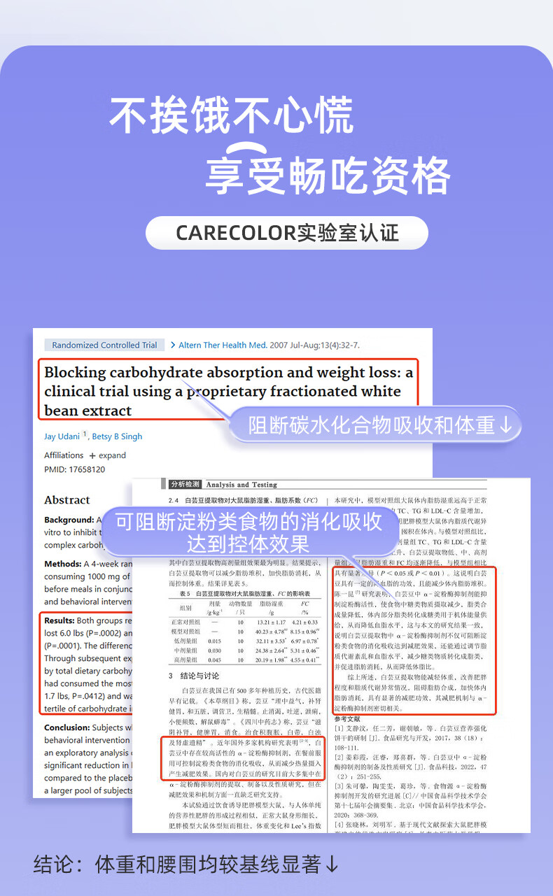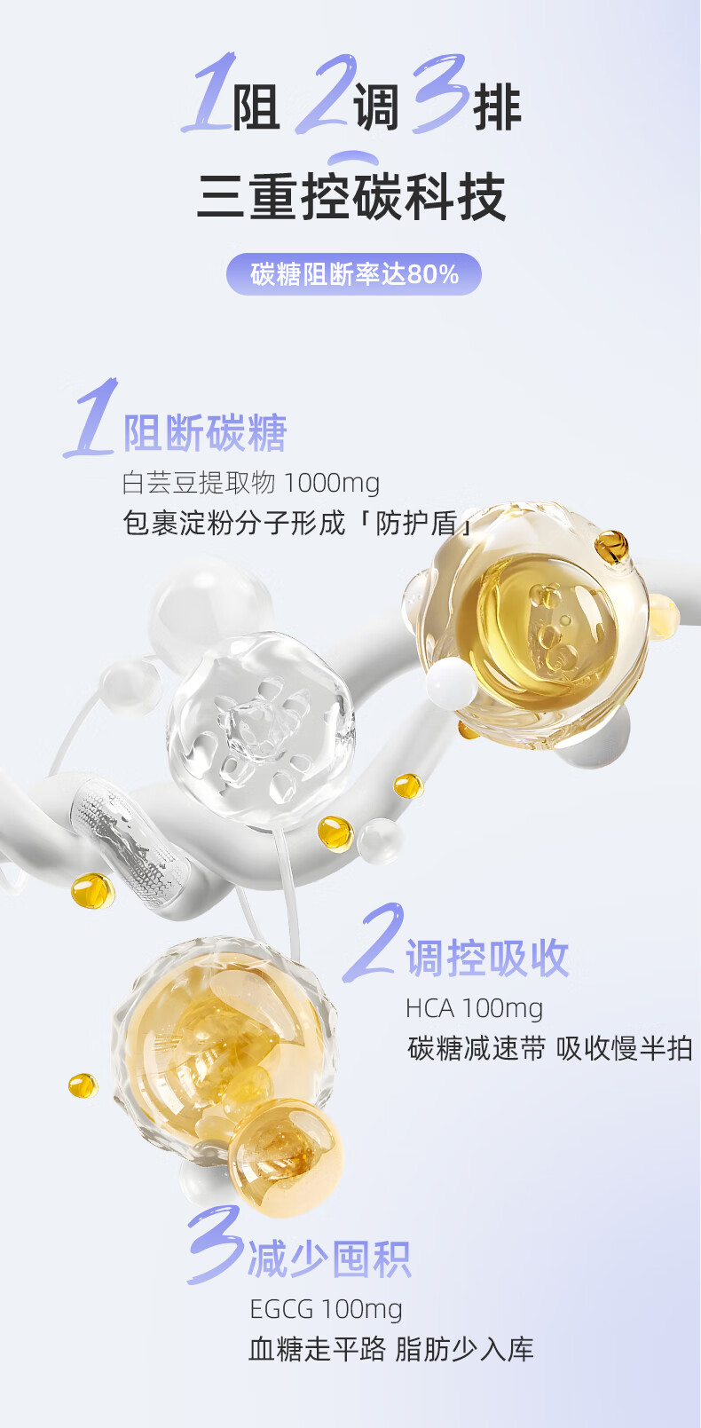 CARECOLOR卡尔卡阻断剂阻断碳水减肥瘦肚子燃脂减脂瘦身搭白芸豆男女通用C3 6瓶装 阻断剂PLUS【1次2粒自在嗨吃不惧长胖】