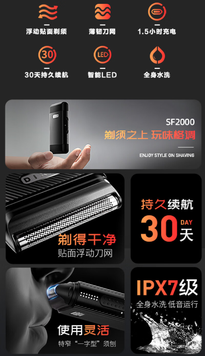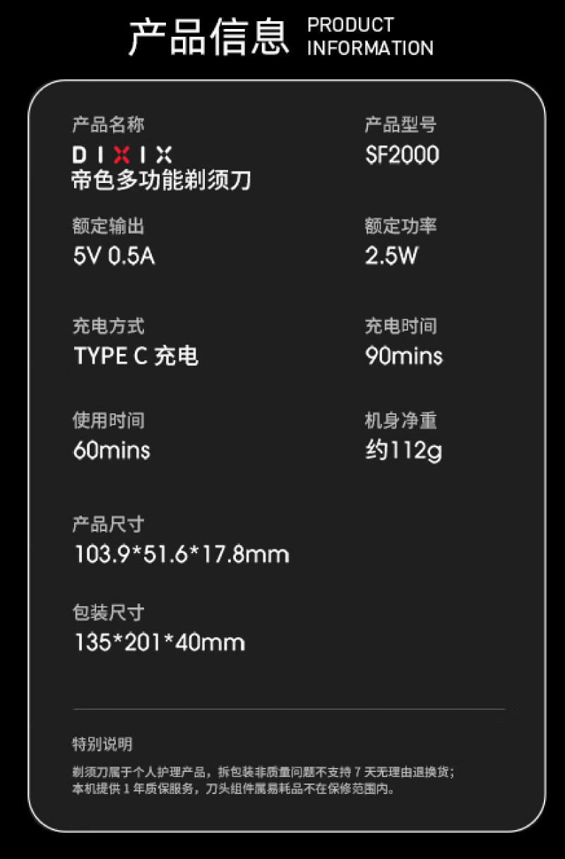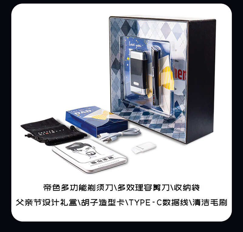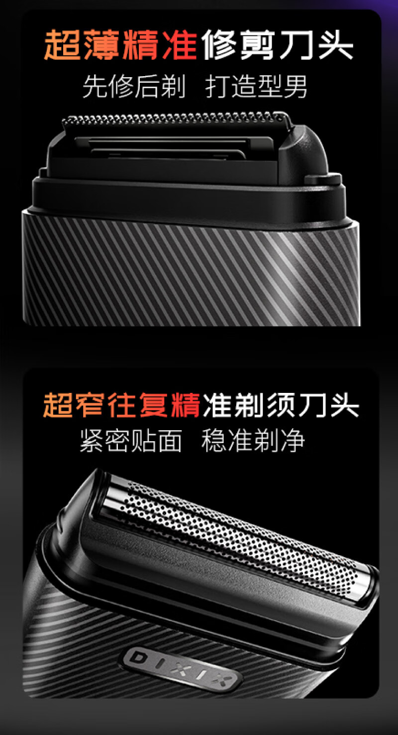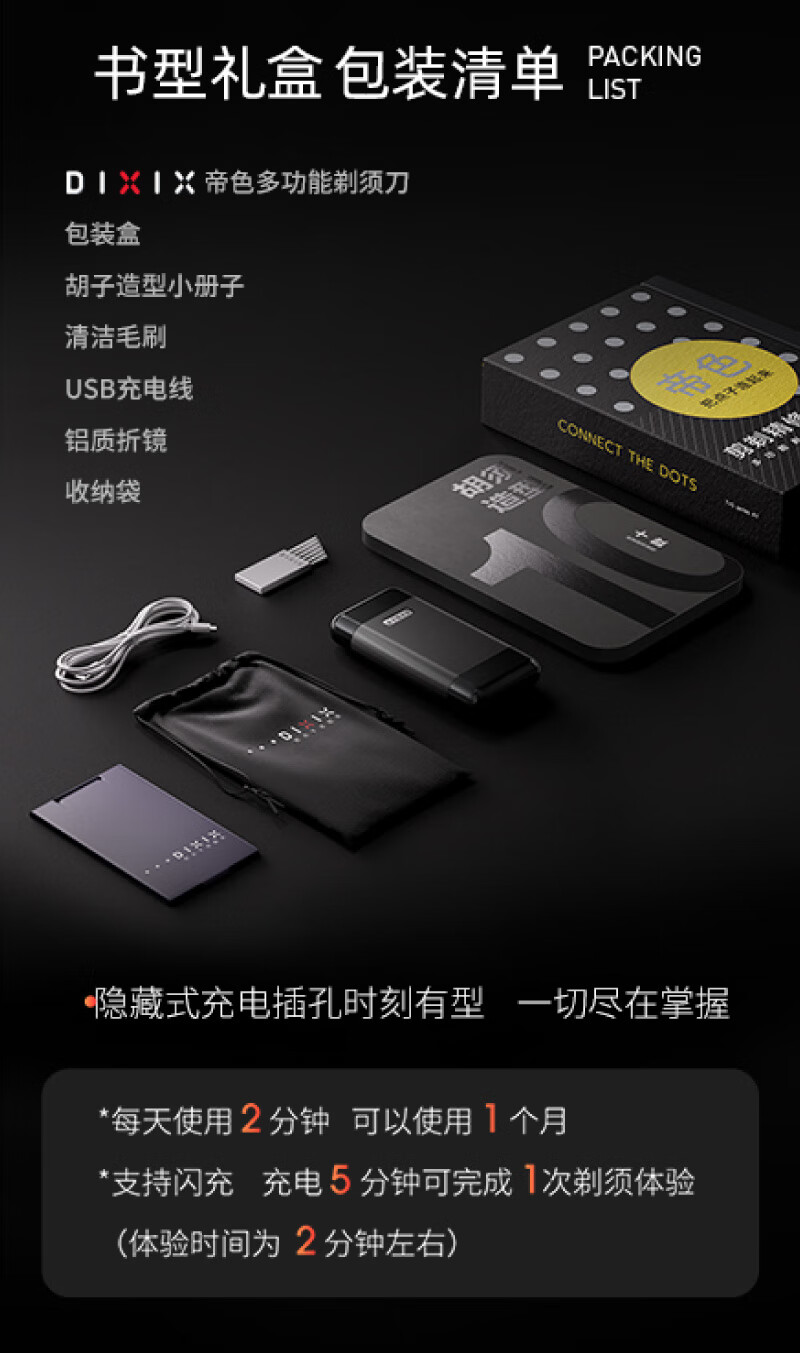 DIXIX帝色便携多功能双刀头剃须刀 可拉花鬓角胡须造型 全身水洗 60分钟长续航 差旅出行必备神器 书型礼盒磨砂金属灰TS-A10