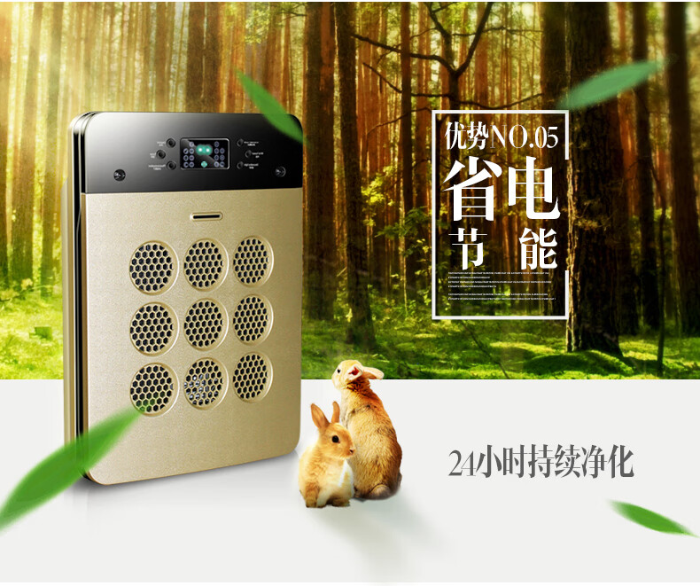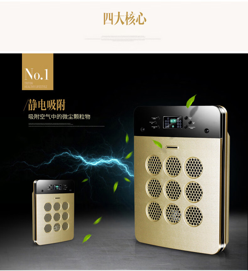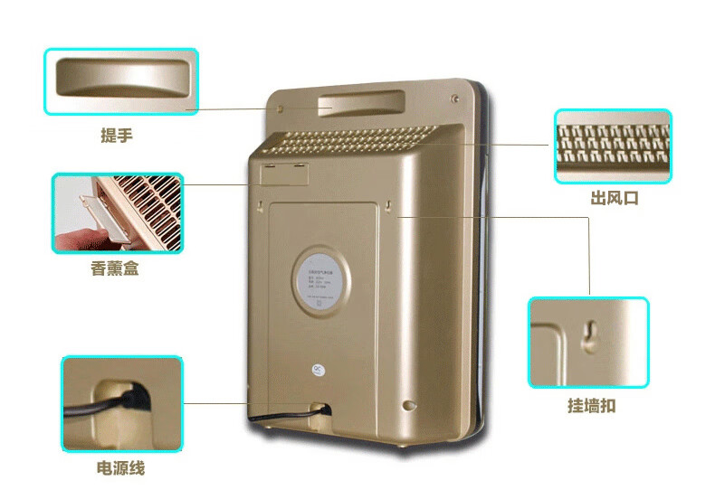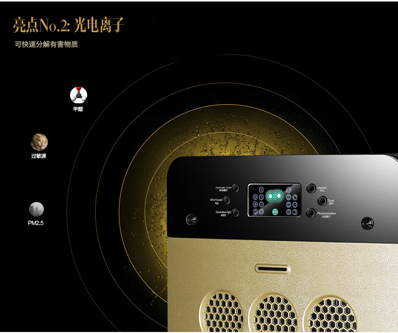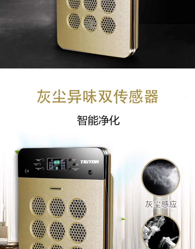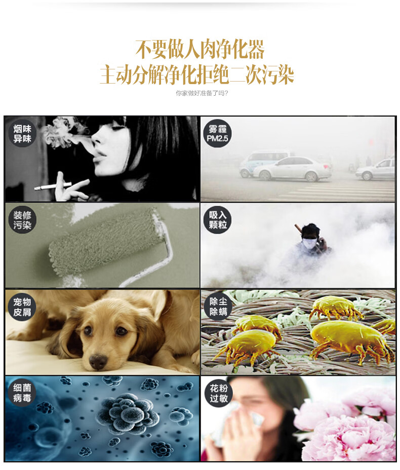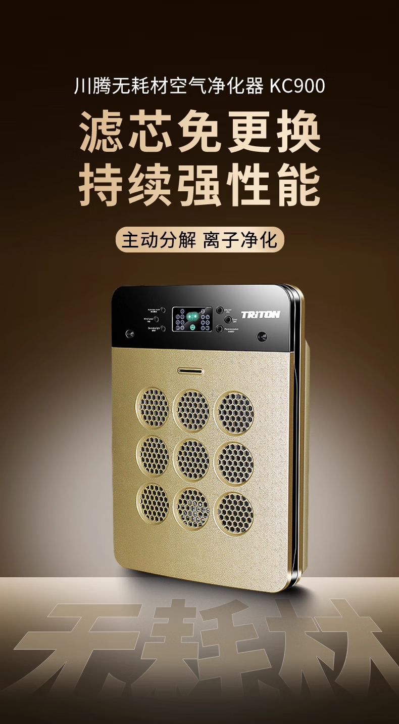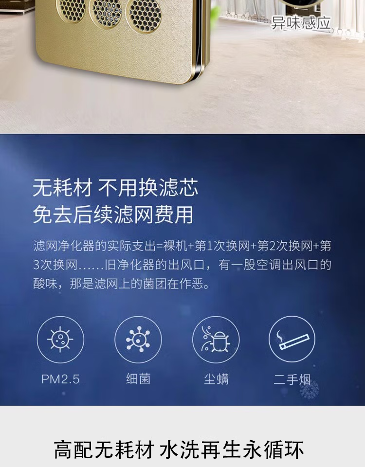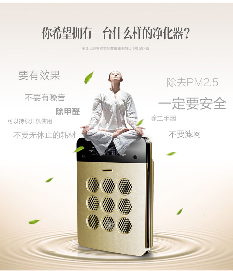 川腾无耗材空气净化器家用除PM2.5二手烟室内紫外线杀菌智能负离子可水洗可吸猫毛还可壁挂带香薰功能 香槟金