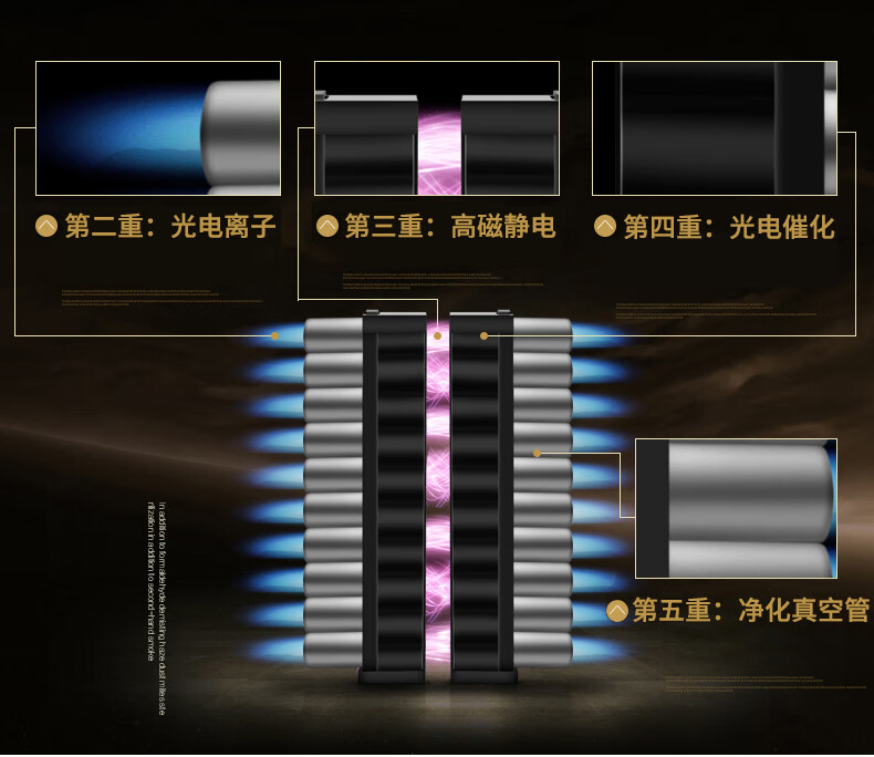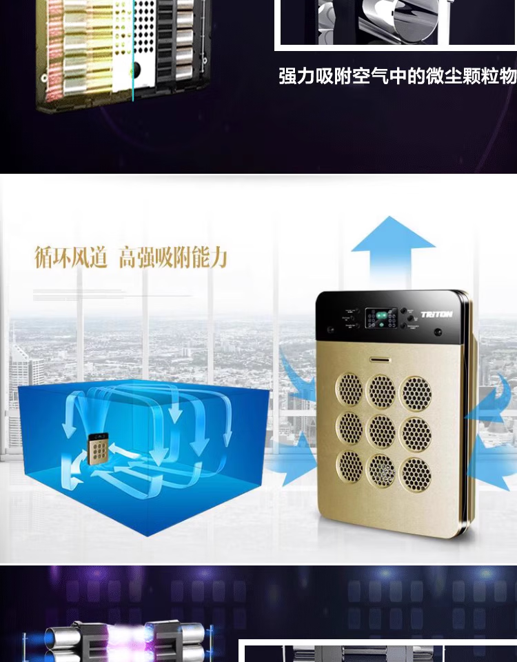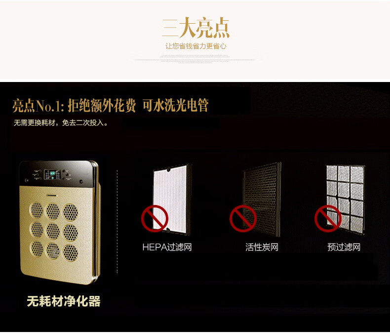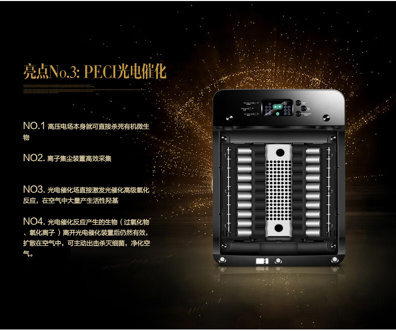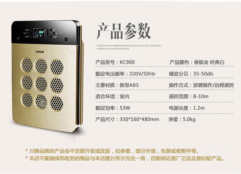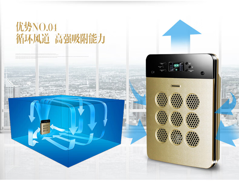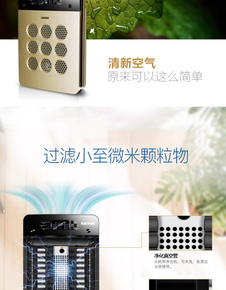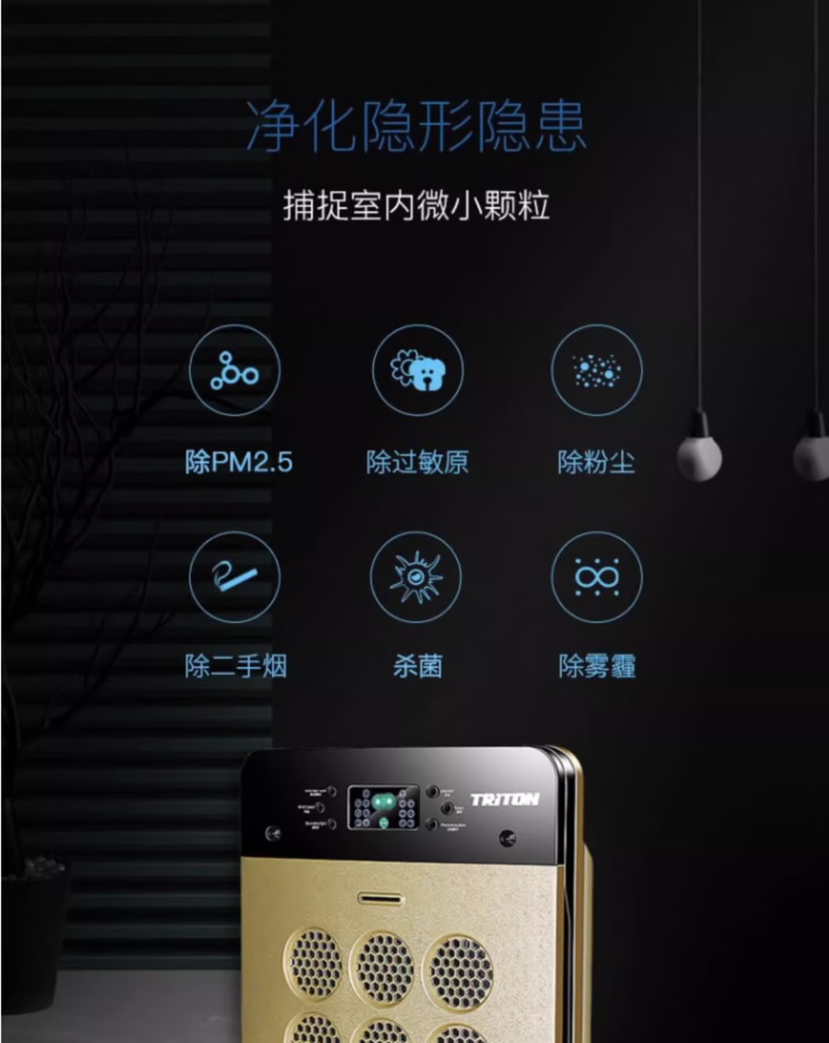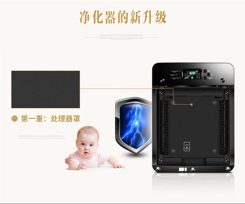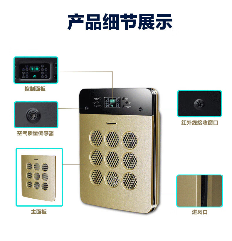 川腾无耗材空气净化器家用除PM2.5二手烟室内紫外线杀菌智能负离子可水洗可吸猫毛还可壁挂带香薰功能 香槟金