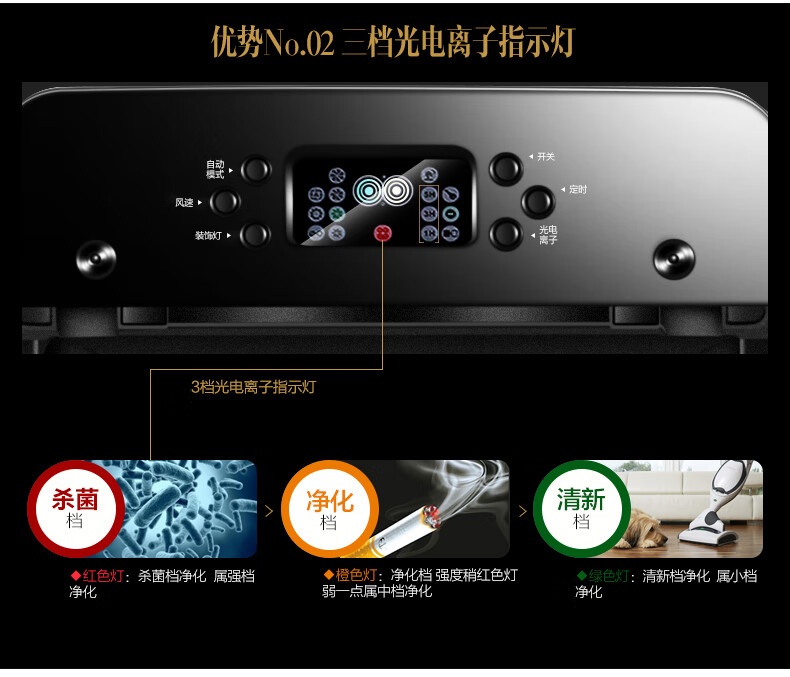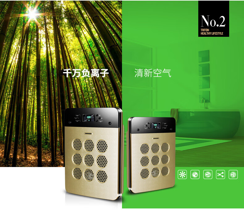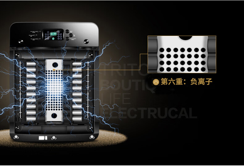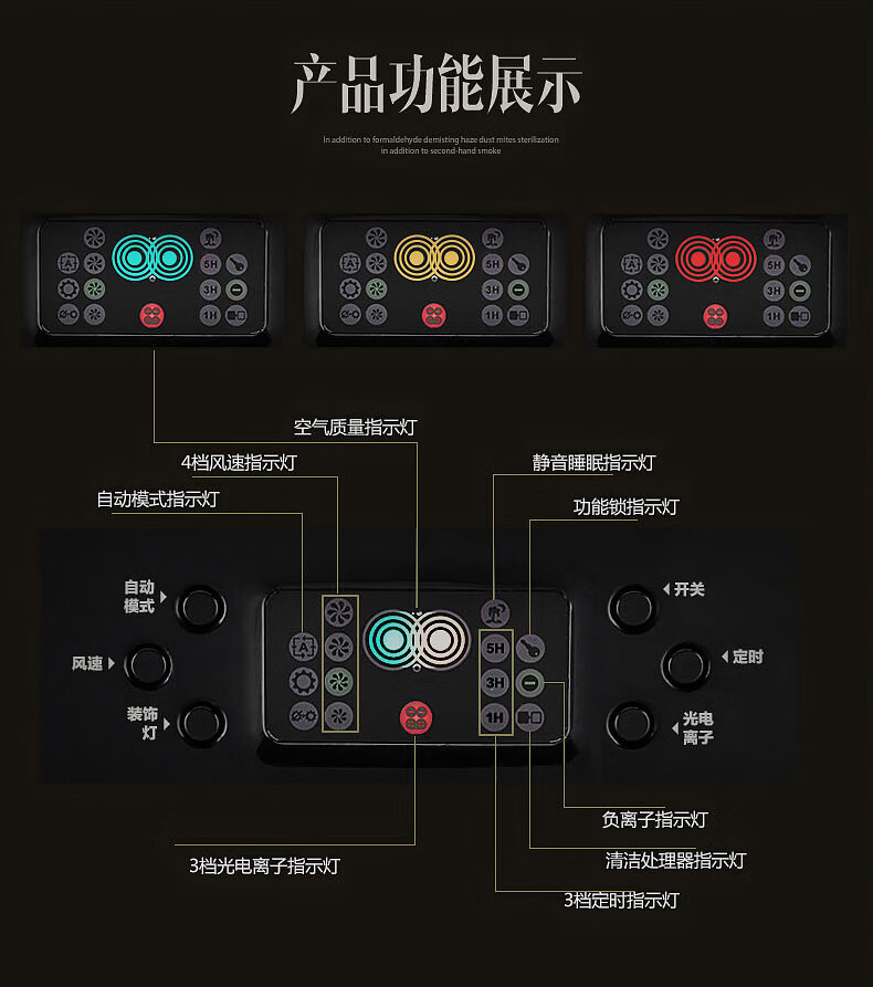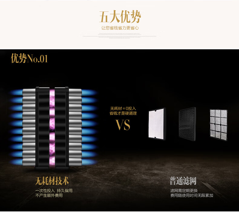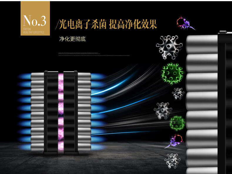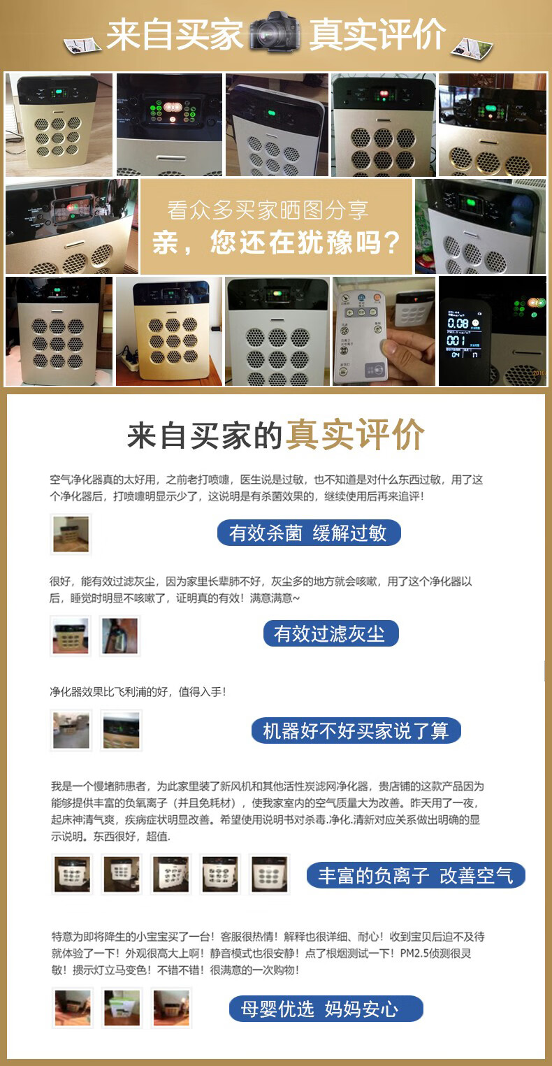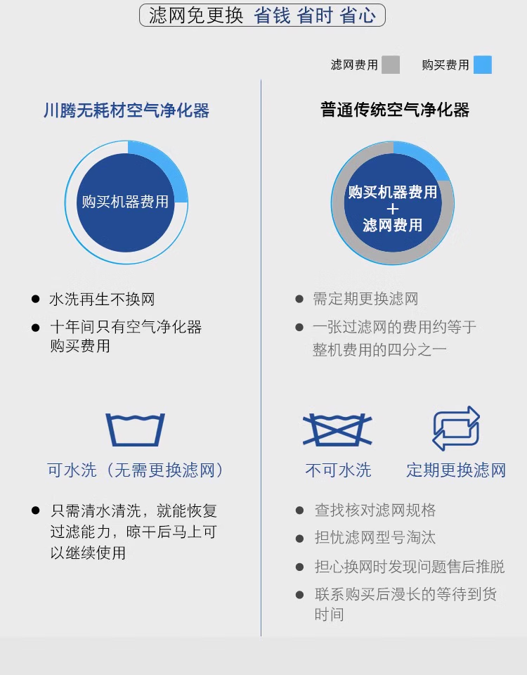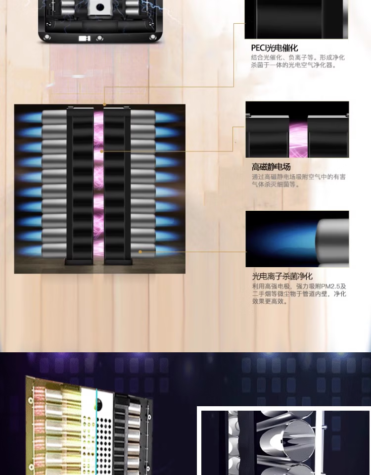 川腾无耗材空气净化器家用除PM2.5二手烟室内紫外线杀菌智能负离子可水洗可吸猫毛还可壁挂带香薰功能 香槟金