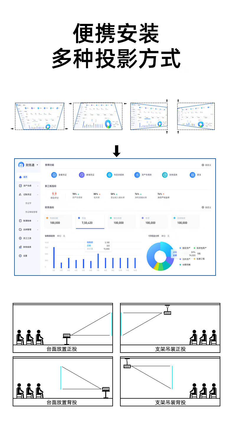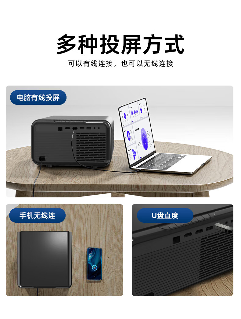 aet新款V417投影仪办公高清会议室专用投影机白天直投可连电脑教学培训投影带幕布 V417办公顶配版(支架幕布+托盘支架)