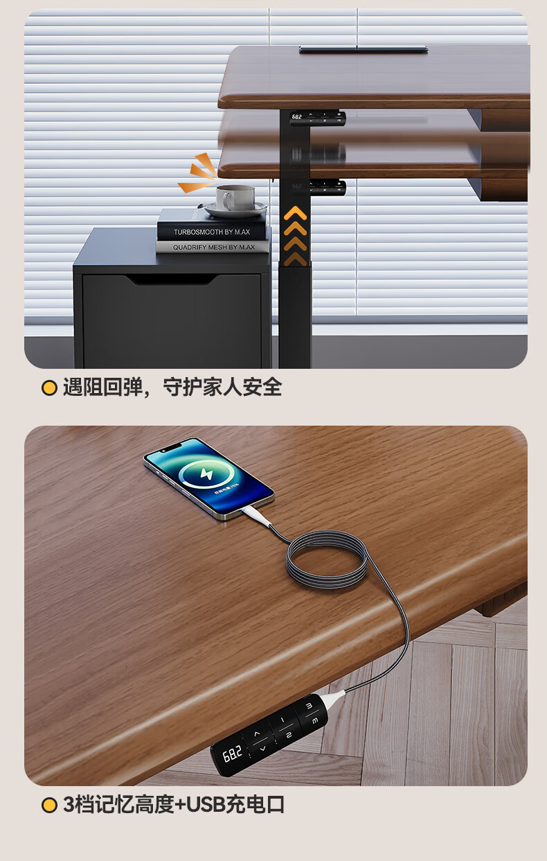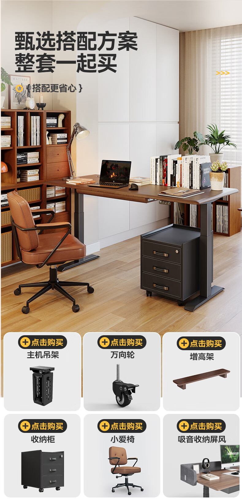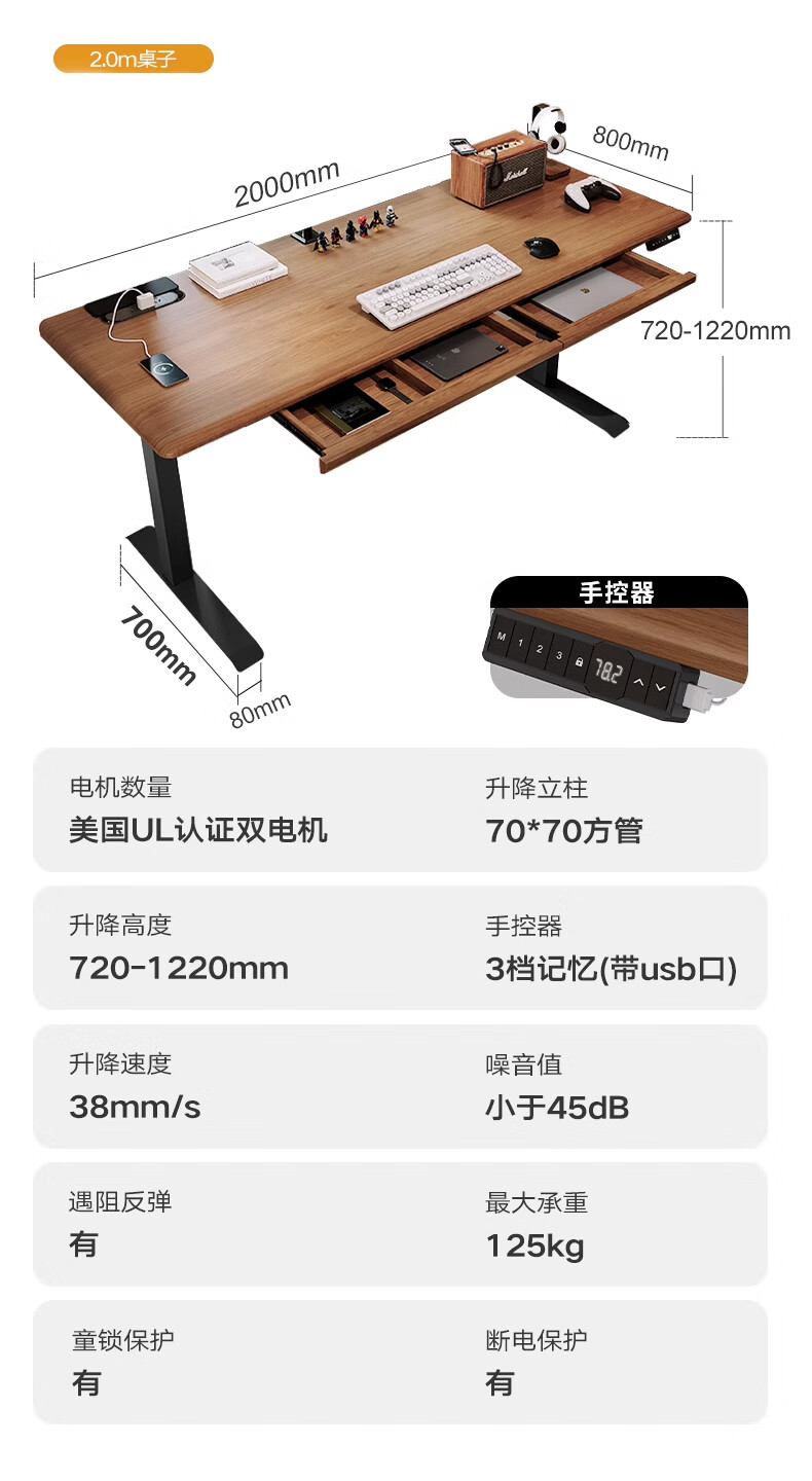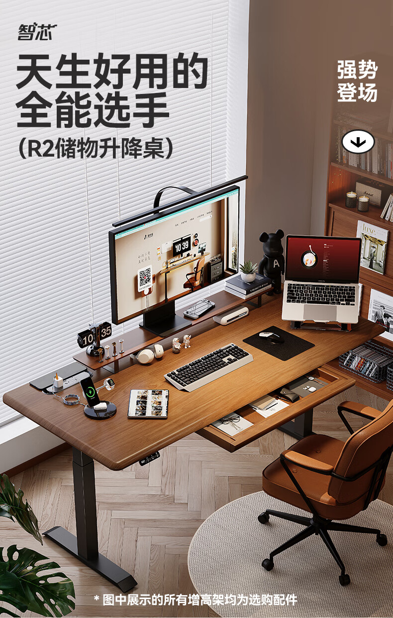 智芯沐风电动升降桌腿家用工作台电脑办公桌电竞桌智能实木书桌 AR2双电机【实木桌面+抽屉排插】 1.2米 送货入户整桌送安装