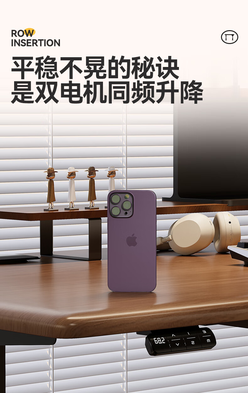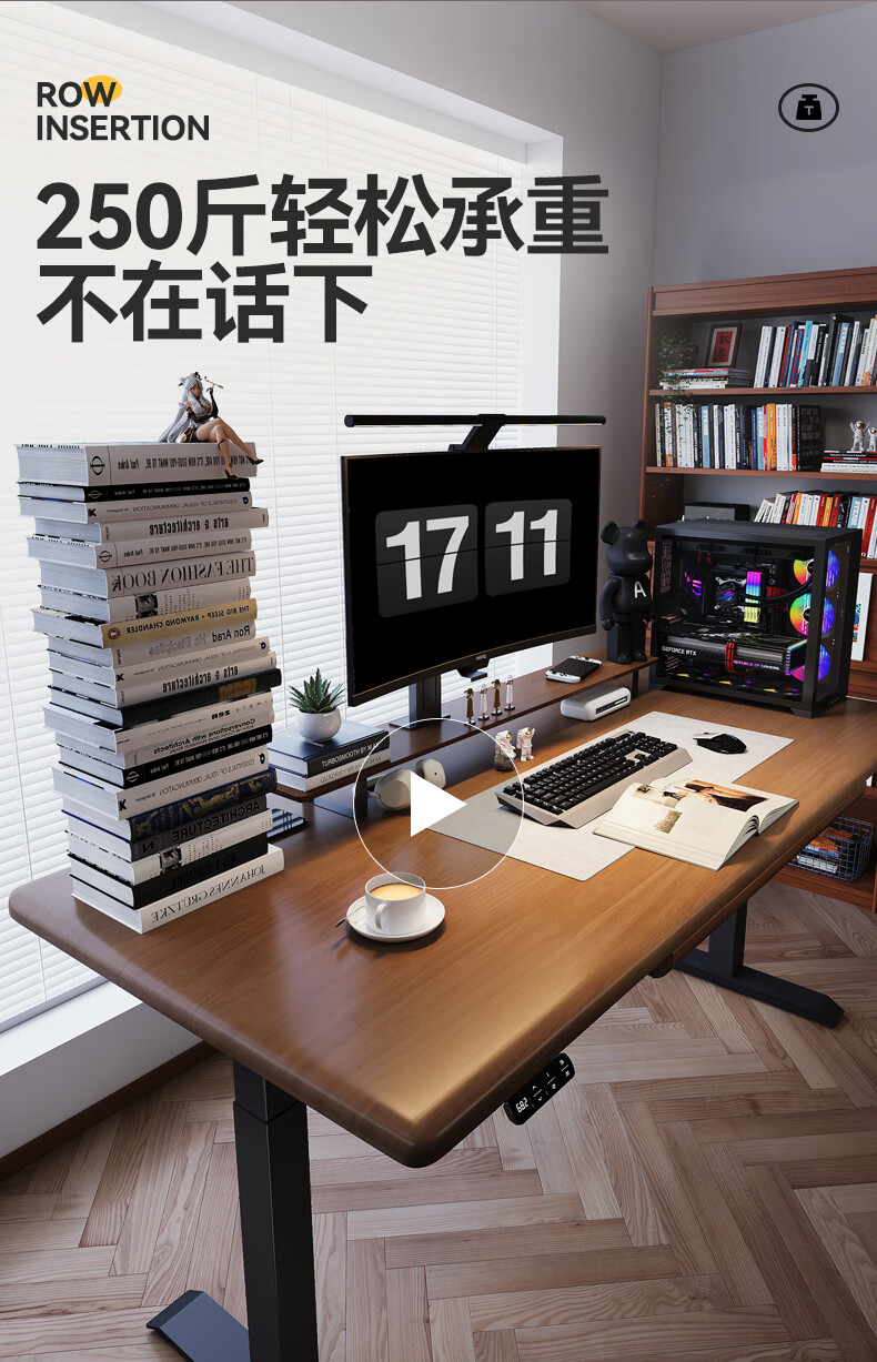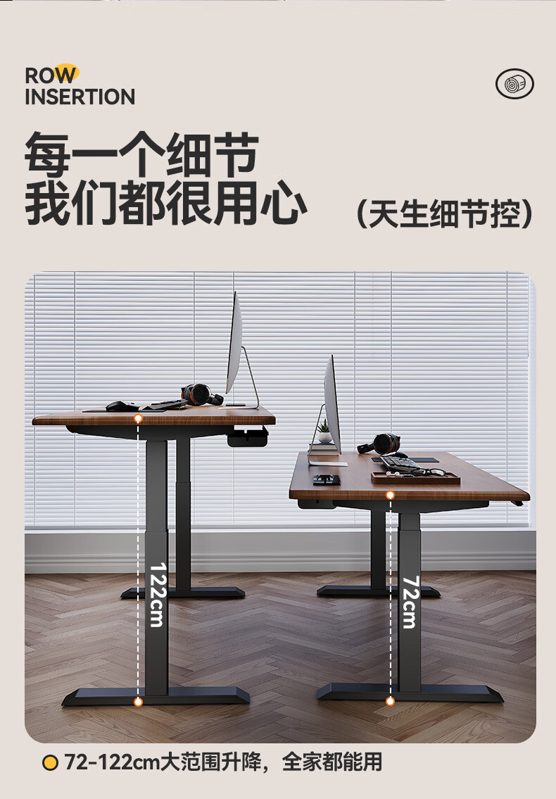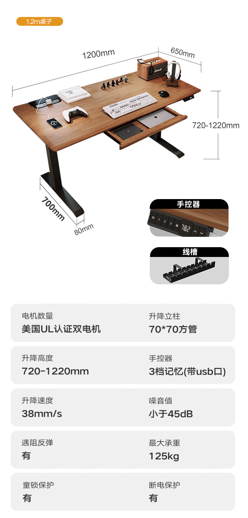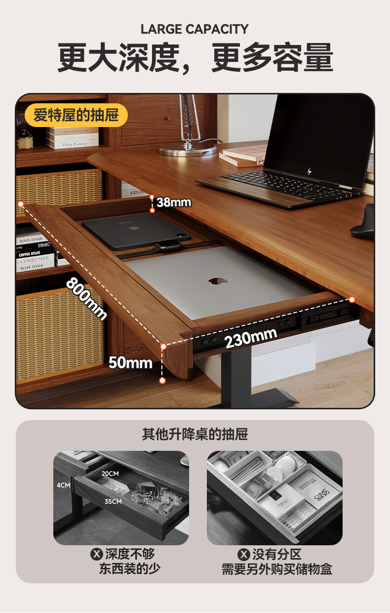 智芯沐风电动升降桌腿家用工作台电脑办公桌电竞桌智能实木书桌 AR2双电机【实木桌面+抽屉排插】 1.2米 送货入户整桌送安装