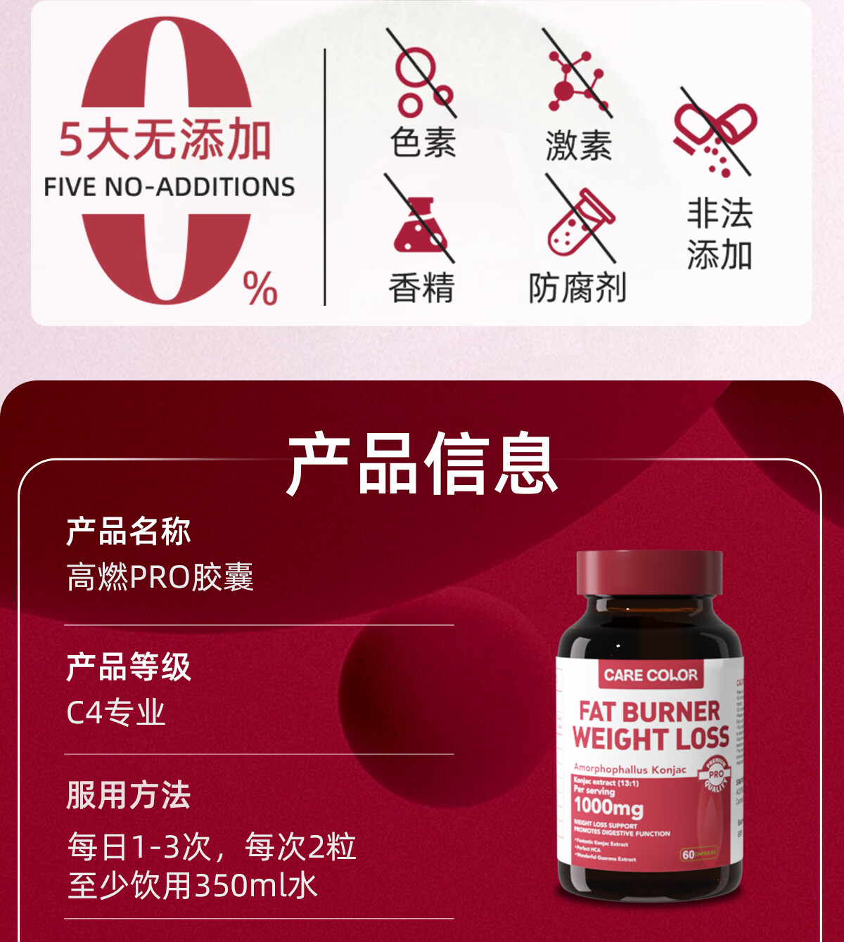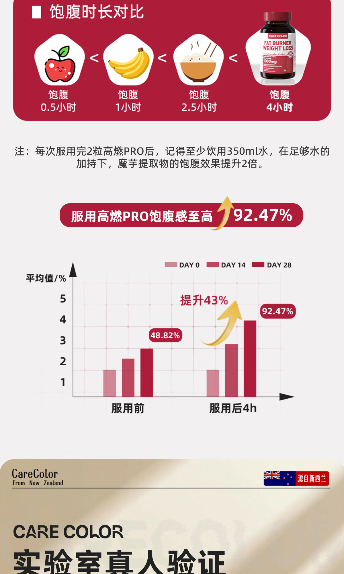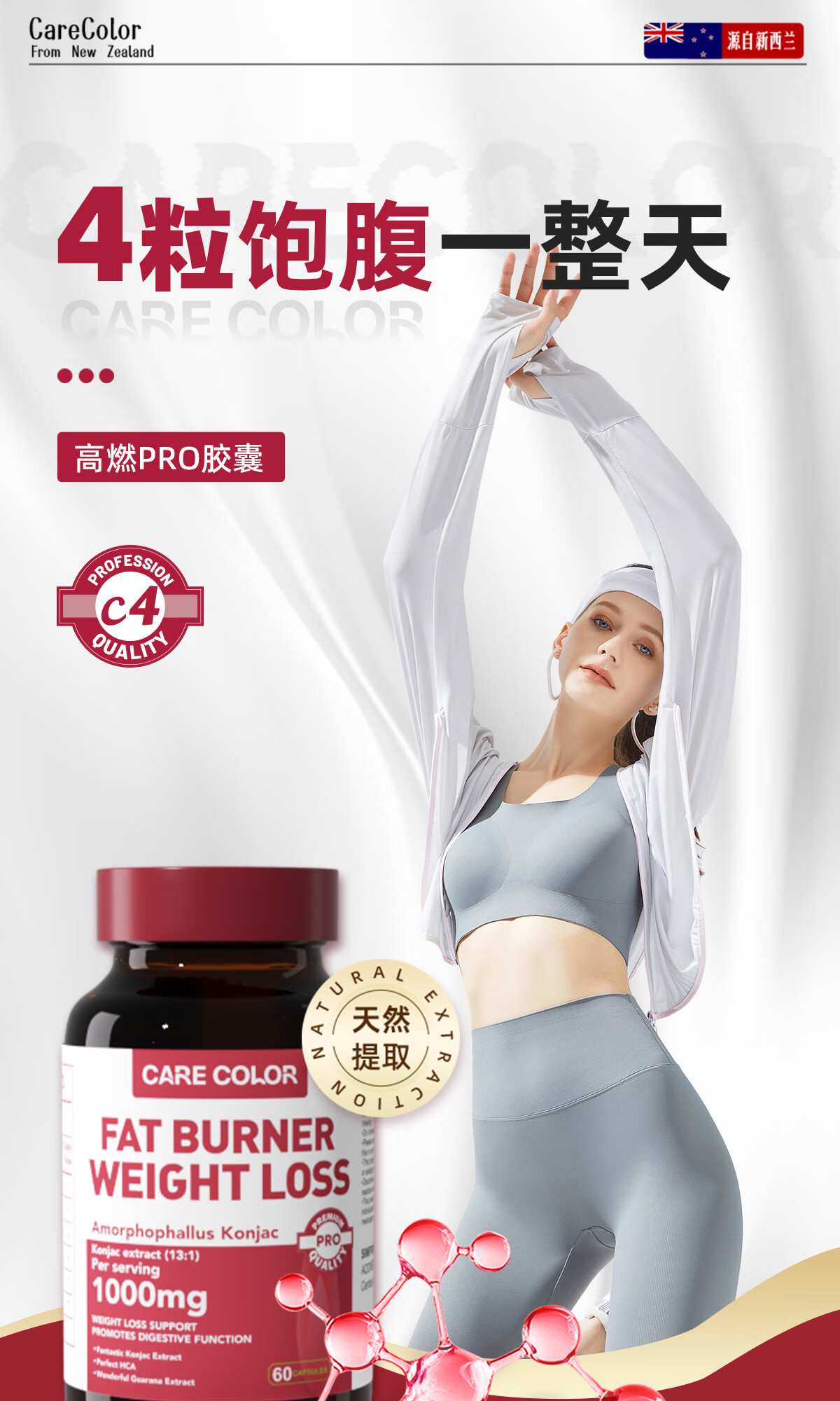 CARECOLOR卡尔卡2代高燃胶囊PRO饱腹感抑制食欲控制减肥瘦肚子提代谢减肥 C4丨PRO(2代)巩固装 3瓶