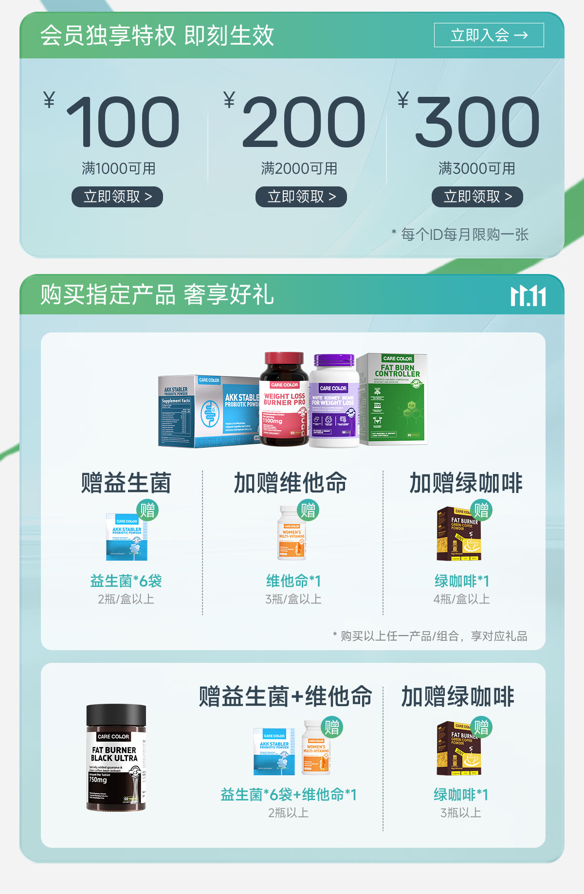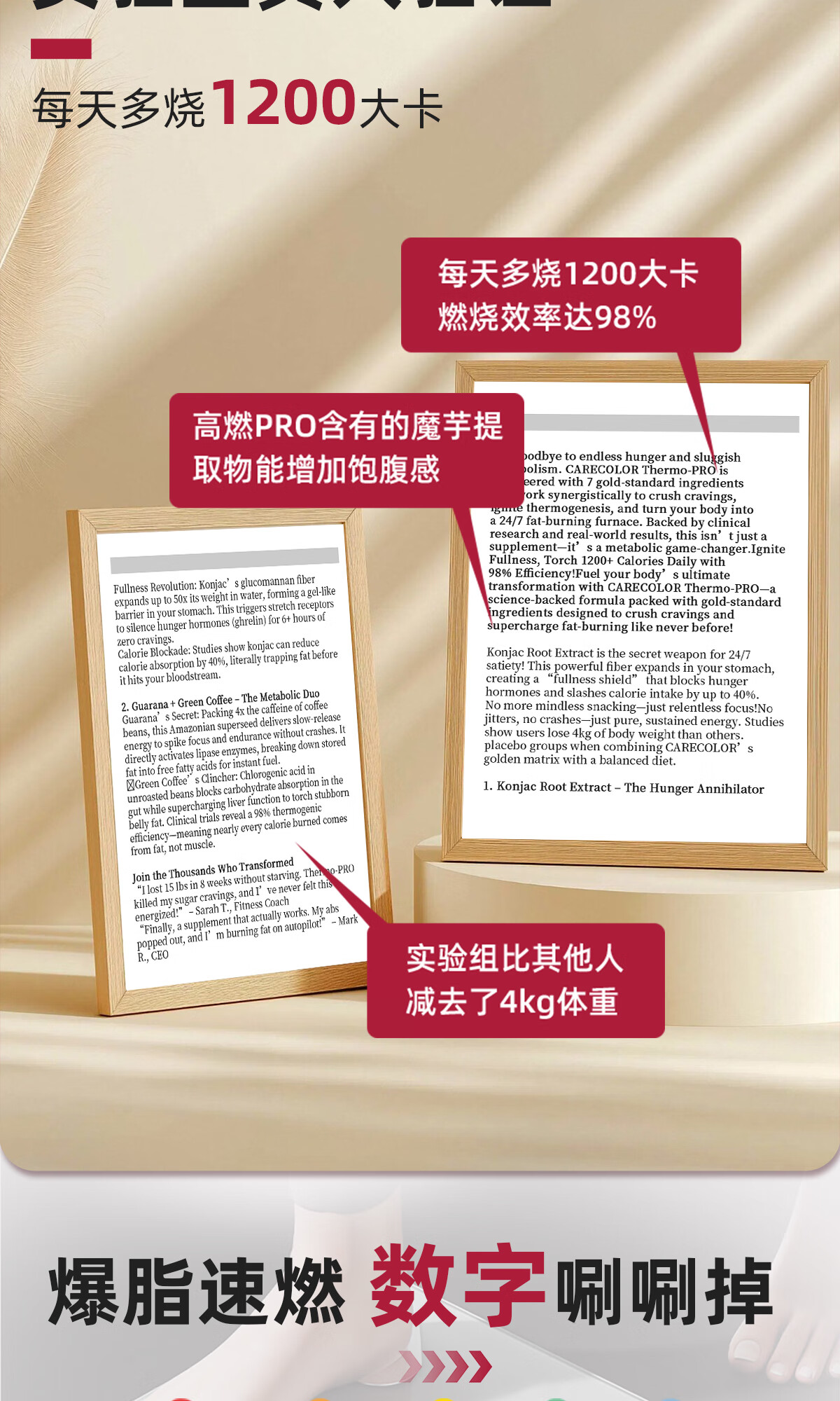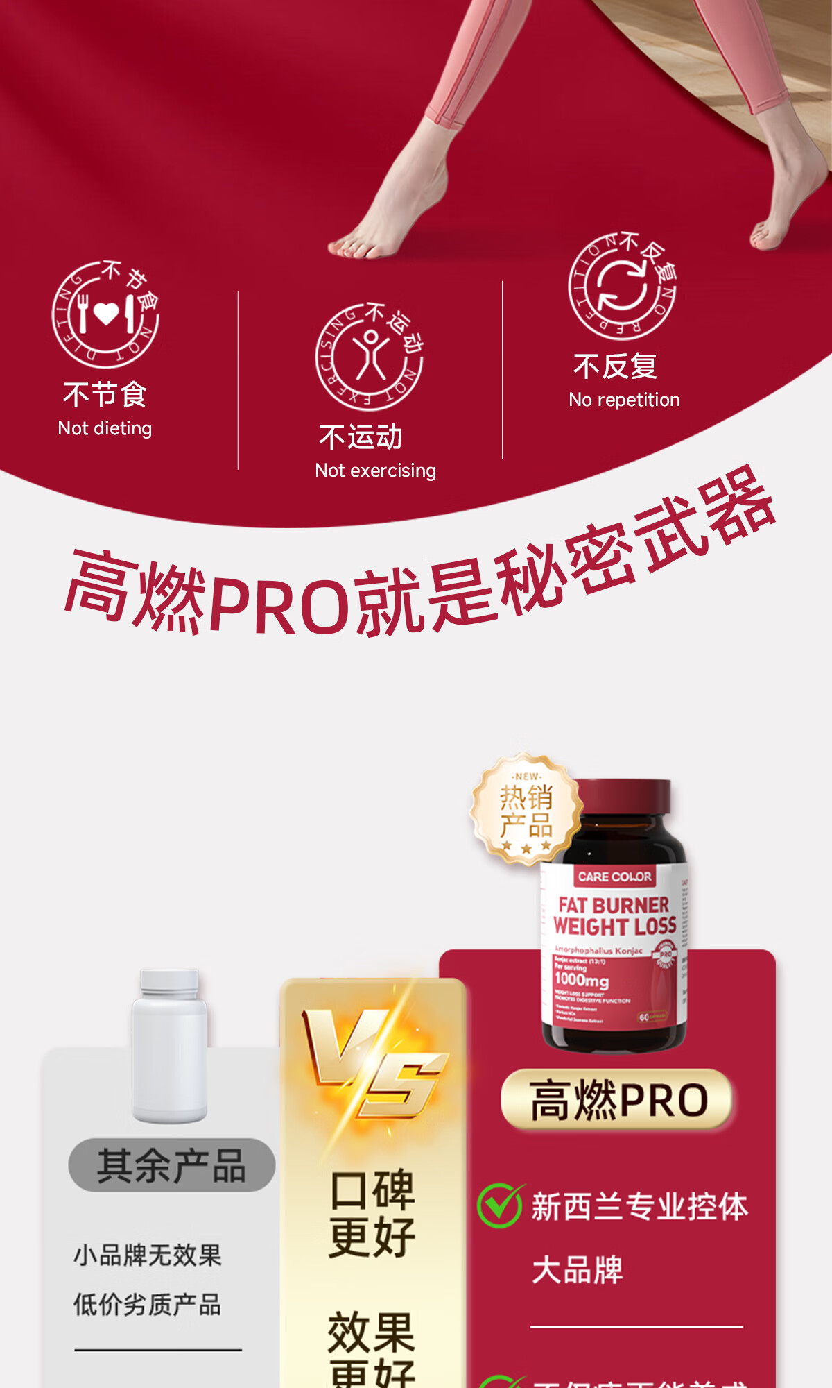 CARECOLOR卡尔卡2代高燃胶囊PRO饱腹感抑制食欲控制减肥瘦肚子提代谢减肥 C4丨PRO(2代)巩固装 3瓶