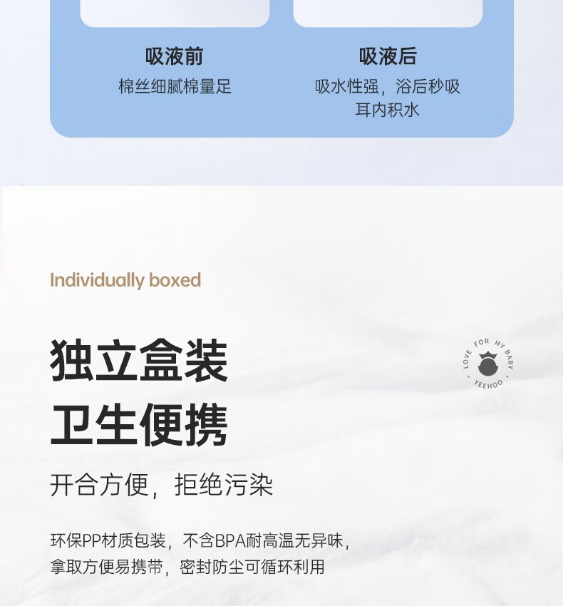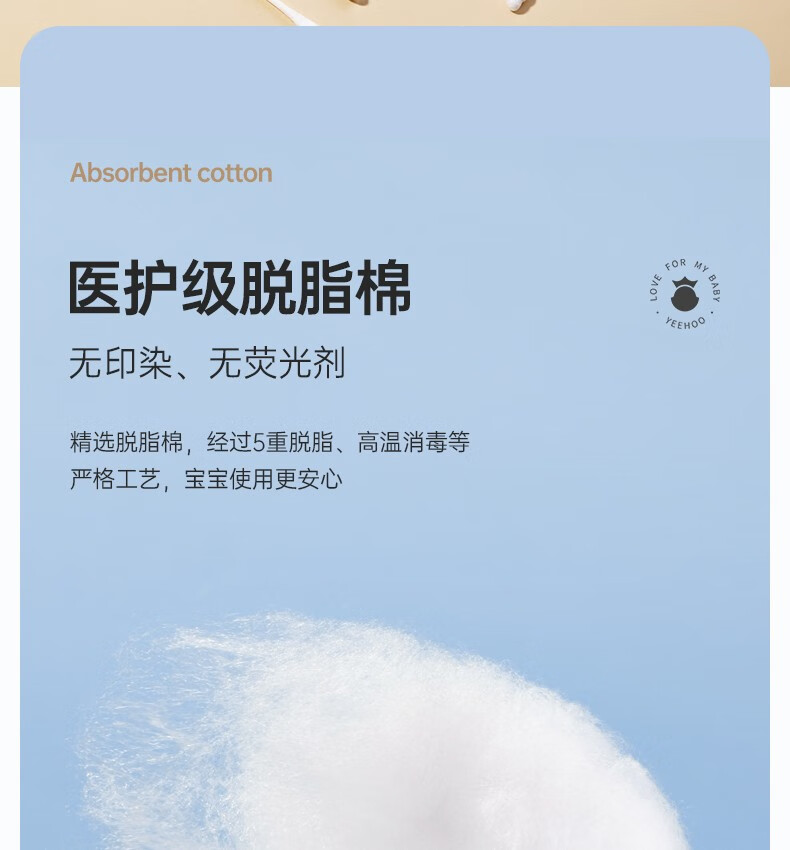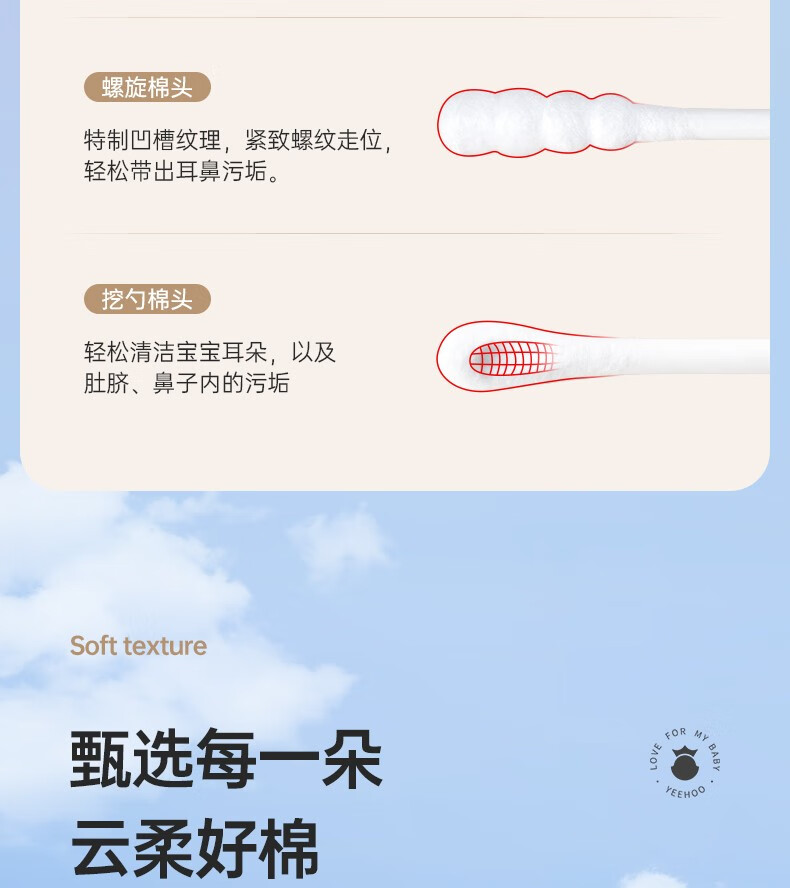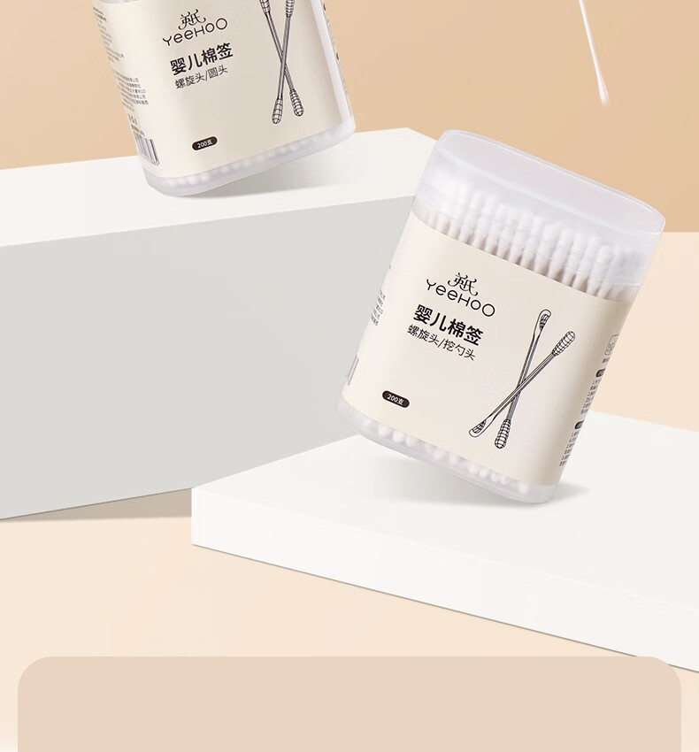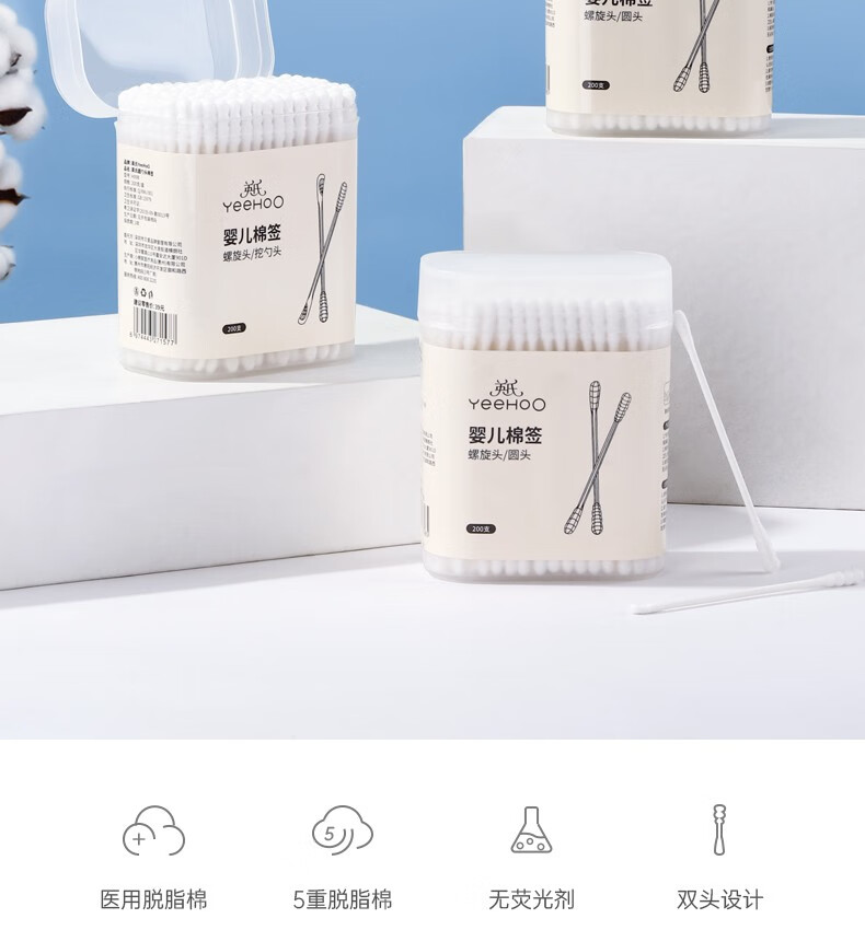 英氏(YEEHOO)新生婴儿棉签棉棒螺旋双头宝宝新生幼儿耳鼻专用清洁棉棒200支 螺旋+双头款(三盒)