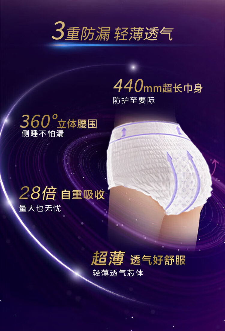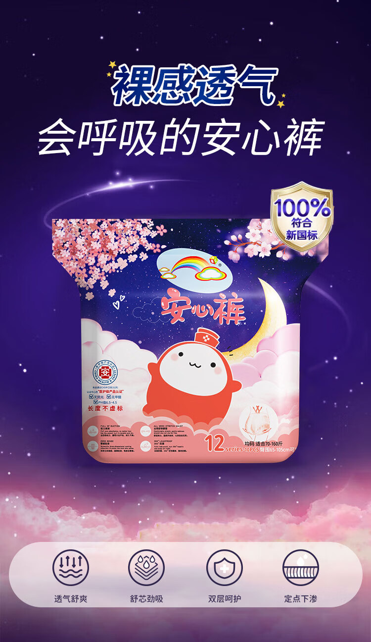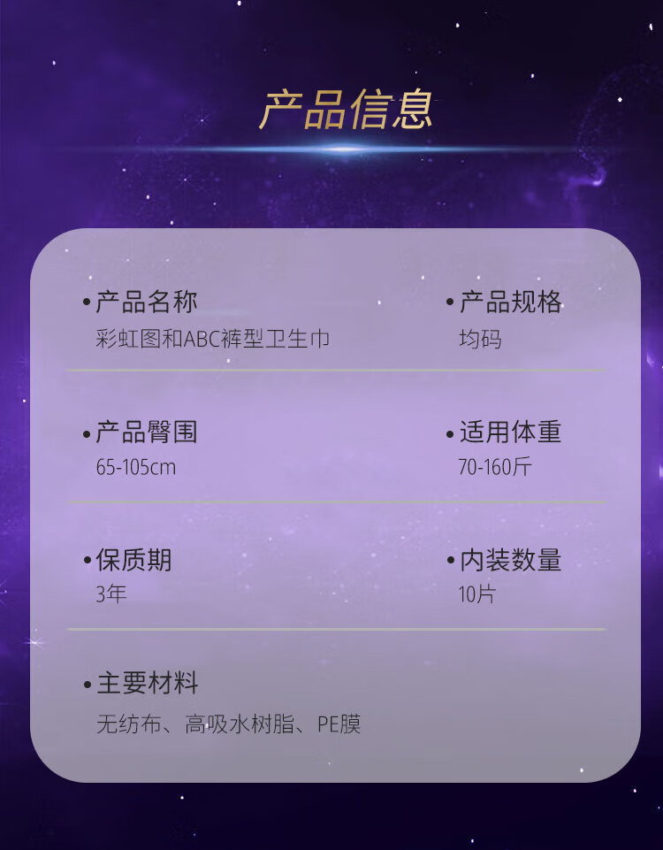 ABC彩虹图裤型卫生巾医护级卫生巾4裤安心裤安睡裤弹性裤 安睡裤10条70-160斤【均码】