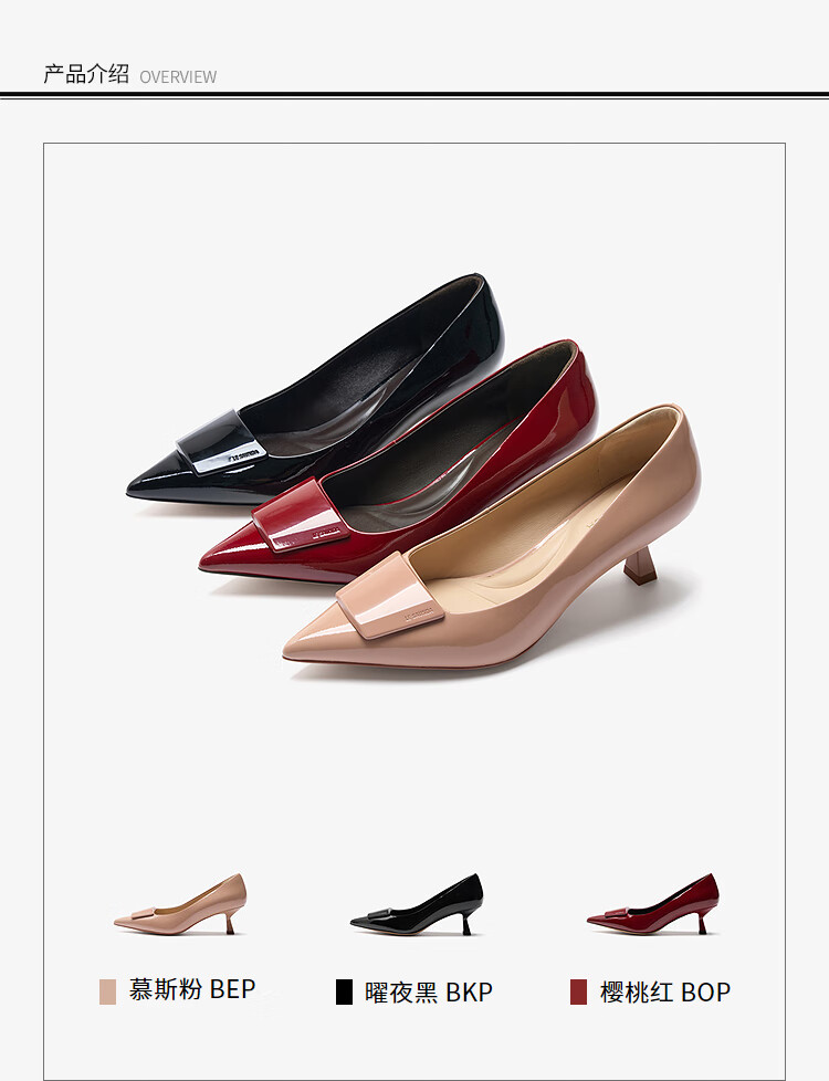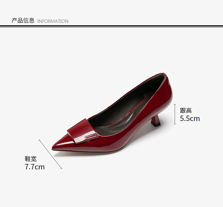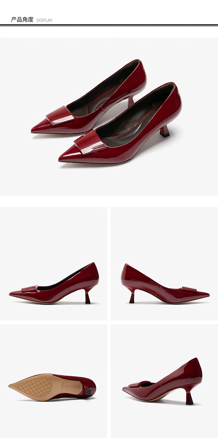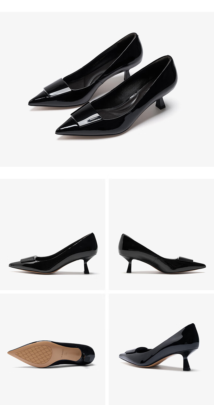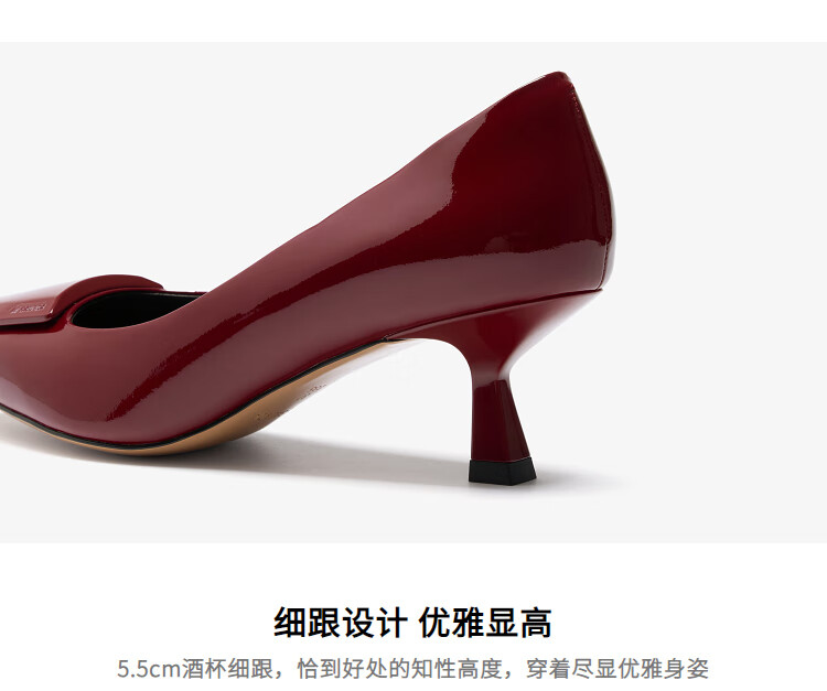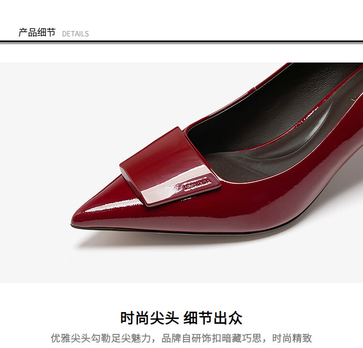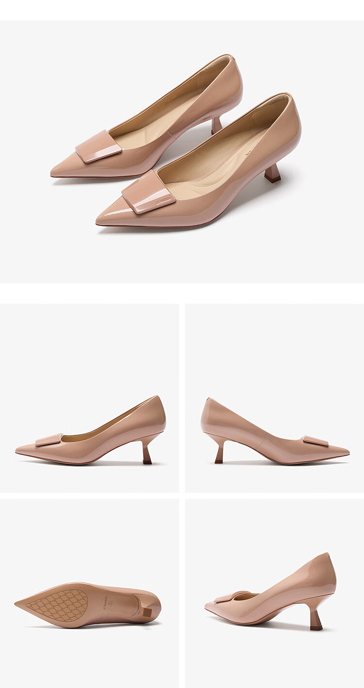 莱尔斯丹张雨绮同款尖头通勤单鞋2025秋季新款中跟漆皮高跟鞋婚鞋女61511 慕斯粉 BEP 38