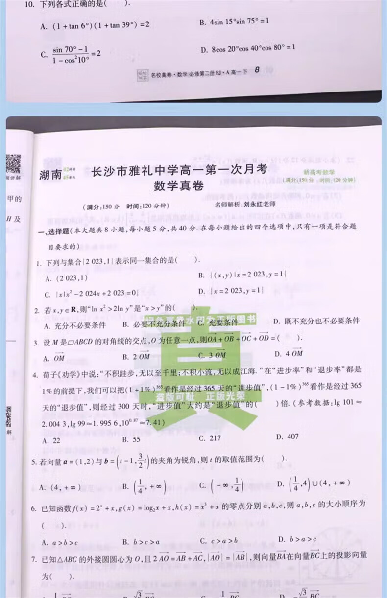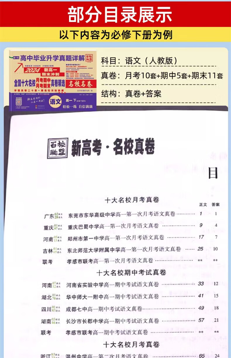 24版新高一全国十大名校名卷月考期中期末真卷 【数学】 高一上