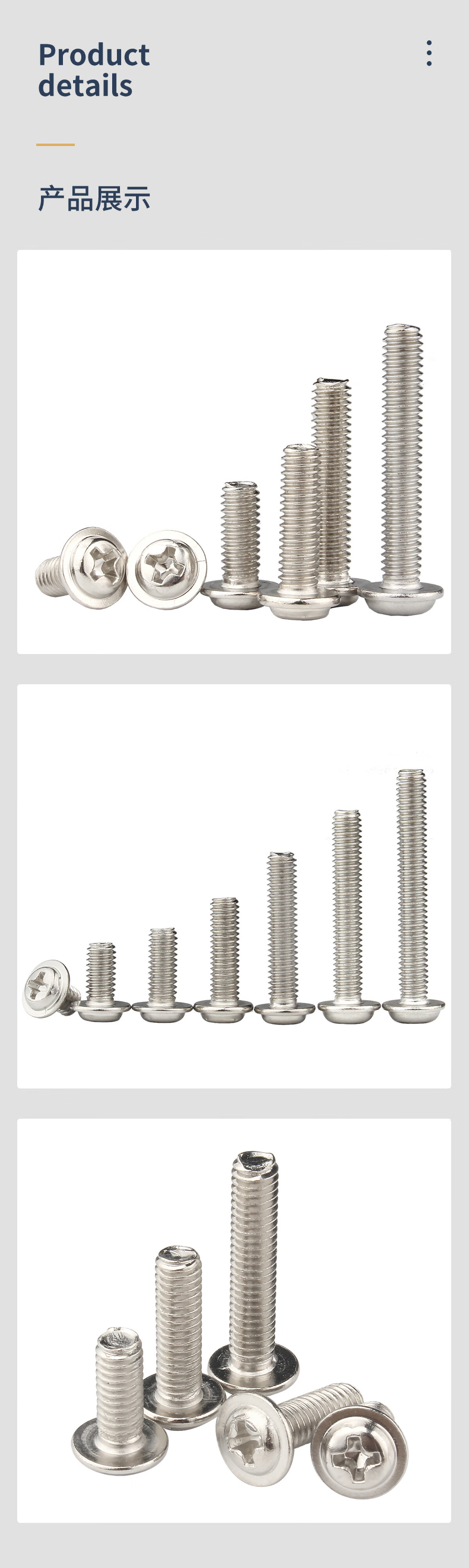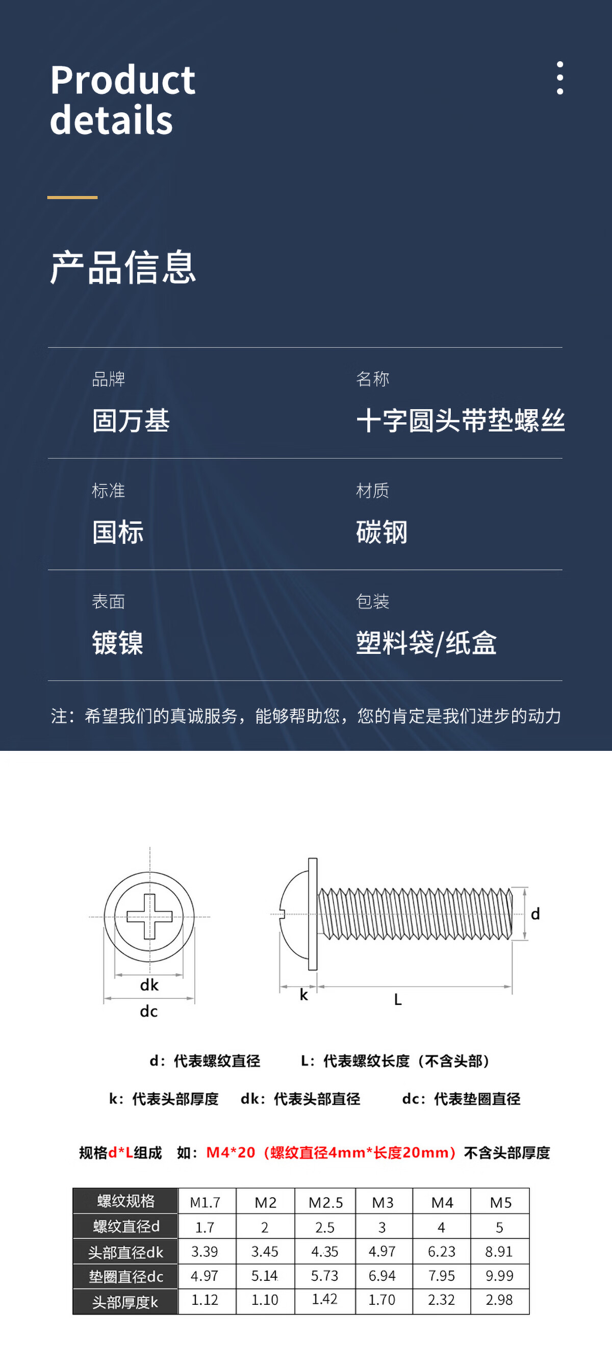 固万基铁镀镍十字圆头带垫螺丝钉PWM发黑带介子螺栓机丝盘头螺钉 M1.4x4x4[1000个]