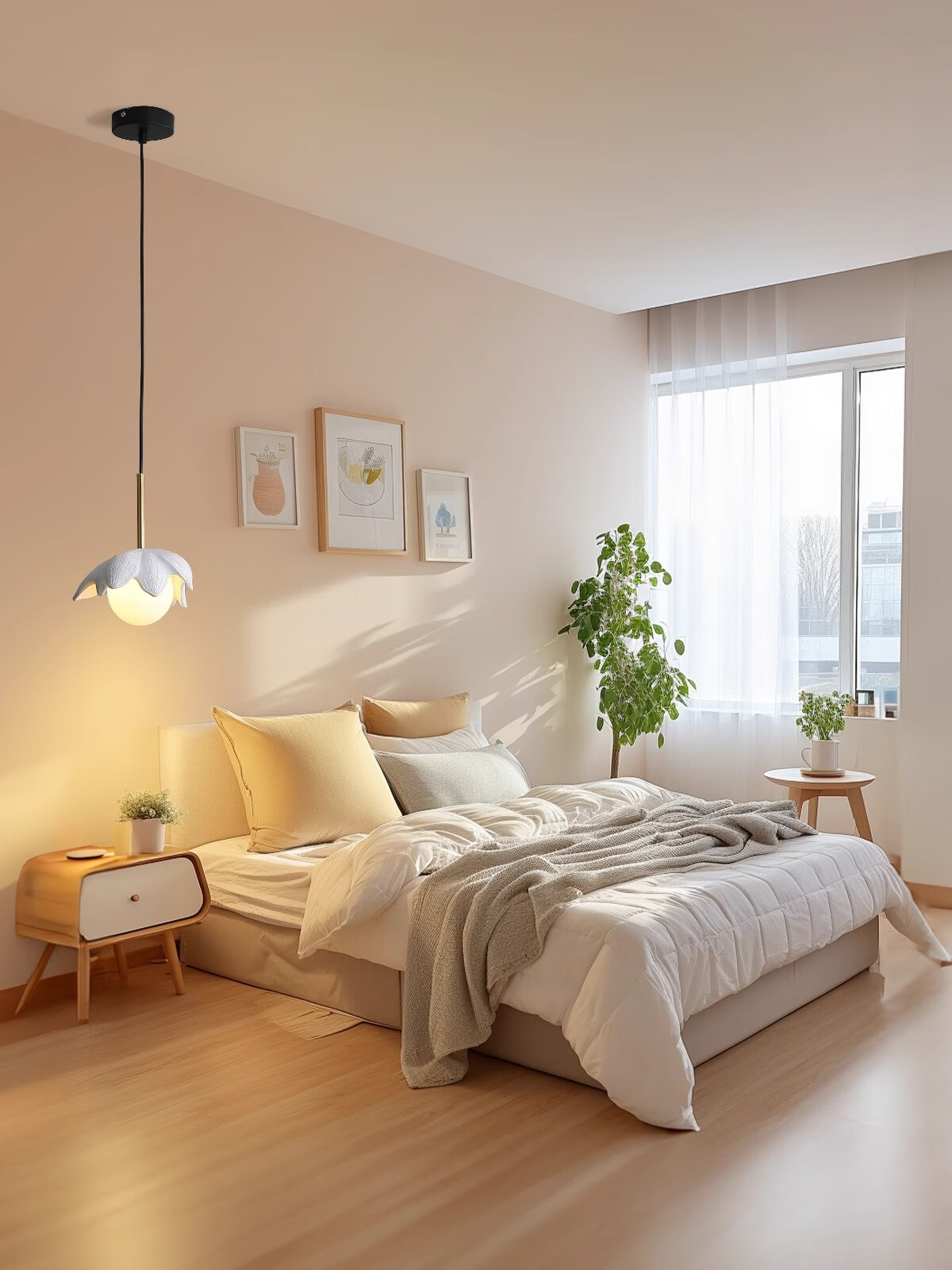 鹿家良品(LUUGAA)莲花床头小吊灯新款餐厅卧室高级现代简约侘寂风床边艺术灯具 【荐|特惠款】单头三色光5W银灰