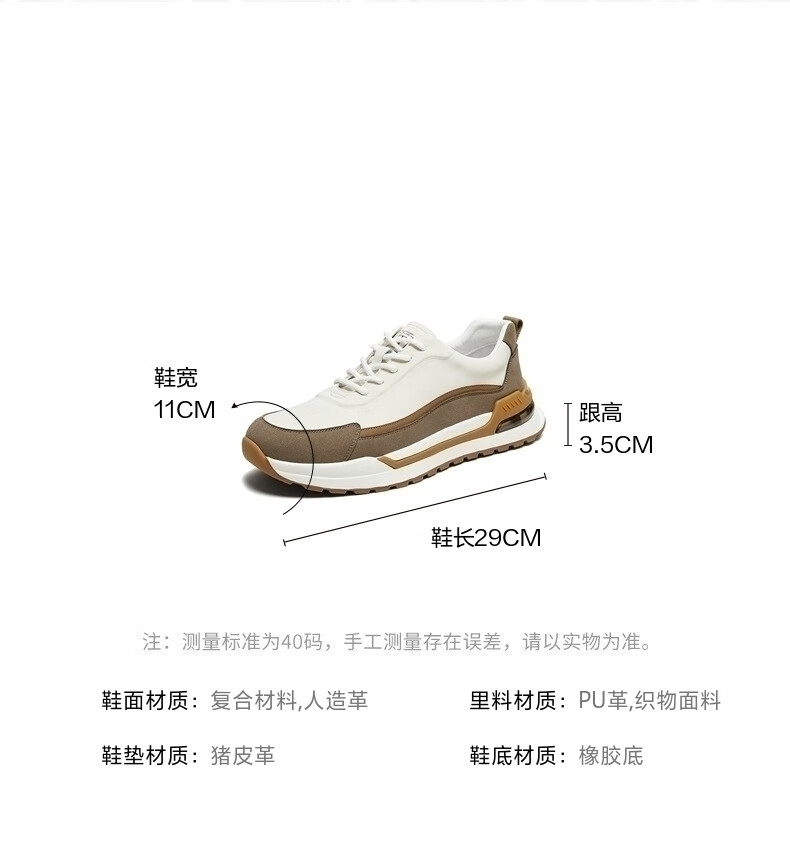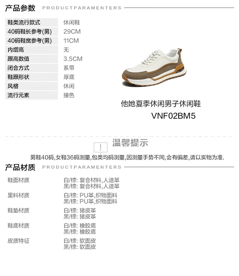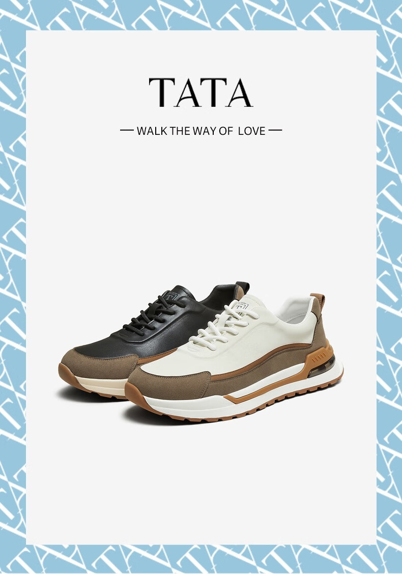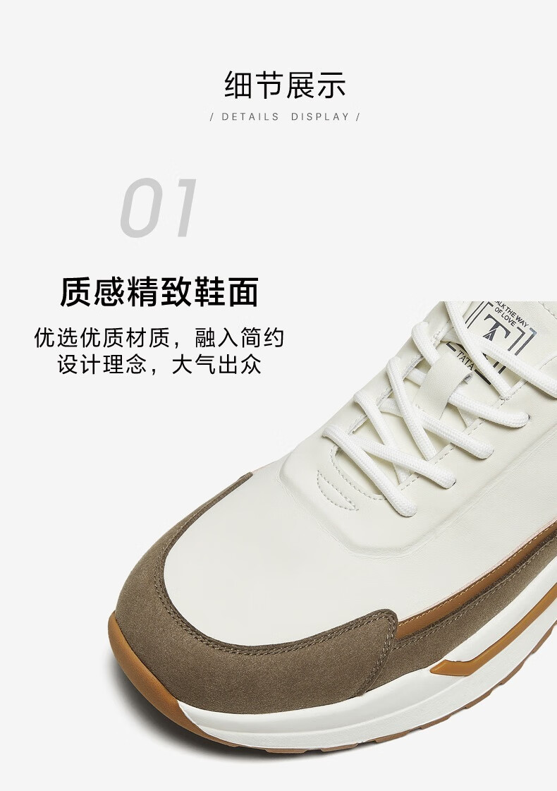 他她(TATA)2025秋舒适百搭休闲男鞋新款VNF02BM5 白/棕VNF02 38