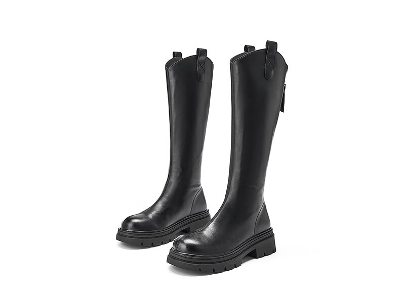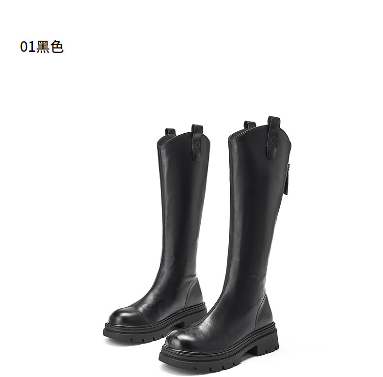 热风厚底长筒靴女2025年冬季新款黑色增高骑士靴休闲时装靴子女鞋 01黑色 38