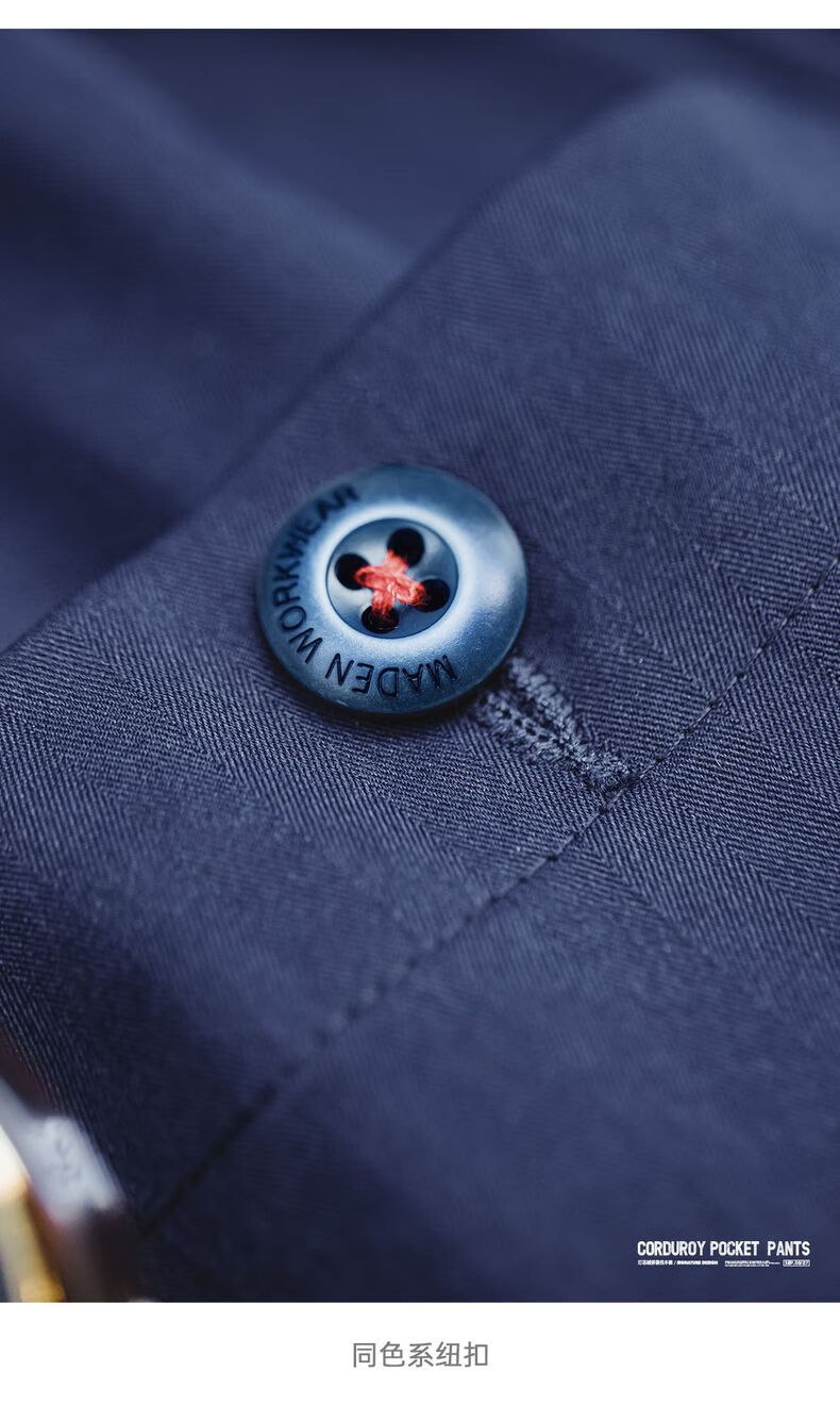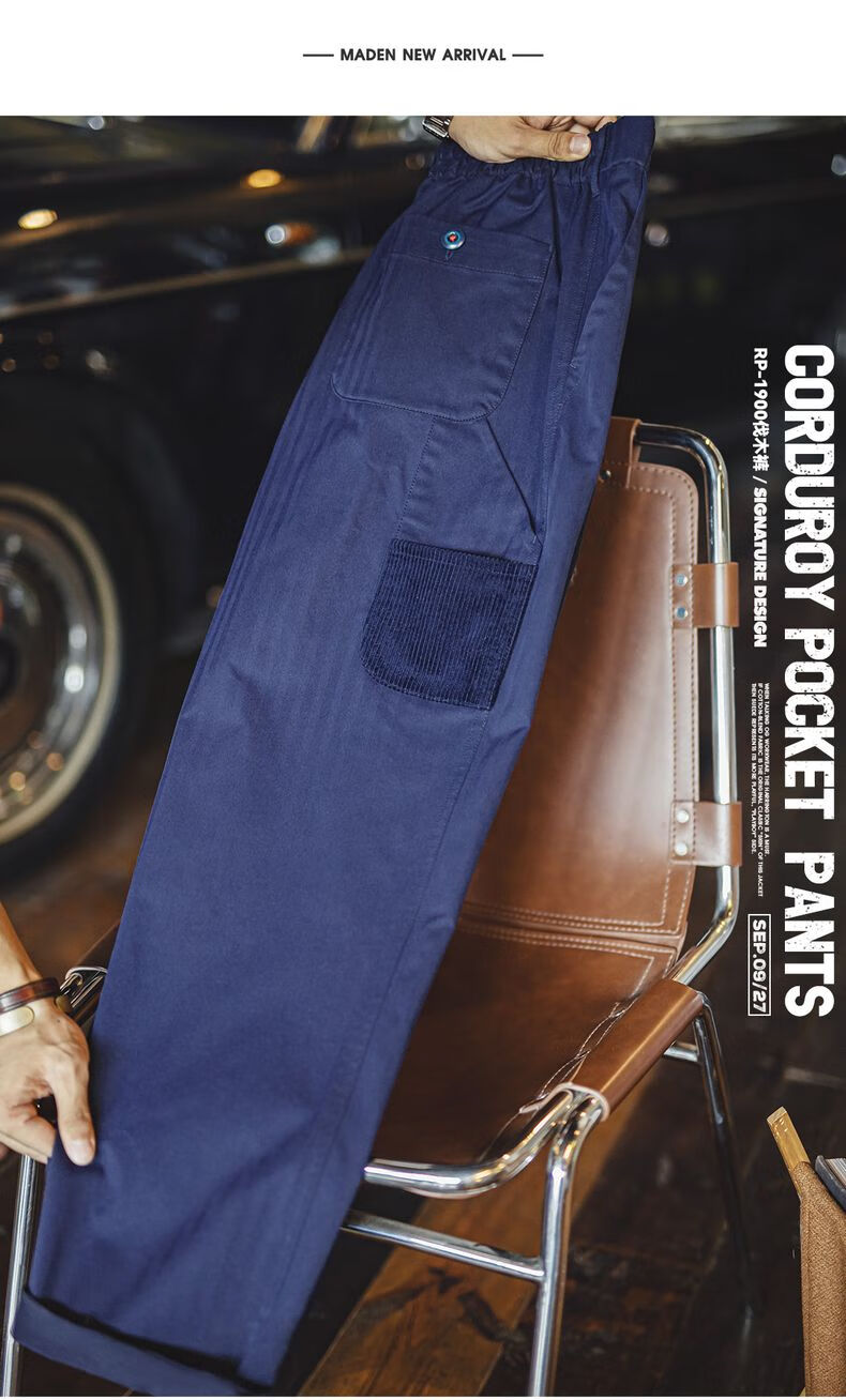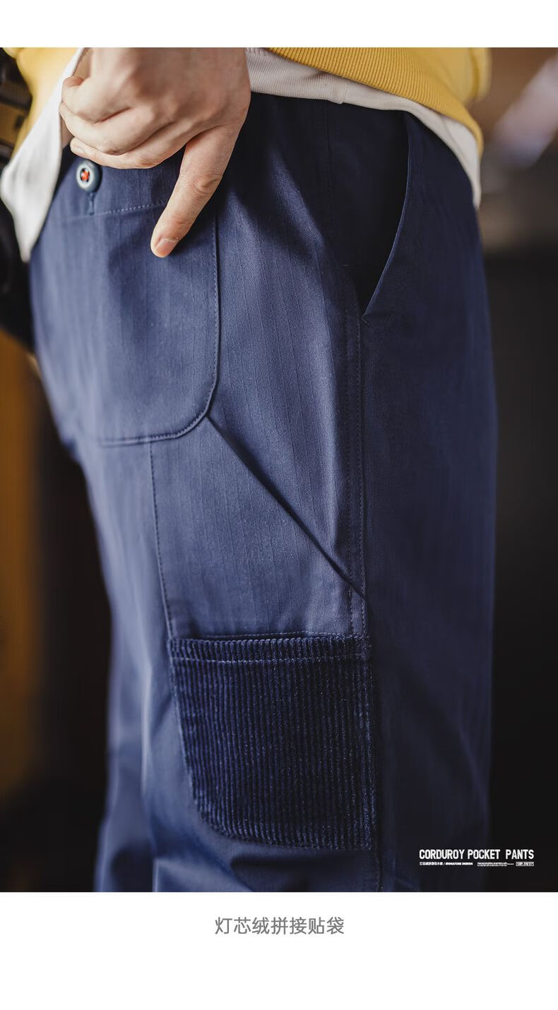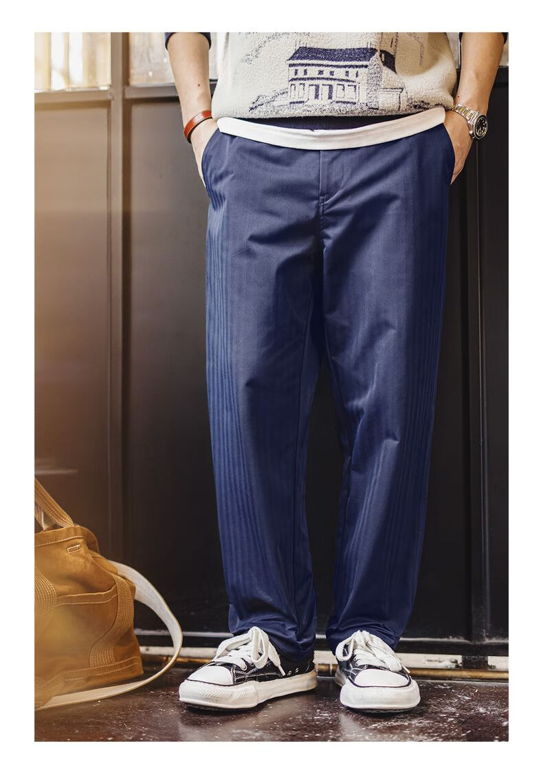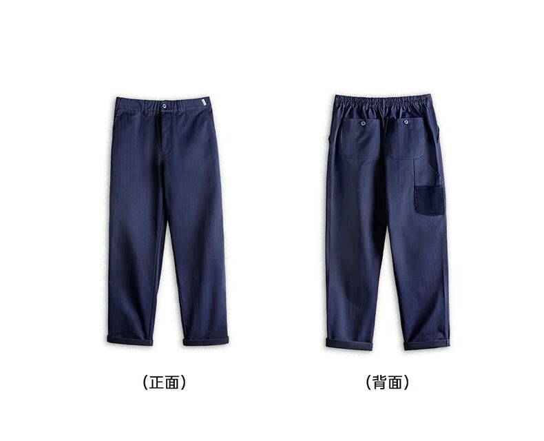 马登工装美式复古蓝色伐木裤直筒微锥松紧腰人字纹休闲长裤子男秋 藏青色 L