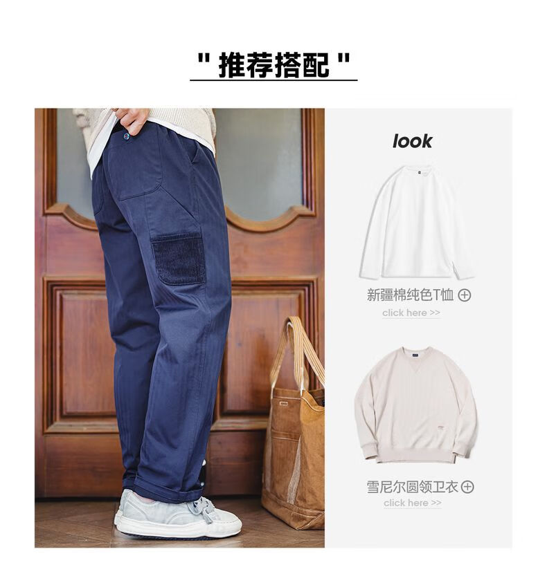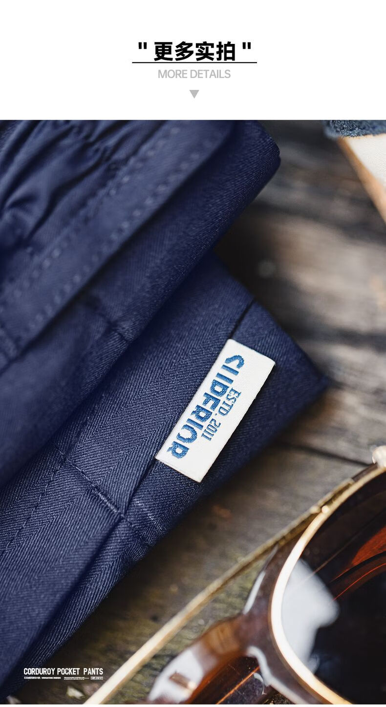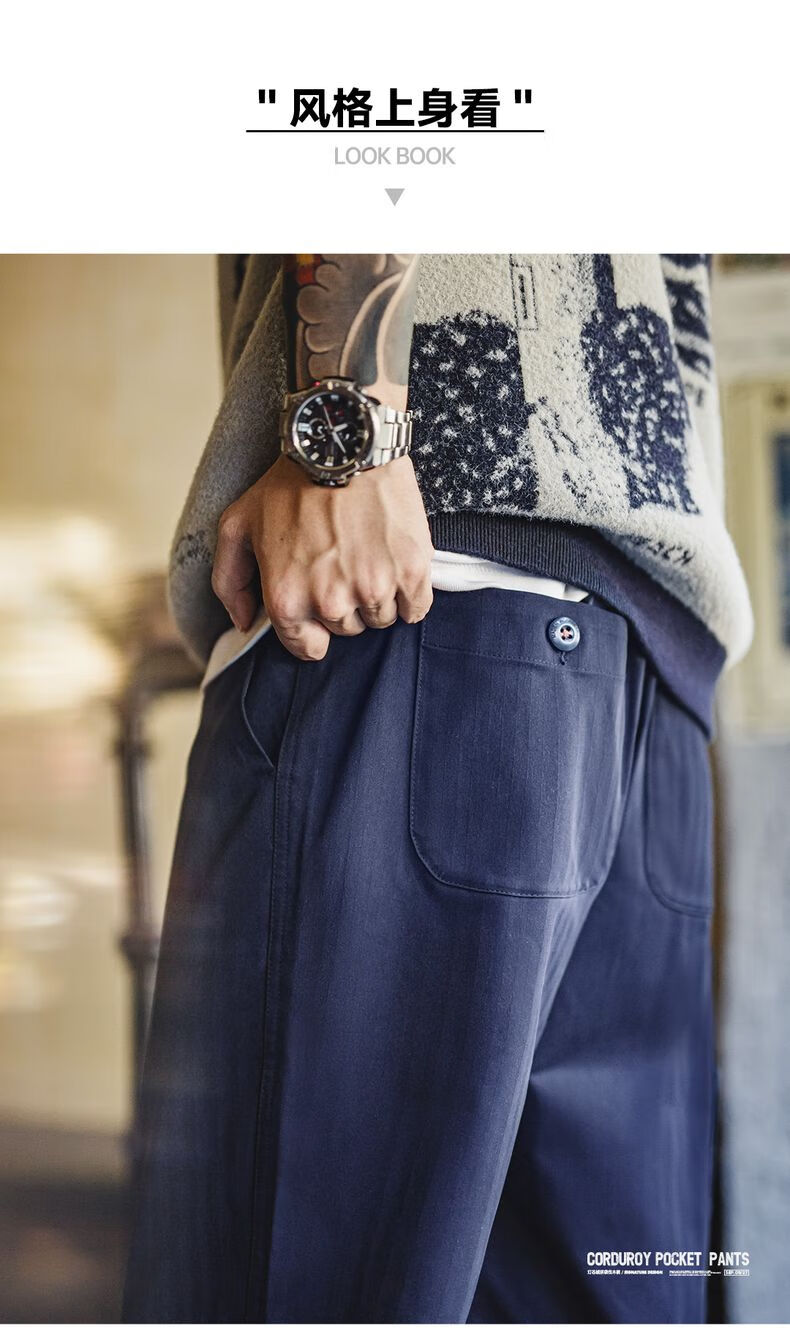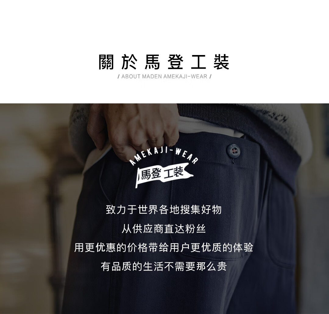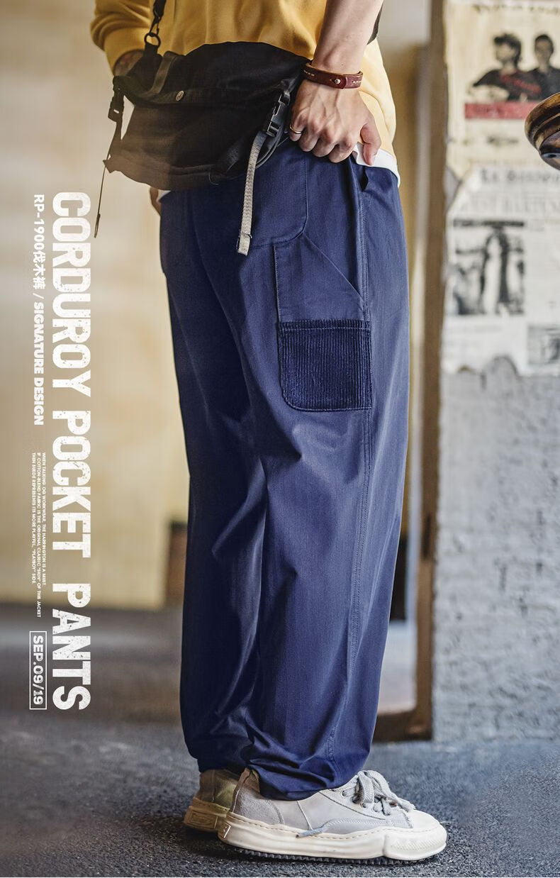 马登工装美式复古蓝色伐木裤直筒微锥松紧腰人字纹休闲长裤子男秋 藏青色 L