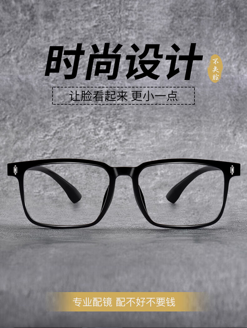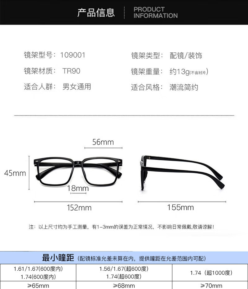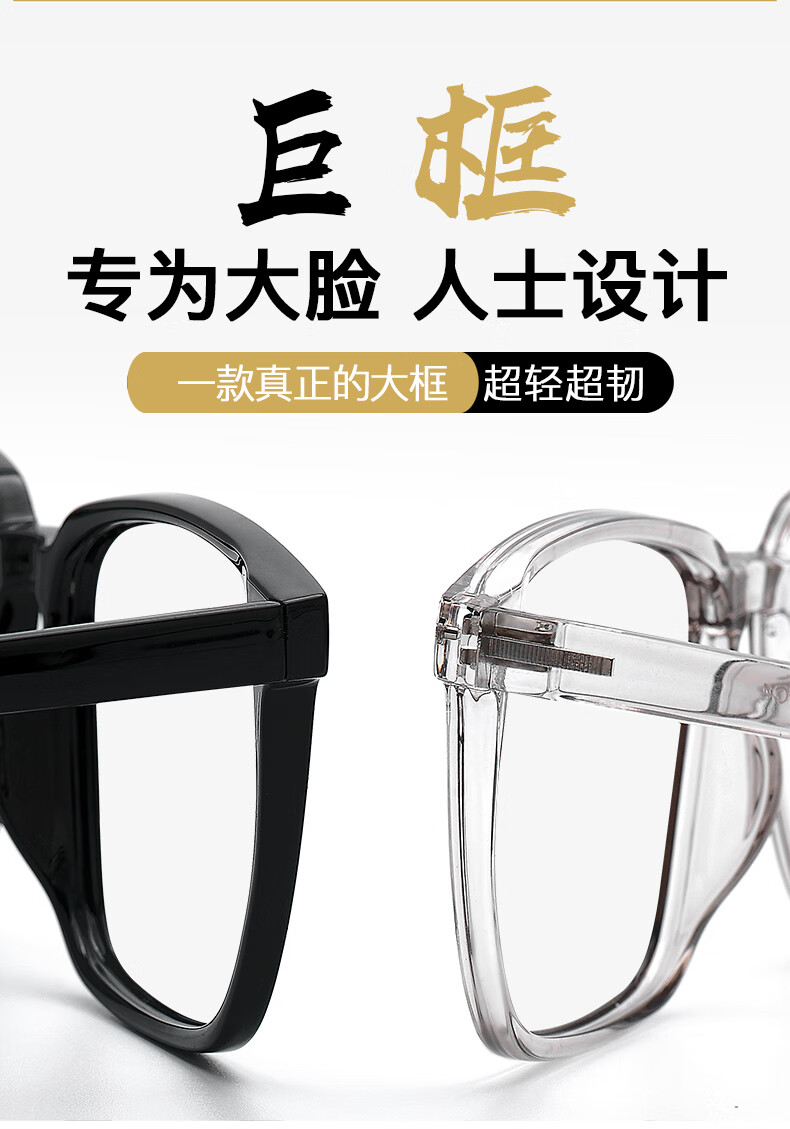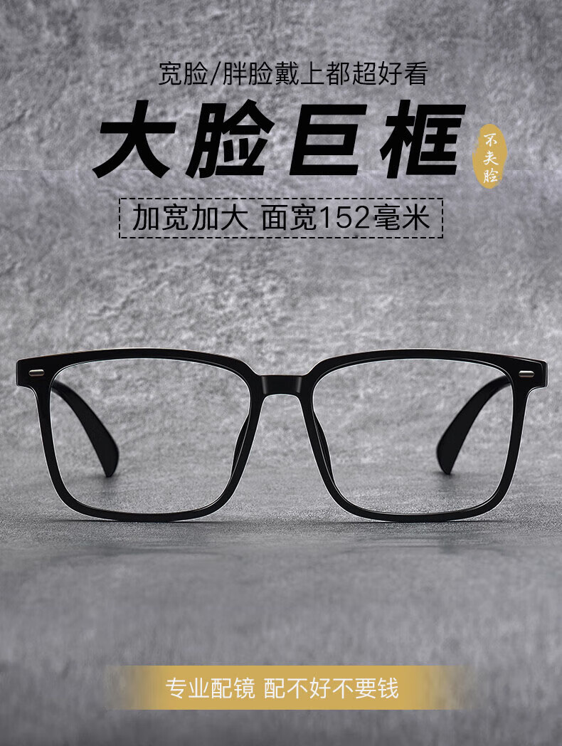 目匠超大框加宽加大特大号胖子大脸眼镜框架男士超轻可配近视镜 109001-亮黑 配镜1.74非球面镜片0-1000