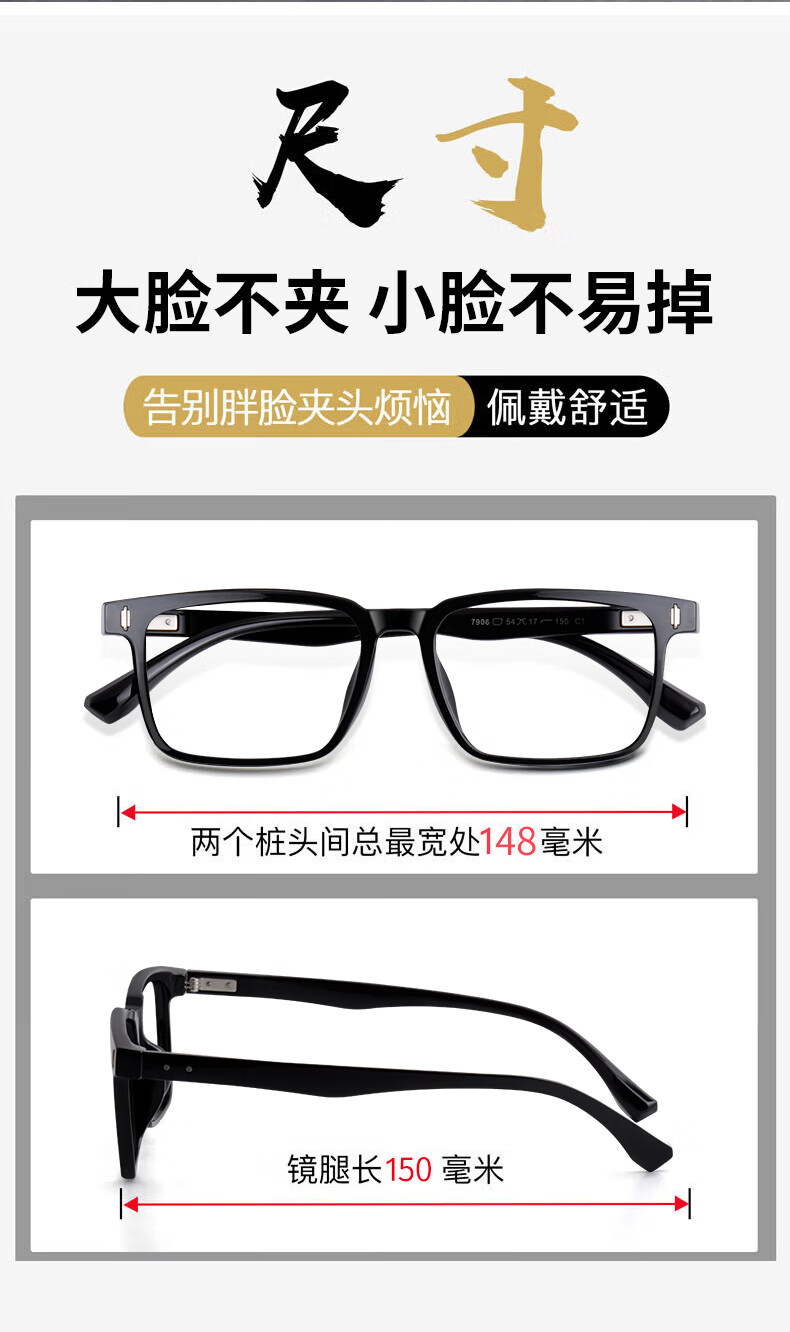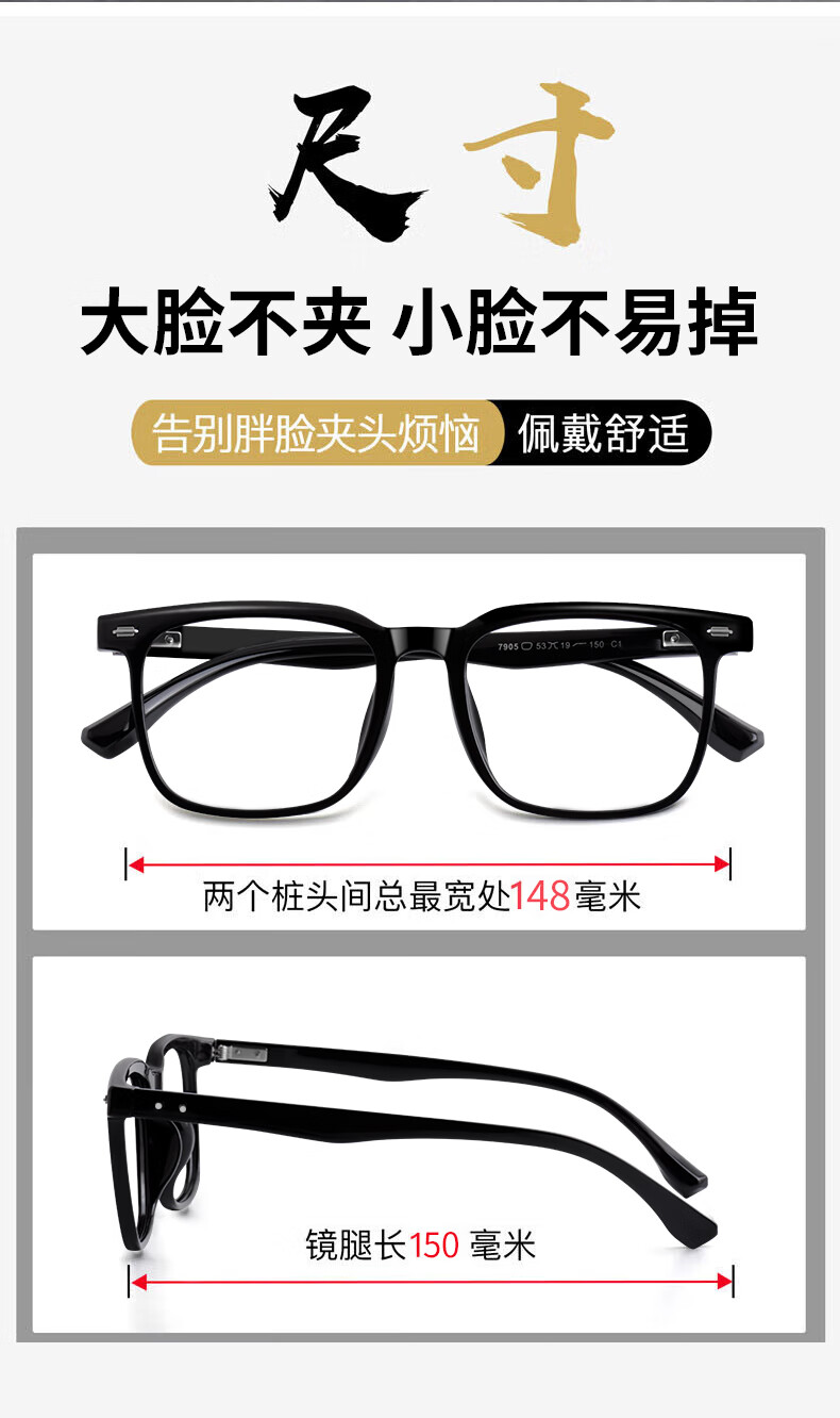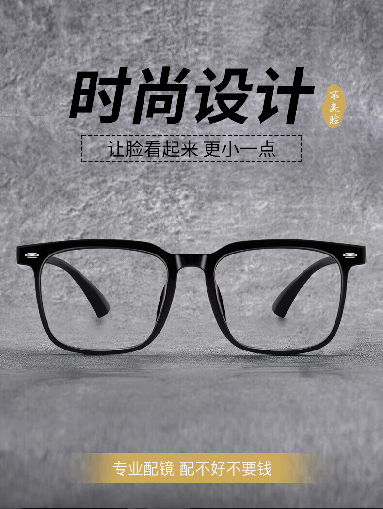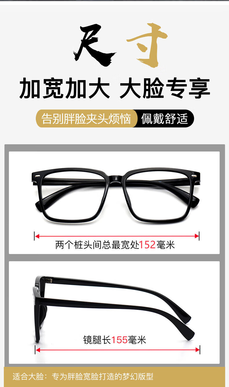 目匠超大框加宽加大特大号胖子大脸眼镜框架男士超轻可配近视镜 109001-亮黑 配镜1.74非球面镜片0-1000