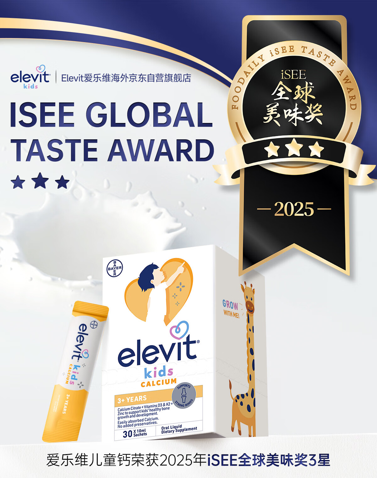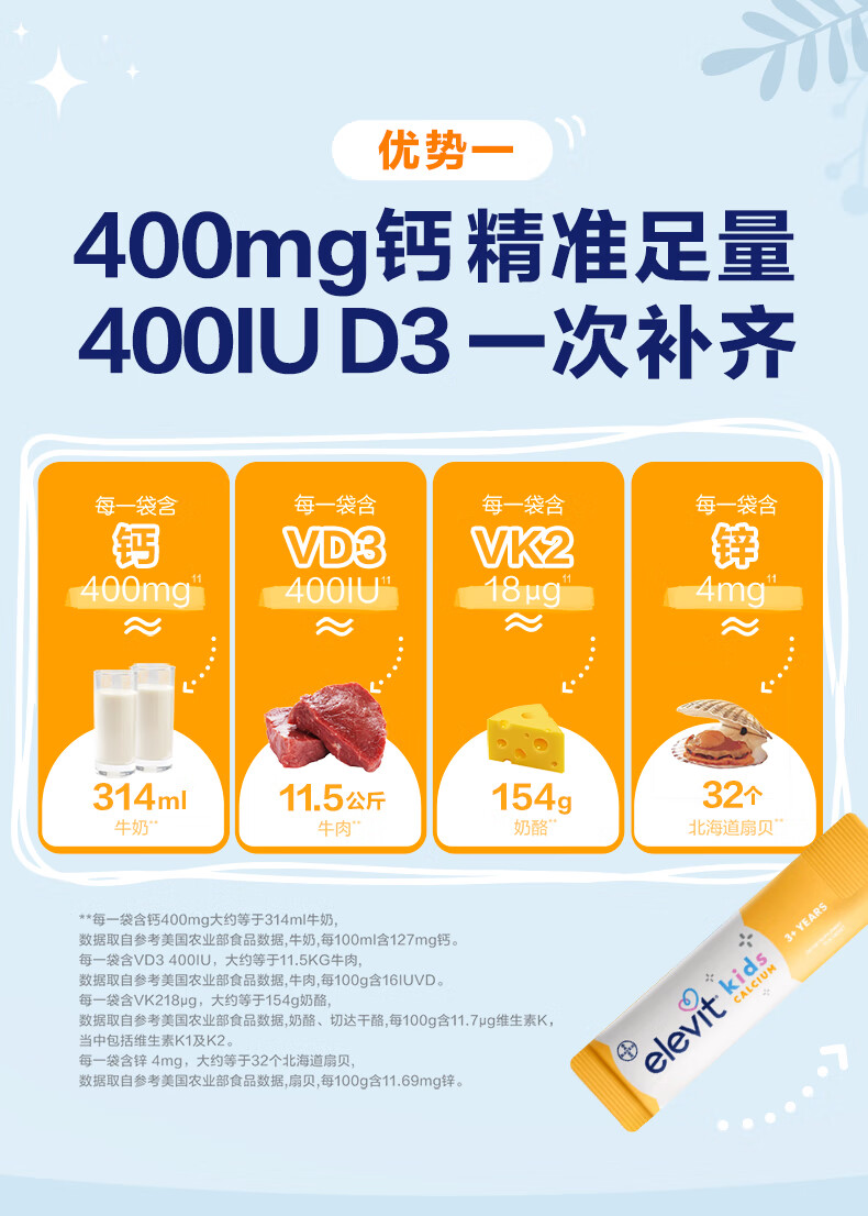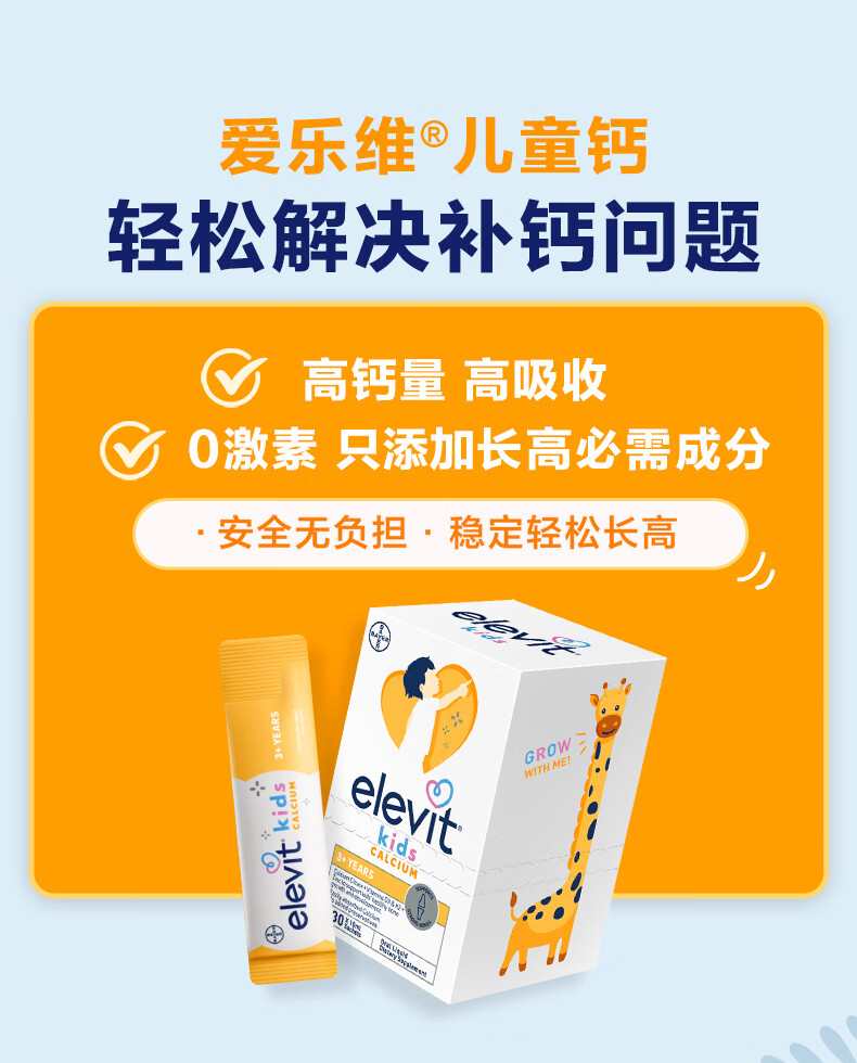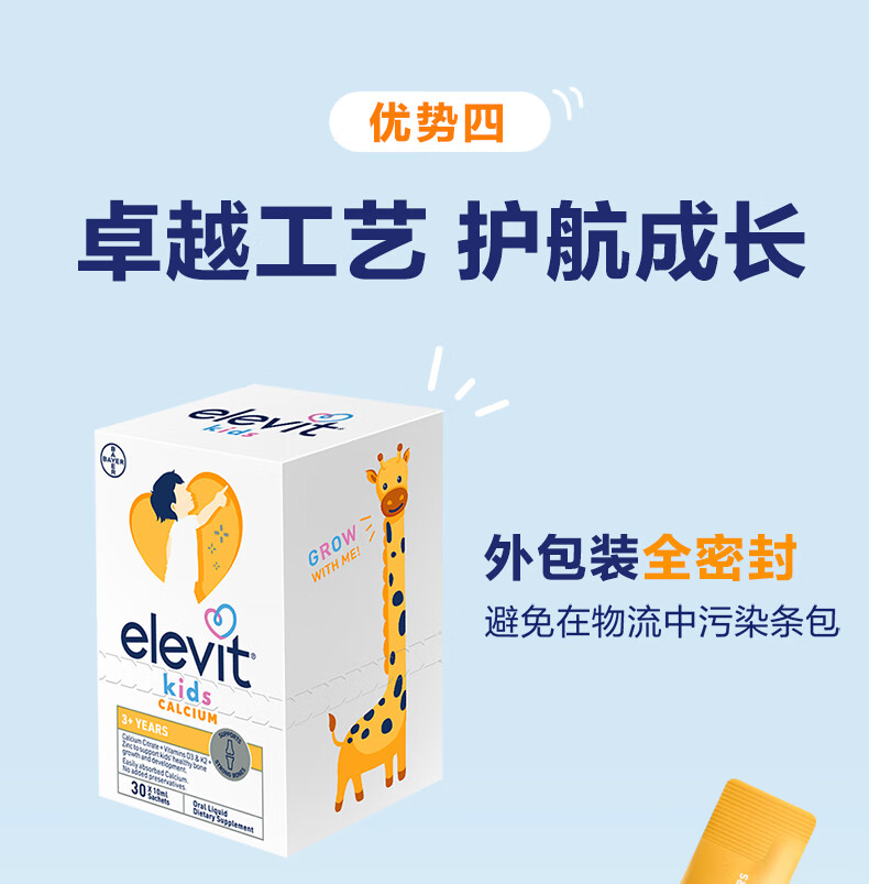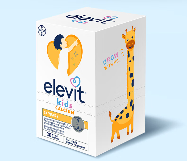 Elevit爱乐维液体钙柠檬酸钙维生素d3k2儿童钙10ml*2条非钙铁锌苹果味