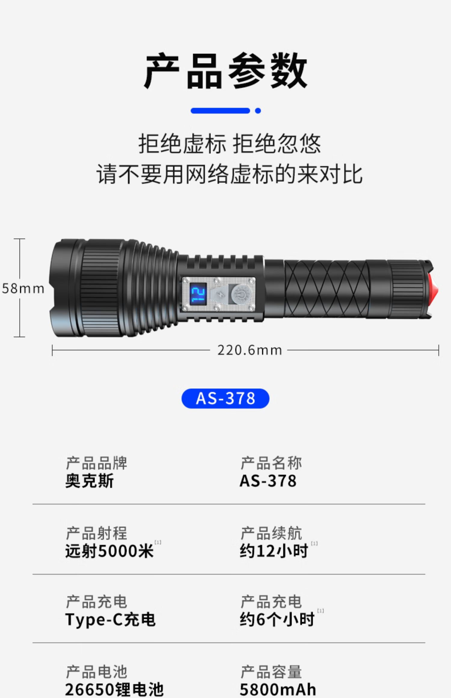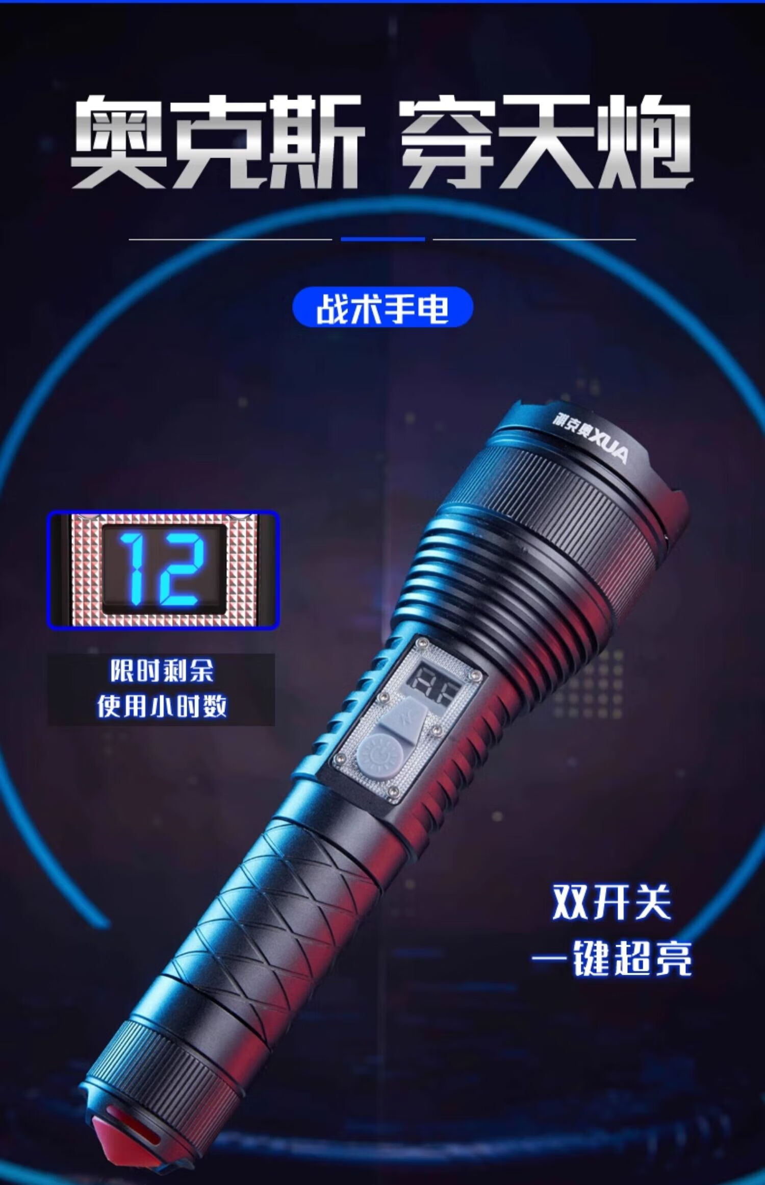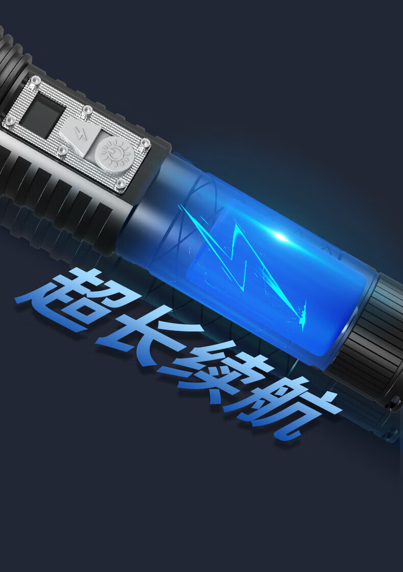 奥克斯(AUX)强光手电筒超长续航家用车载野外生存伸缩变焦铝合金机身带破窗锤 旗舰款+伸缩变焦+铝合金+4000毫安